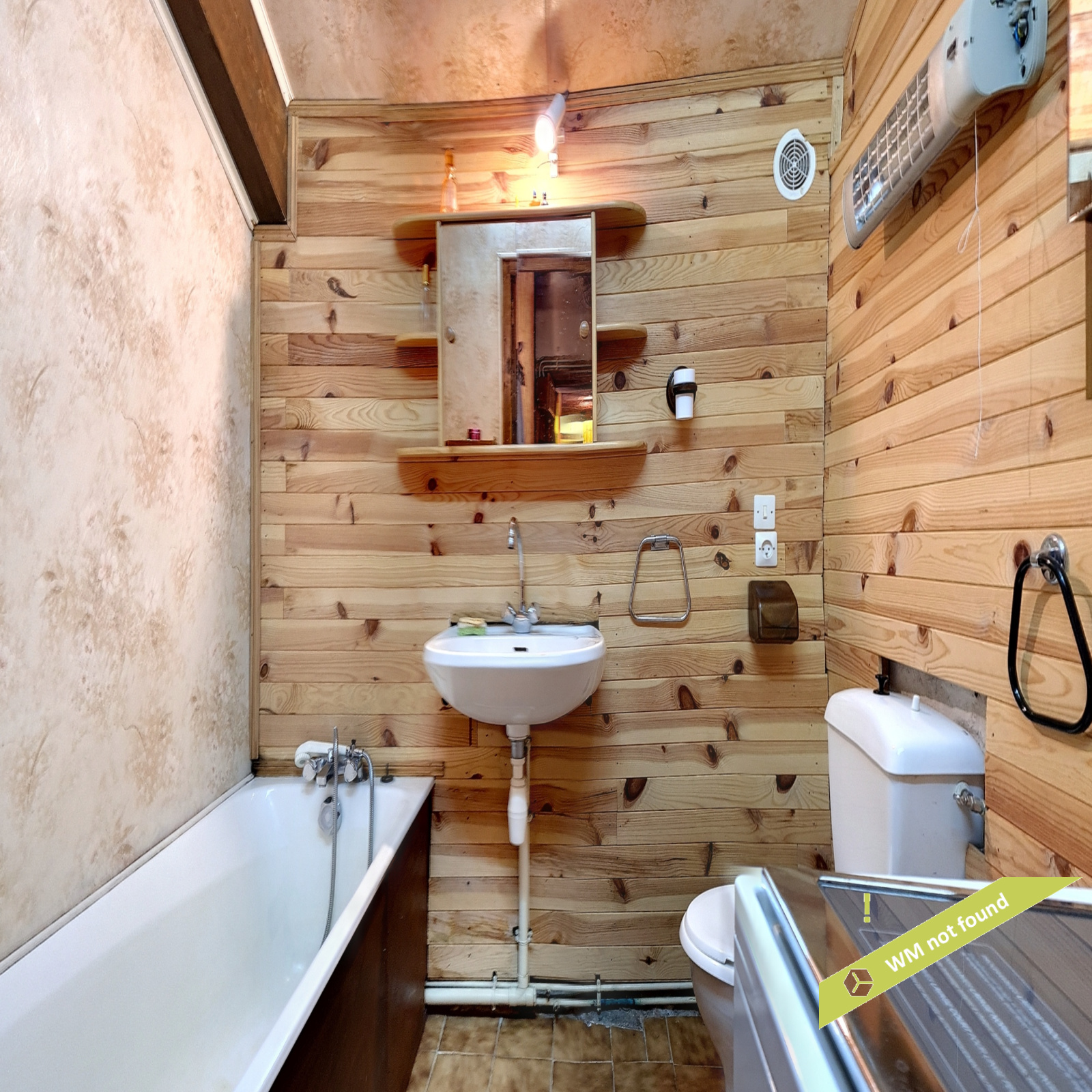 En rez-de-chaussée, on trouve une pièce principale de 34,26 m2, une salle de bains avec wc et, dans l'aile, une pièce à usage de cave.