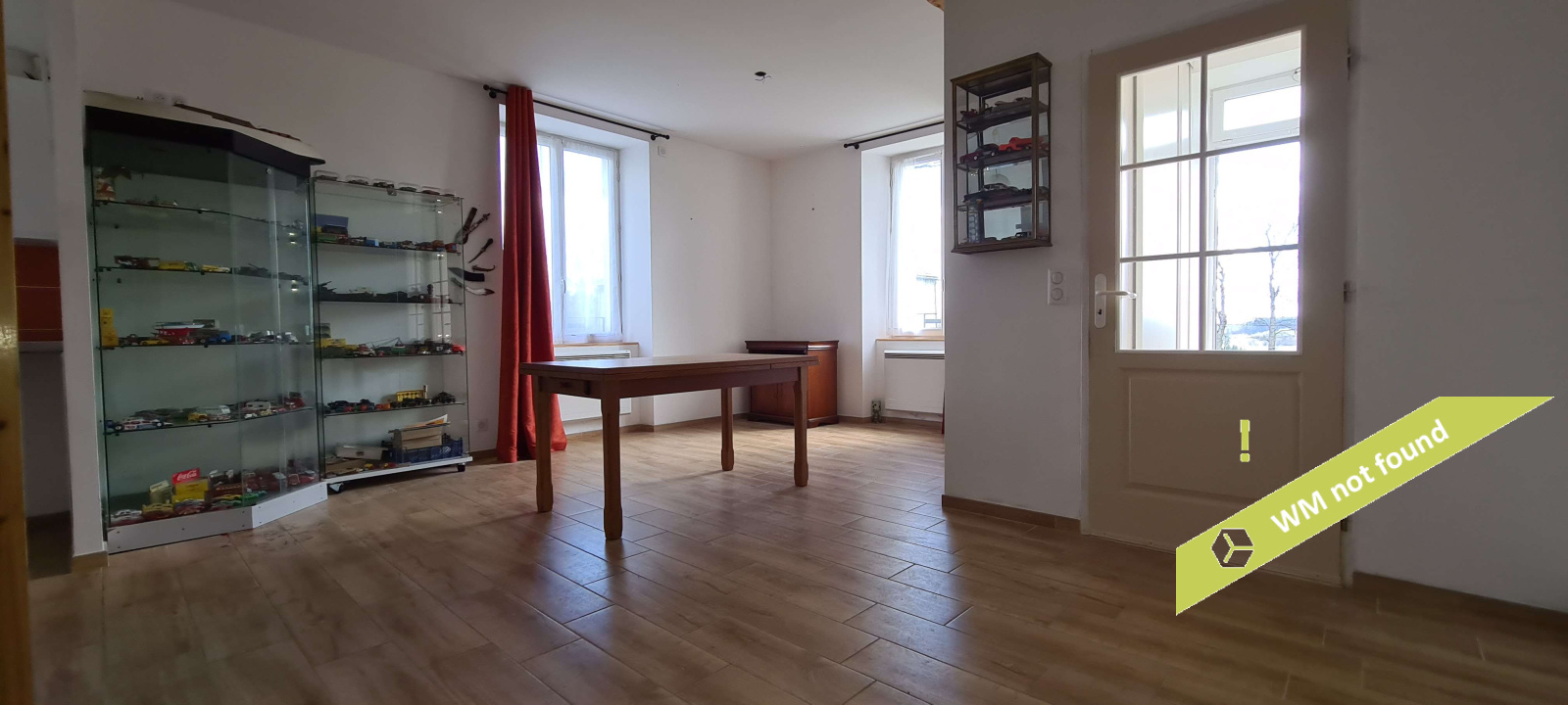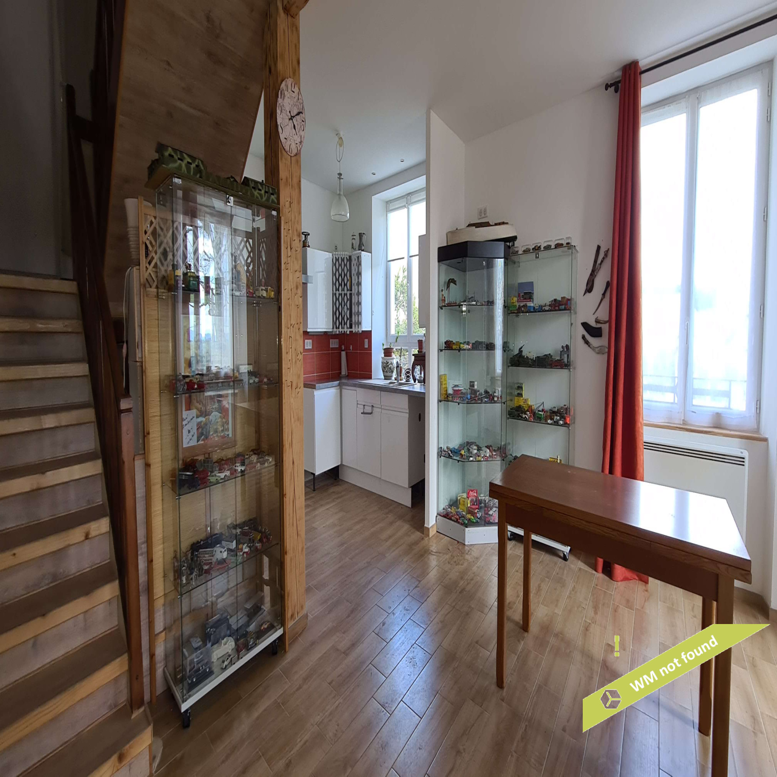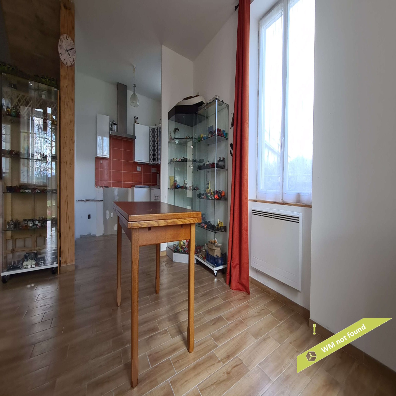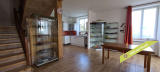- en rez-de-chaussée, on entre dans un hall d'entrée avec placard desservant la pièce principale (espace cuisine ouvert sur la salle-à-manger). A côté, une pièce à usage actuellement de garage/remise pourrait être aménagée en salon.