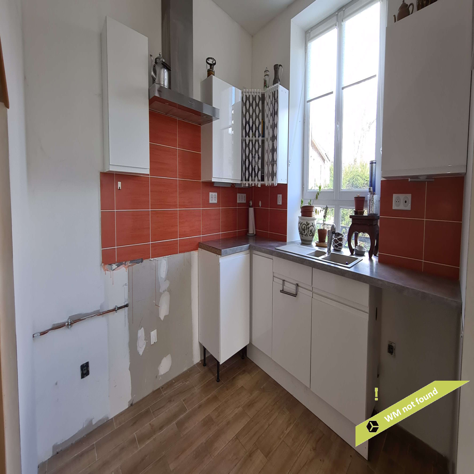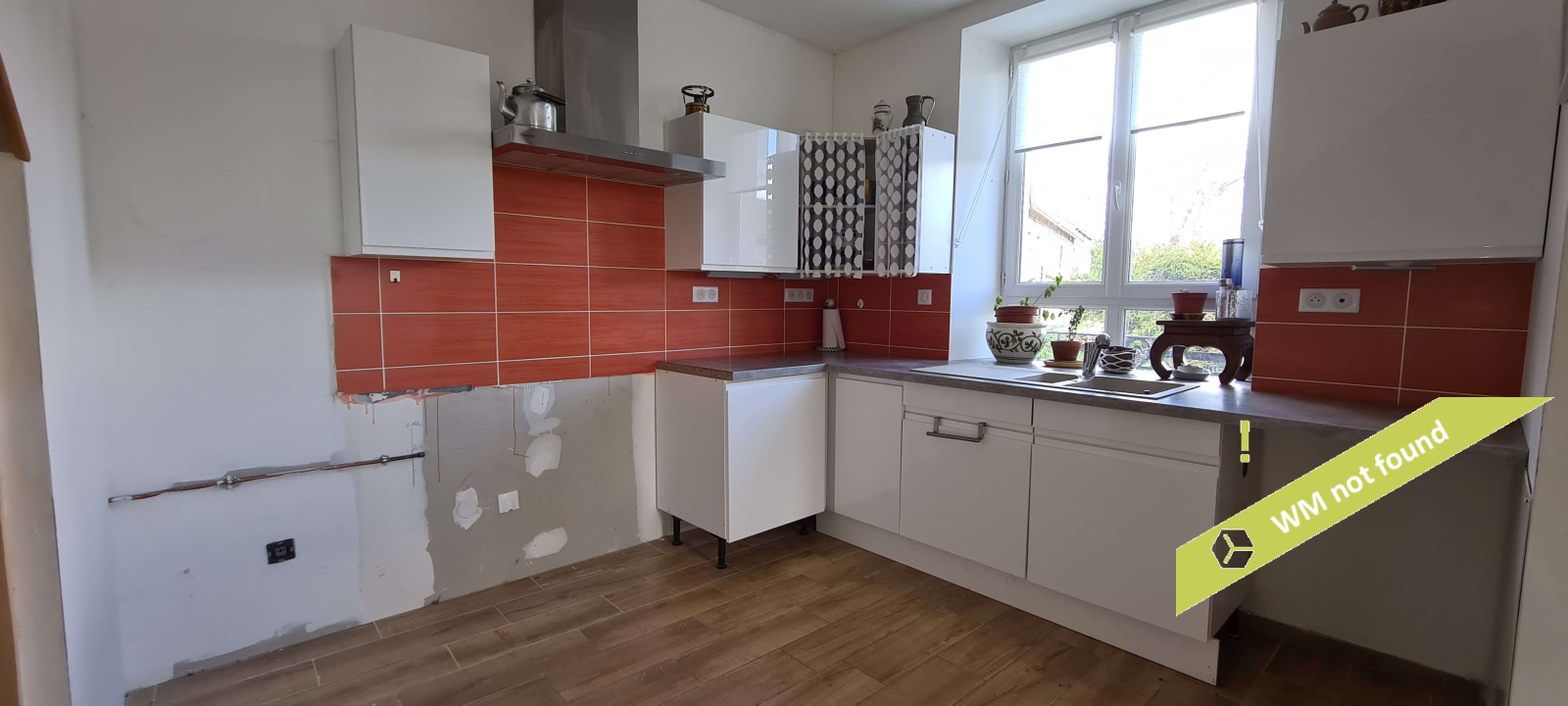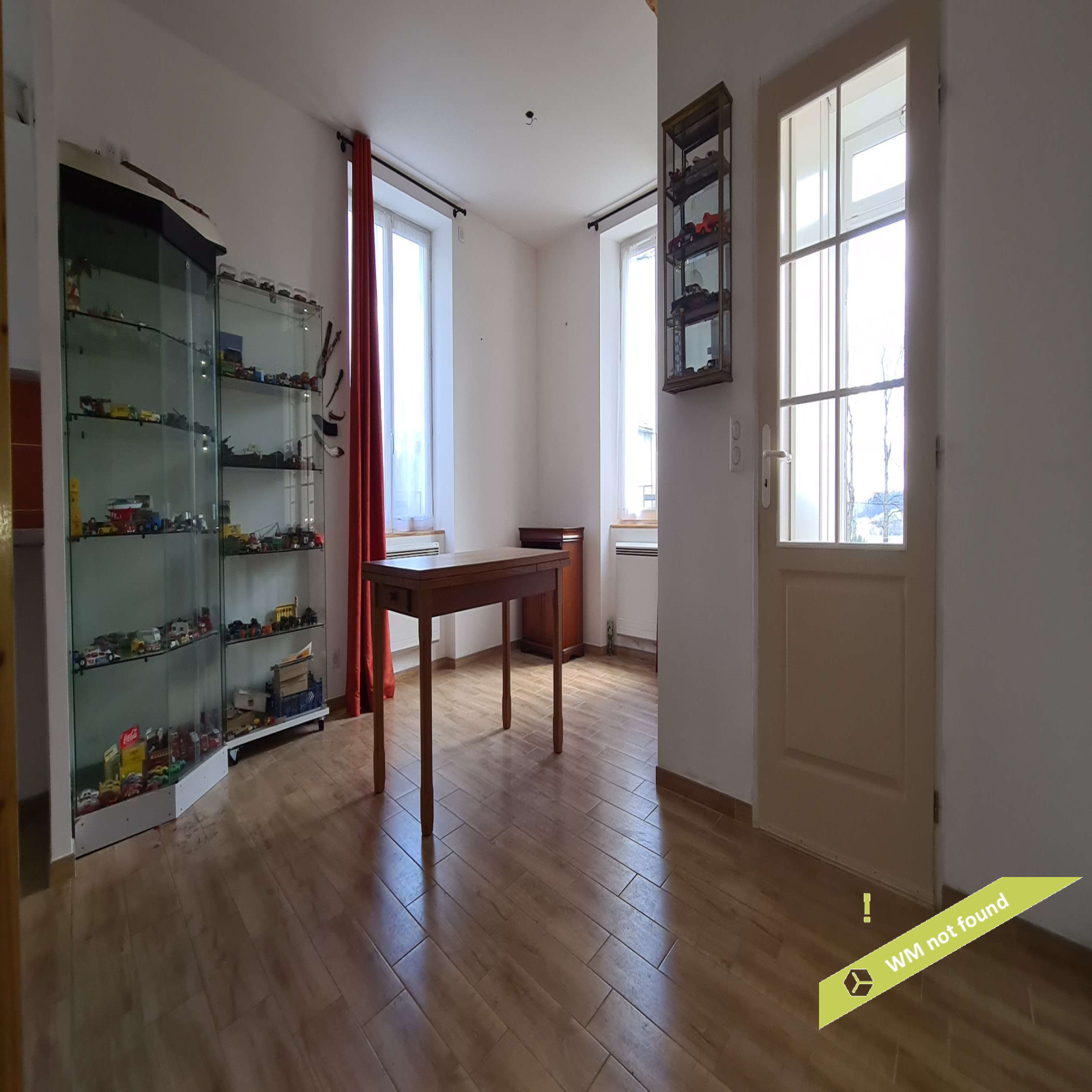 - en rez-de-chaussée, on entre dans un hall d'entrée avec placard desservant la pièce principale (espace cuisine ouvert sur la salle-à-manger). A côté, une pièce à usage actuellement de garage/remise pourrait être aménagée en salon.