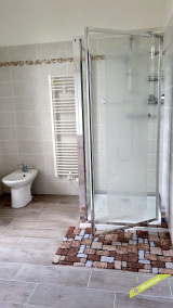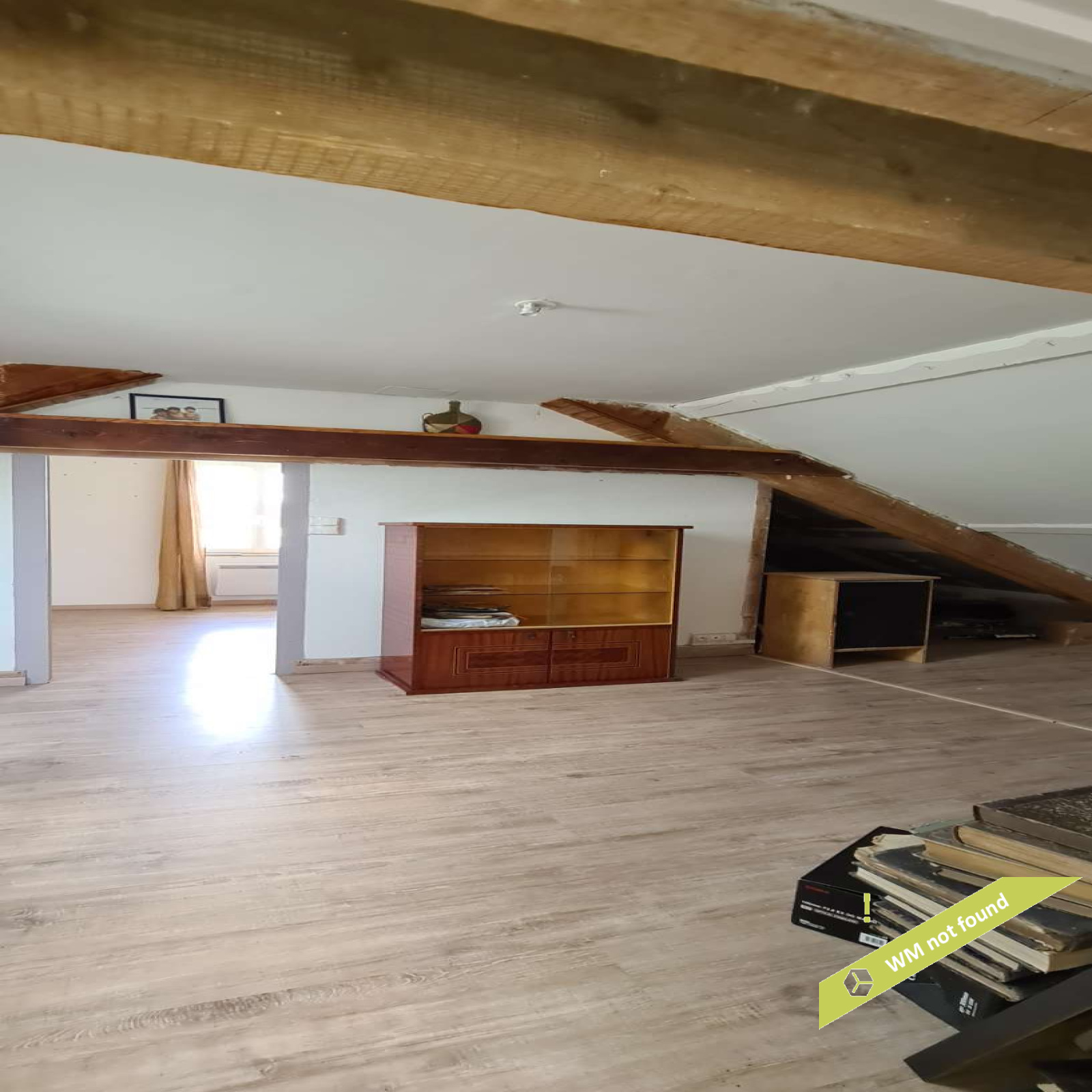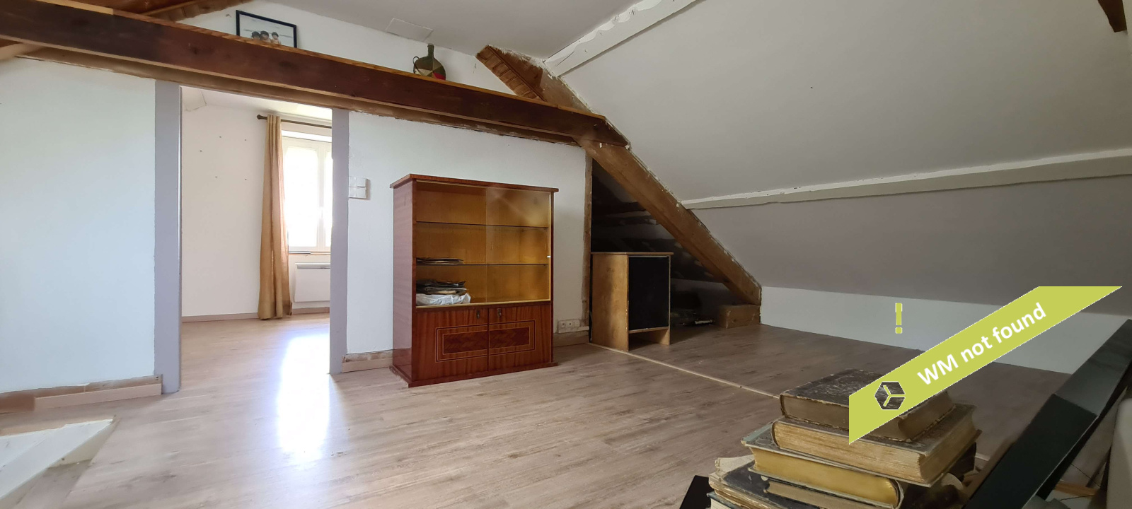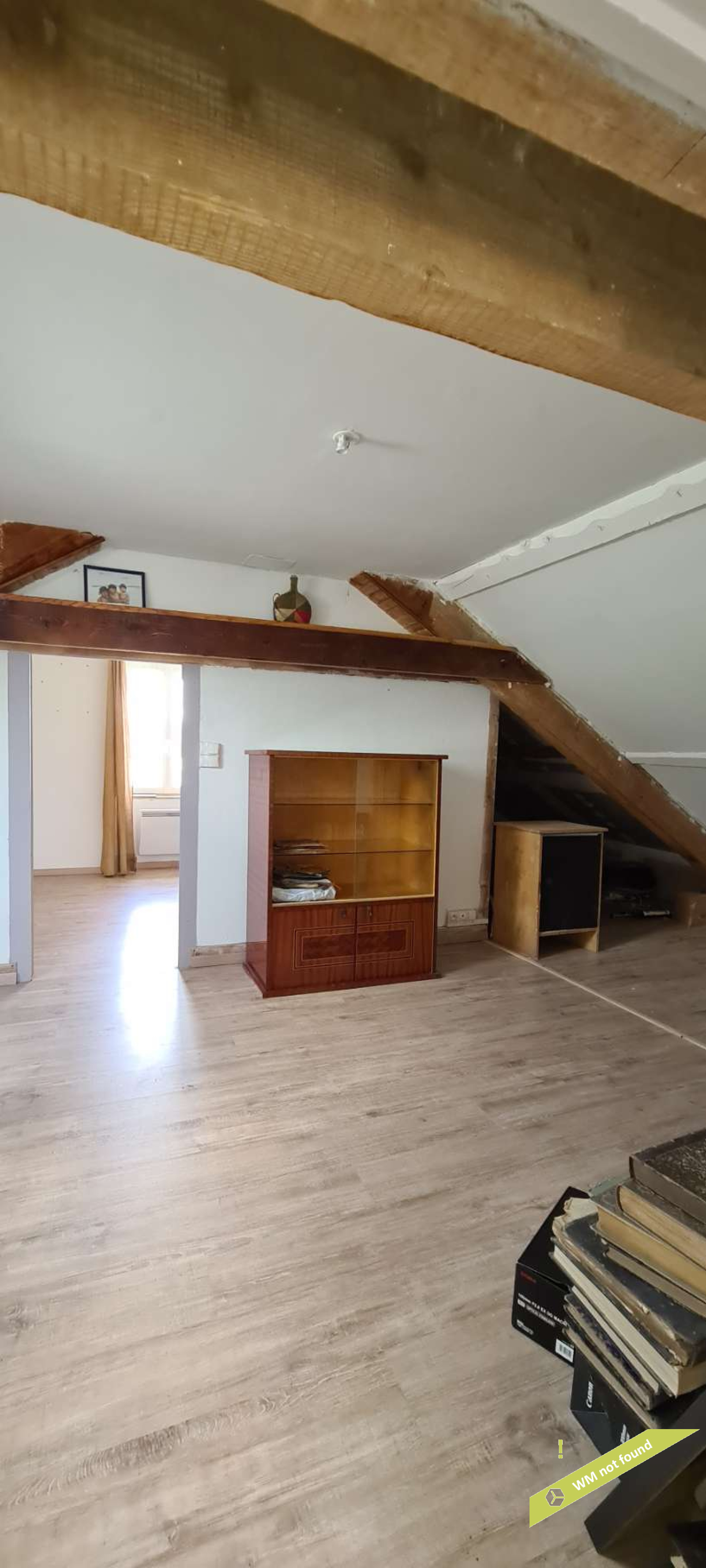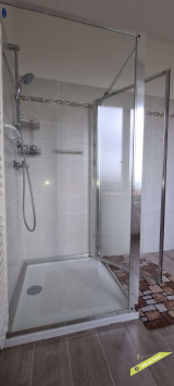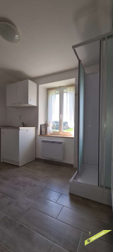 - espace sous combles aménagé en trois parties : une chambre, un espace ouvert avec wc et une pièce avec douche et point d'eau.