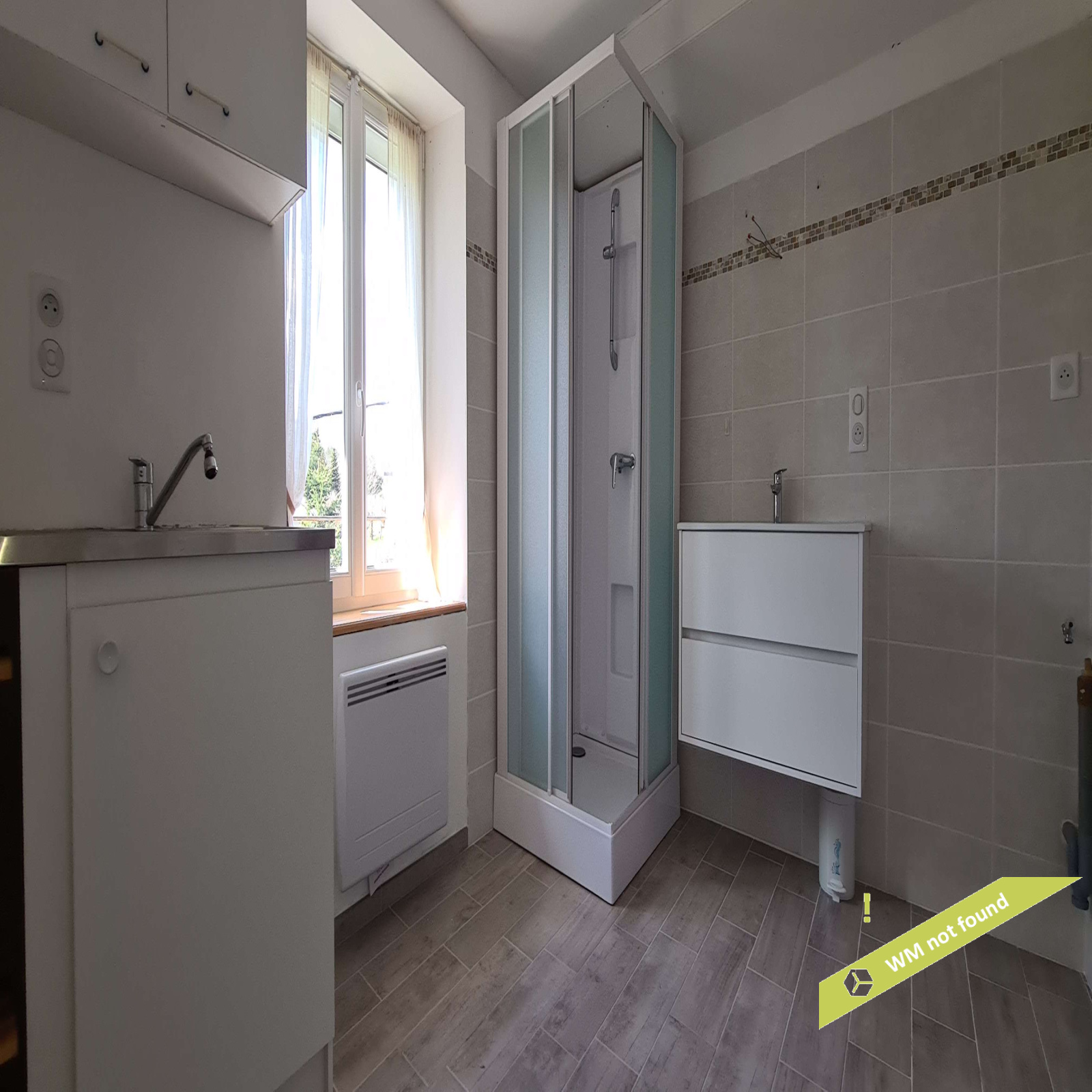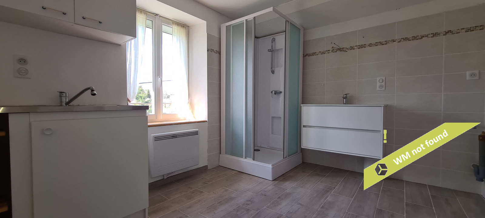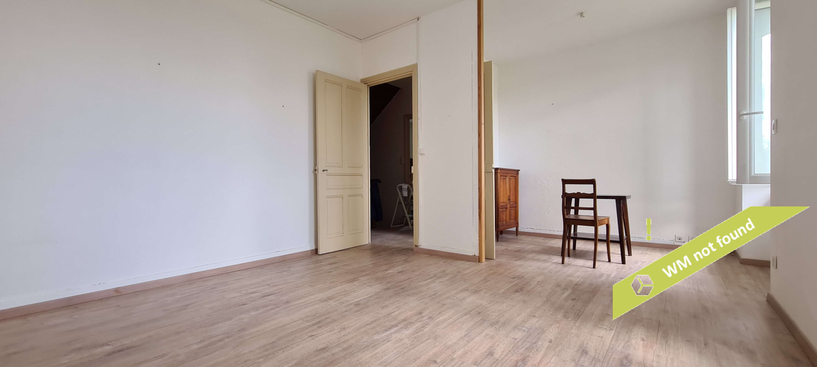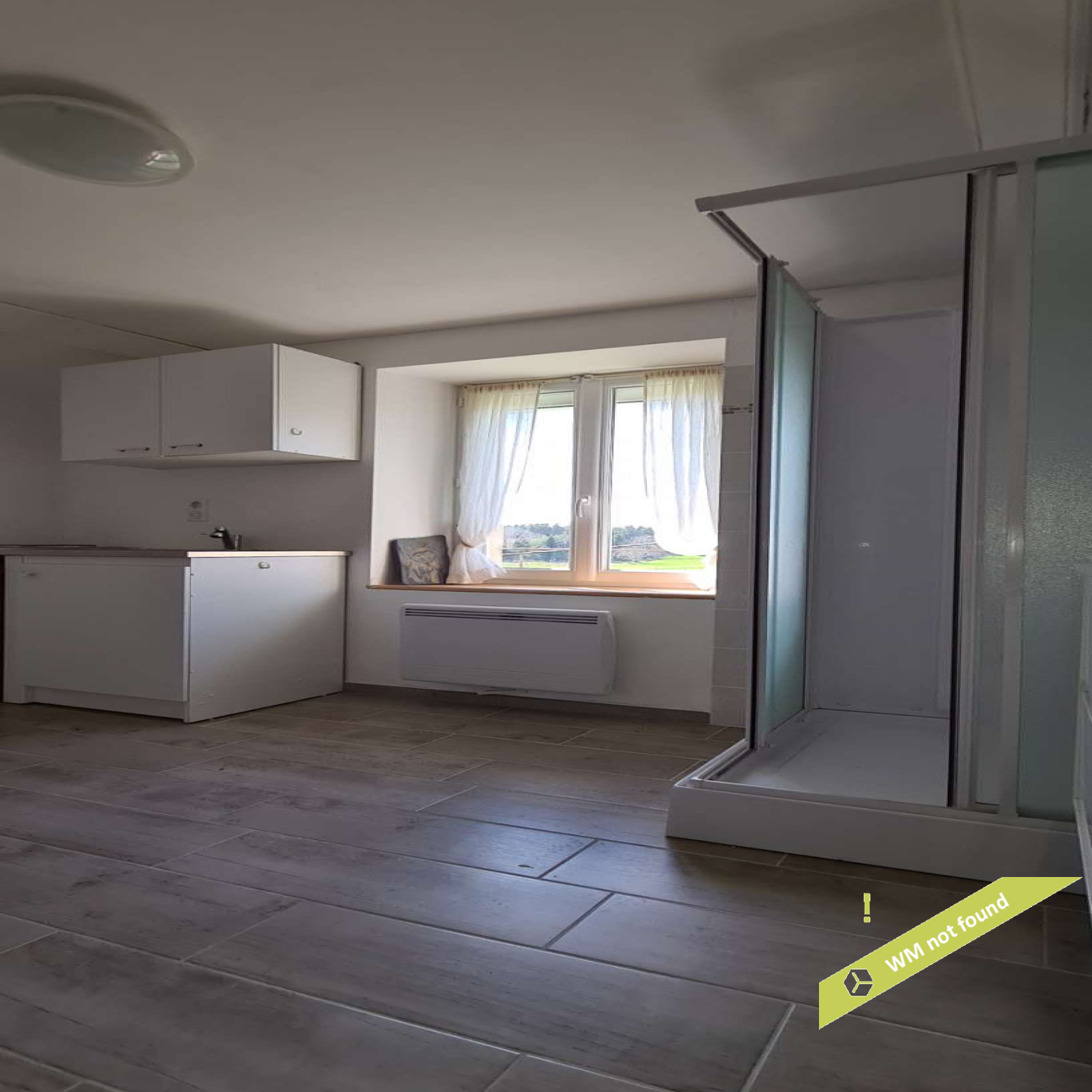 - espace sous combles aménagé en trois parties : une chambre, un espace ouvert avec wc et une pièce avec douche et point d'eau.