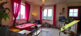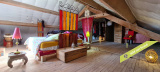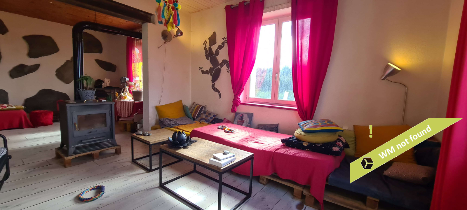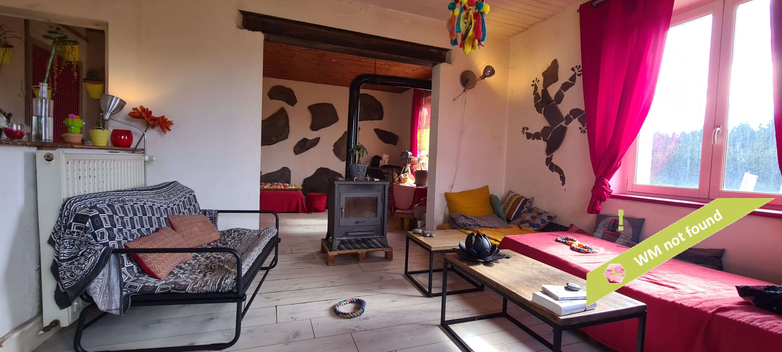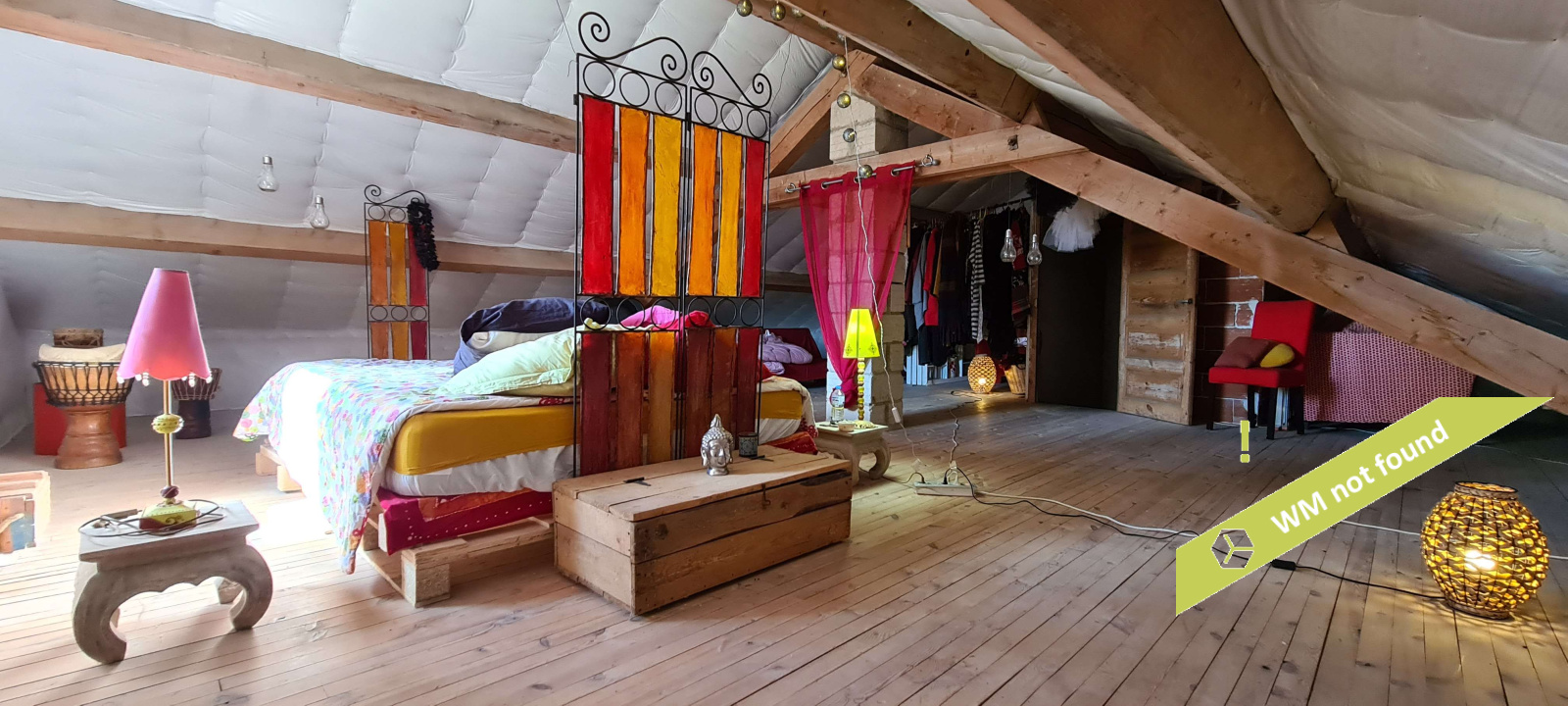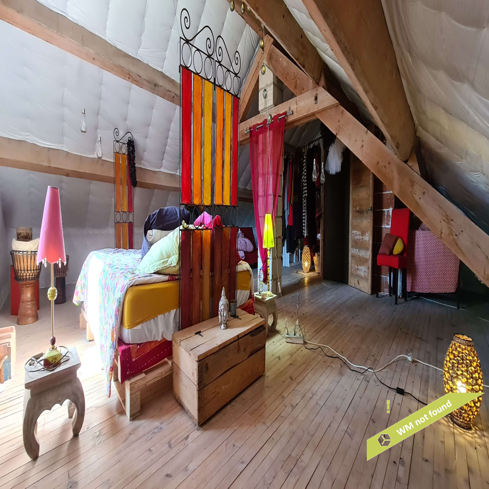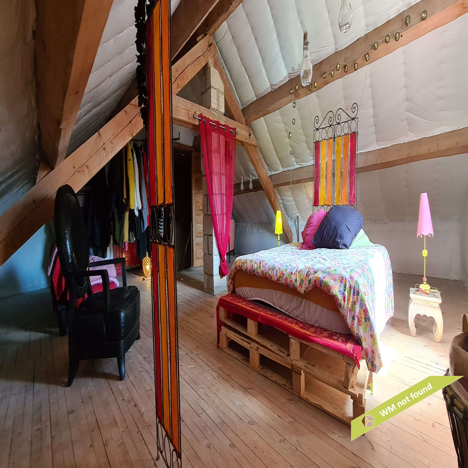 Il comprend une partie habitation, très lumineuse grâce à de nombreuses ouvertures : au rez-de-chaussée, on trouve la cuisine et un espace salon/salle-à-manger. A l'étage, on compte 3 chambres, une pièce accessible depuis les chambres, une salle d'eau et un wc. Le grenier mansardé a été récemment aménagé en espace nuit.