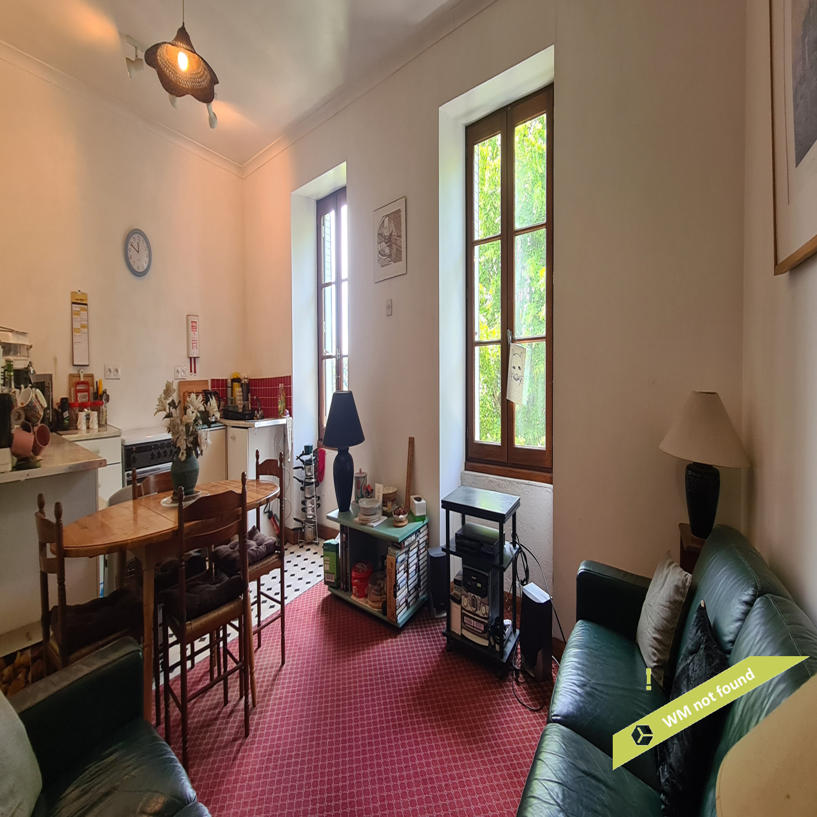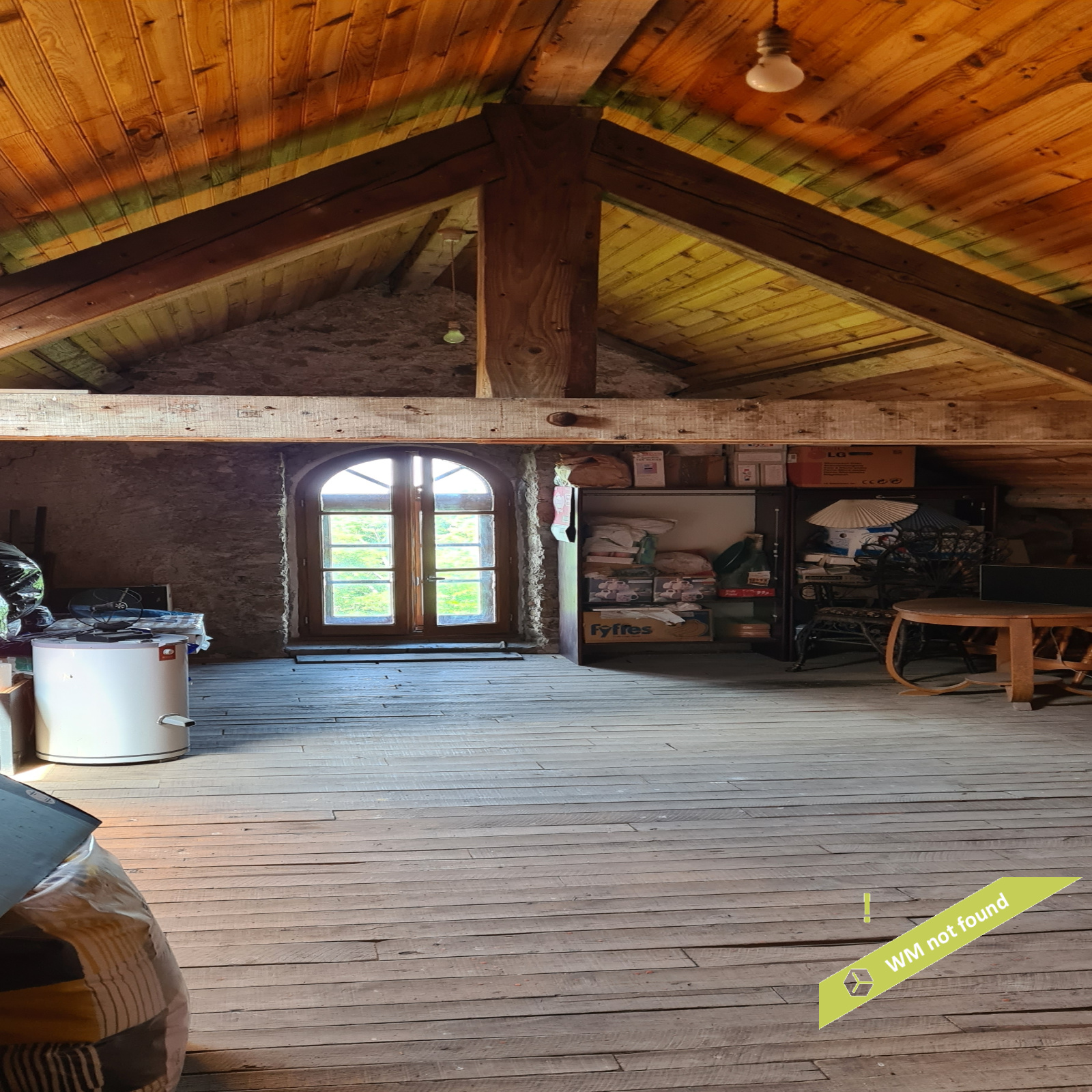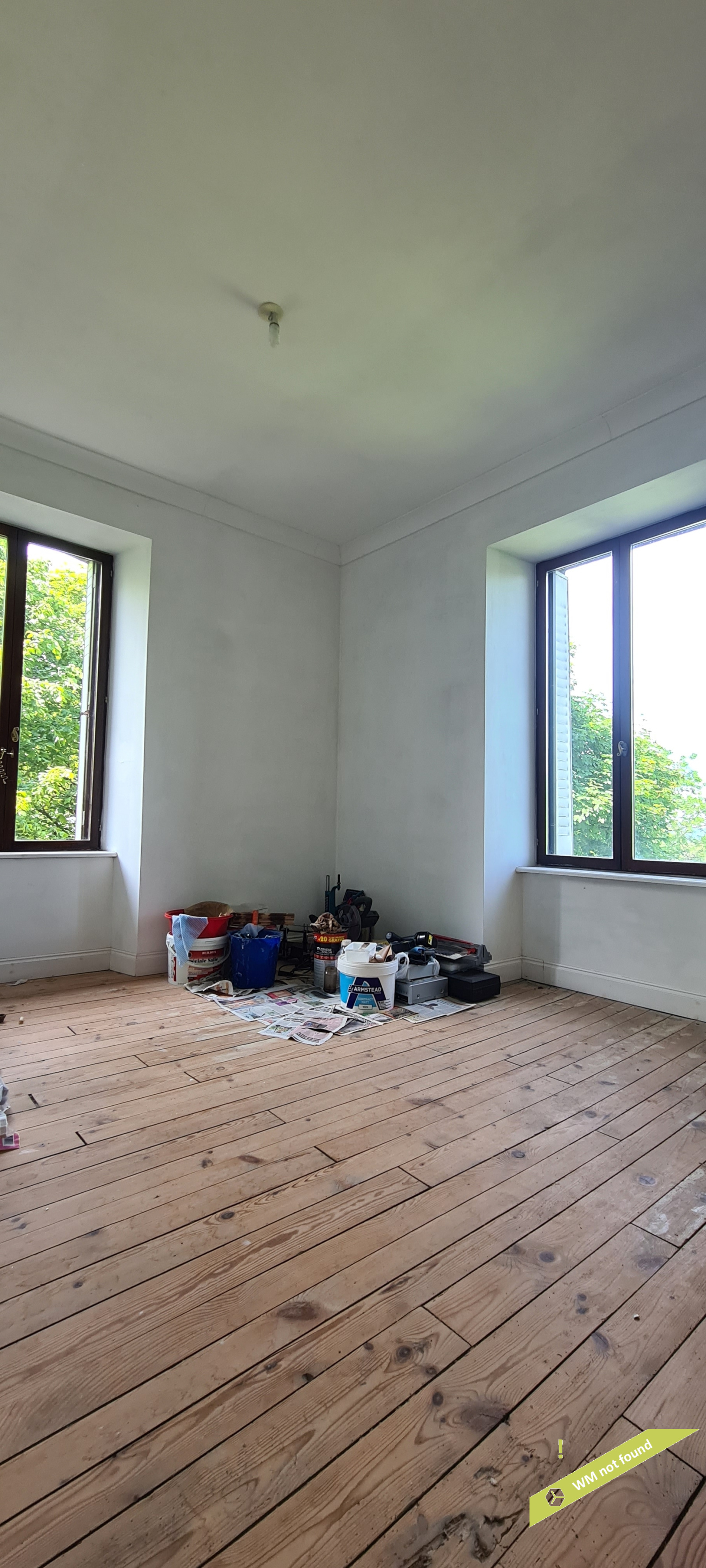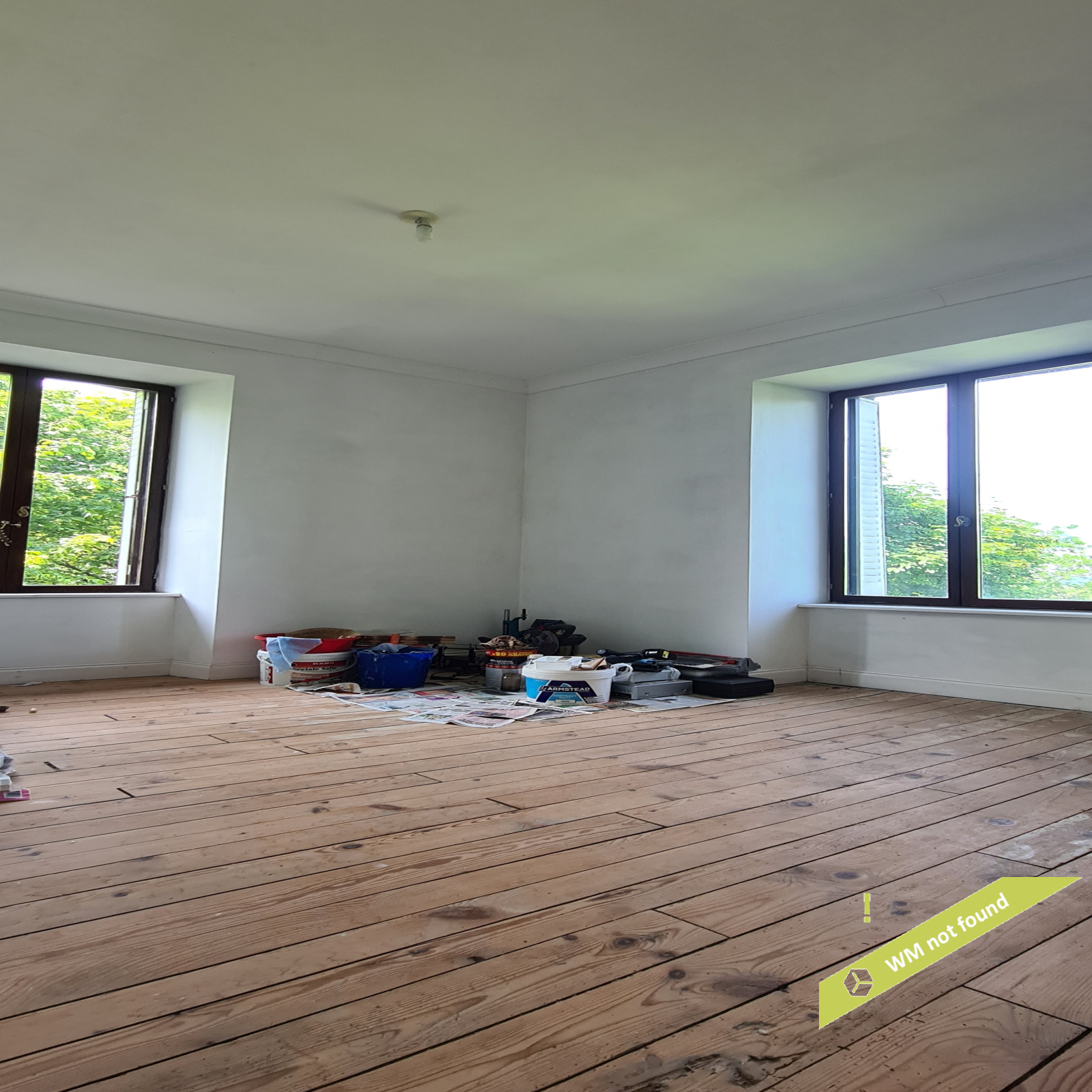 - le 2ème niveau de 107,40 m² comprend une ancienne salle de classe (49,06 m² et 3,77 m sous plafond) et un espace de 46,78 m² aménagé en appartement (cuisine/salle-à-manger, une chambre et une salle d'eau avec wc).