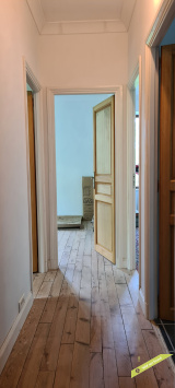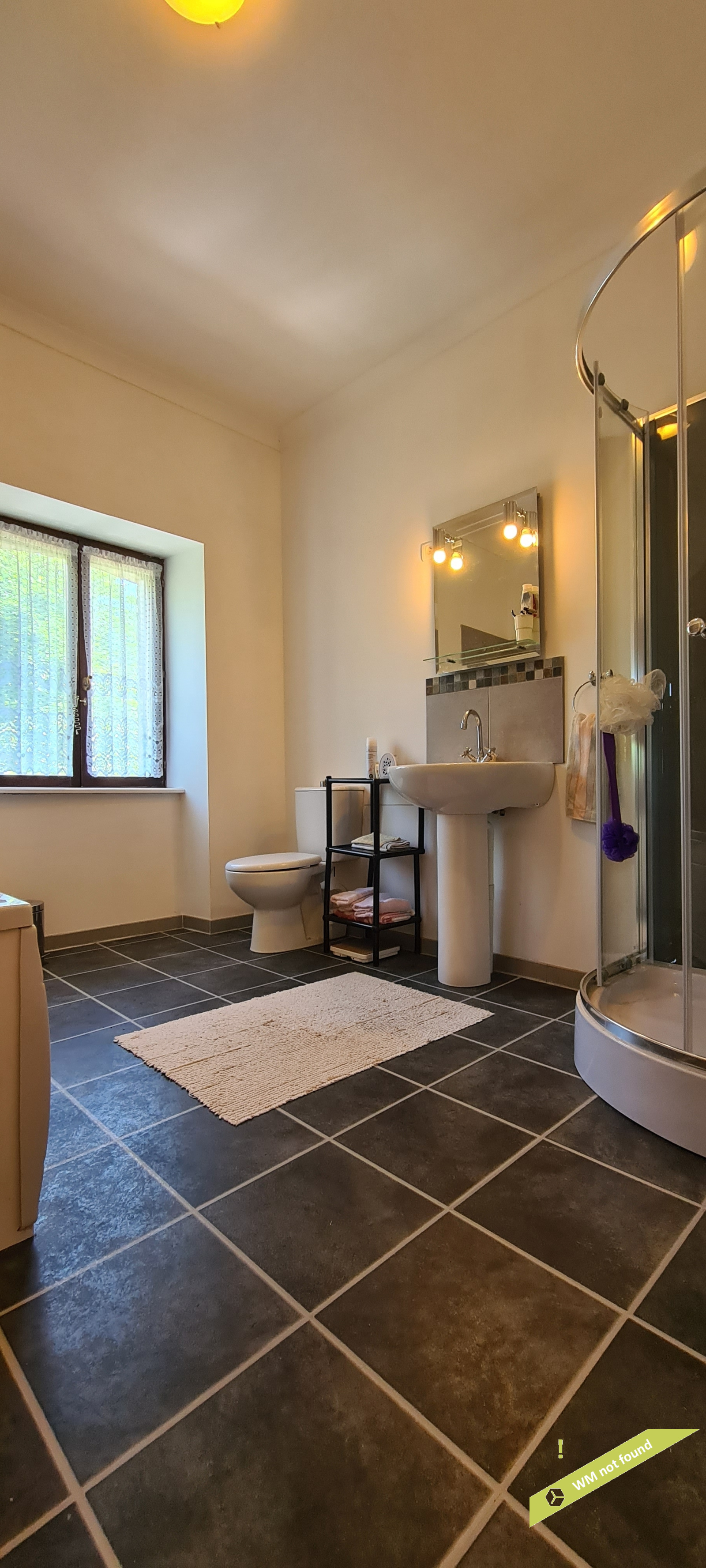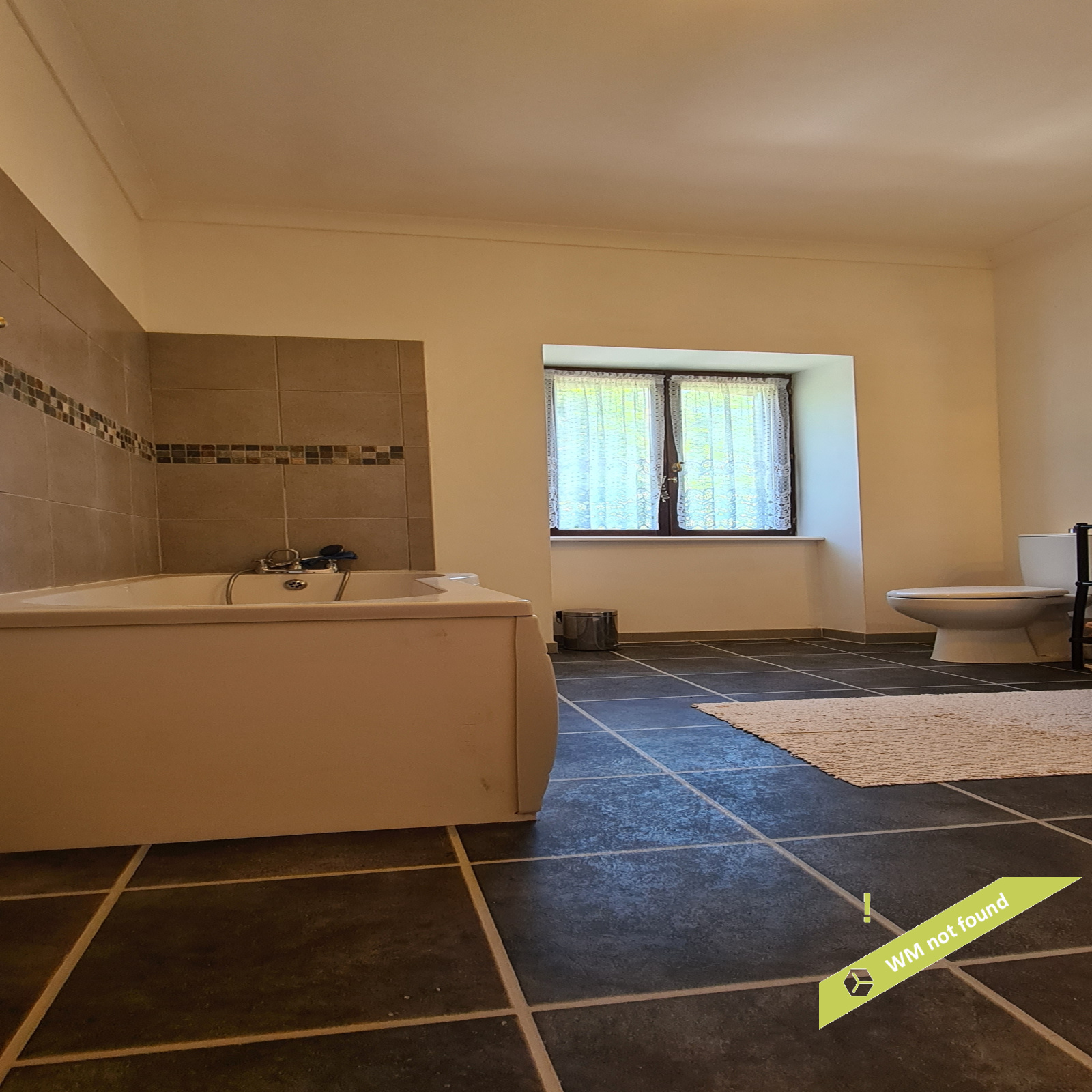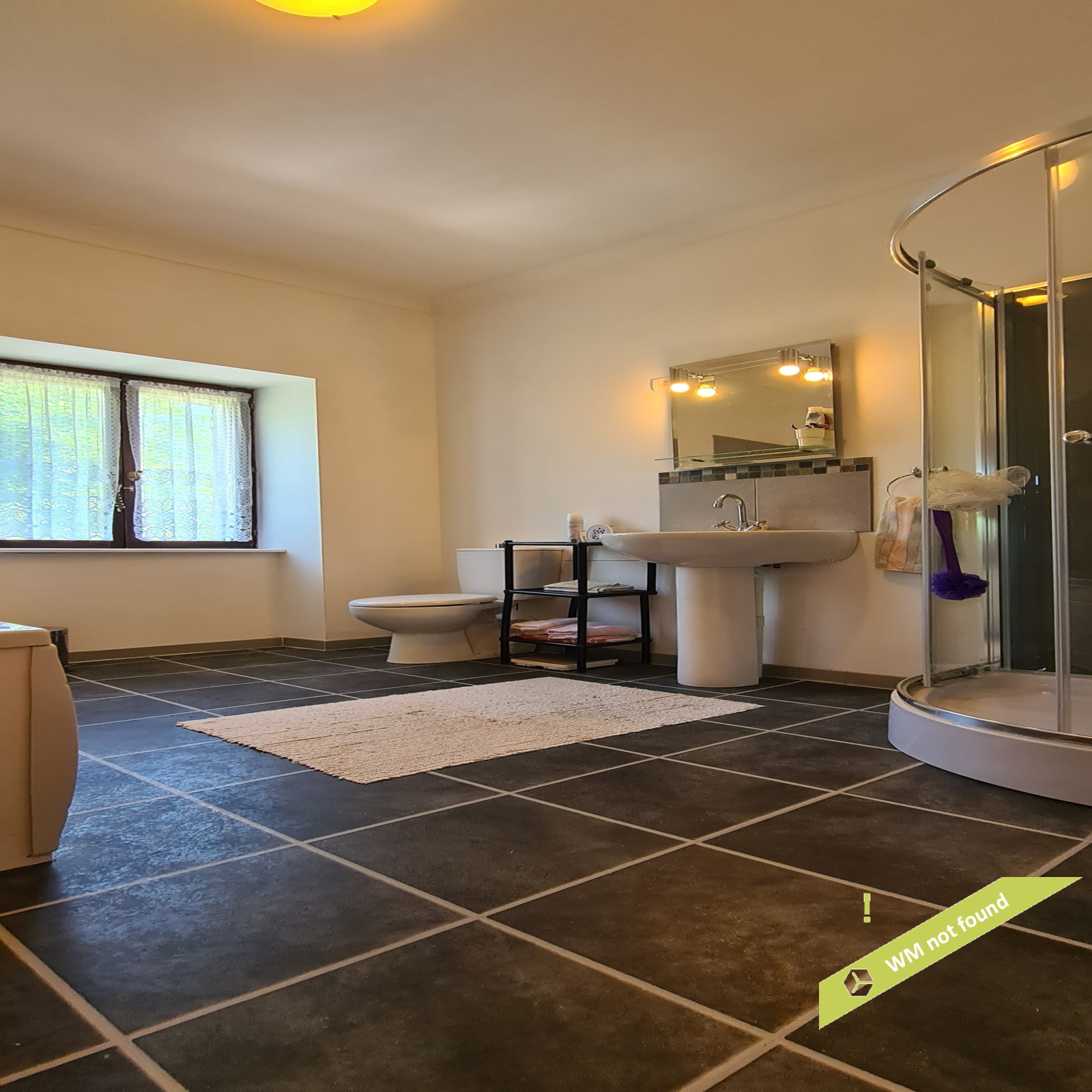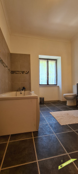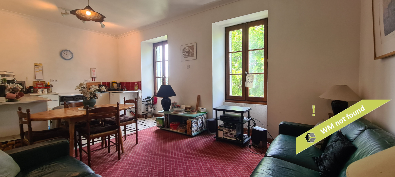 - le 2ème niveau de 107,40 m² comprend une ancienne salle de classe (49,06 m² et 3,77 m sous plafond) et un espace de 46,78 m² aménagé en appartement (cuisine/salle-à-manger, une chambre et une salle d'eau avec wc).