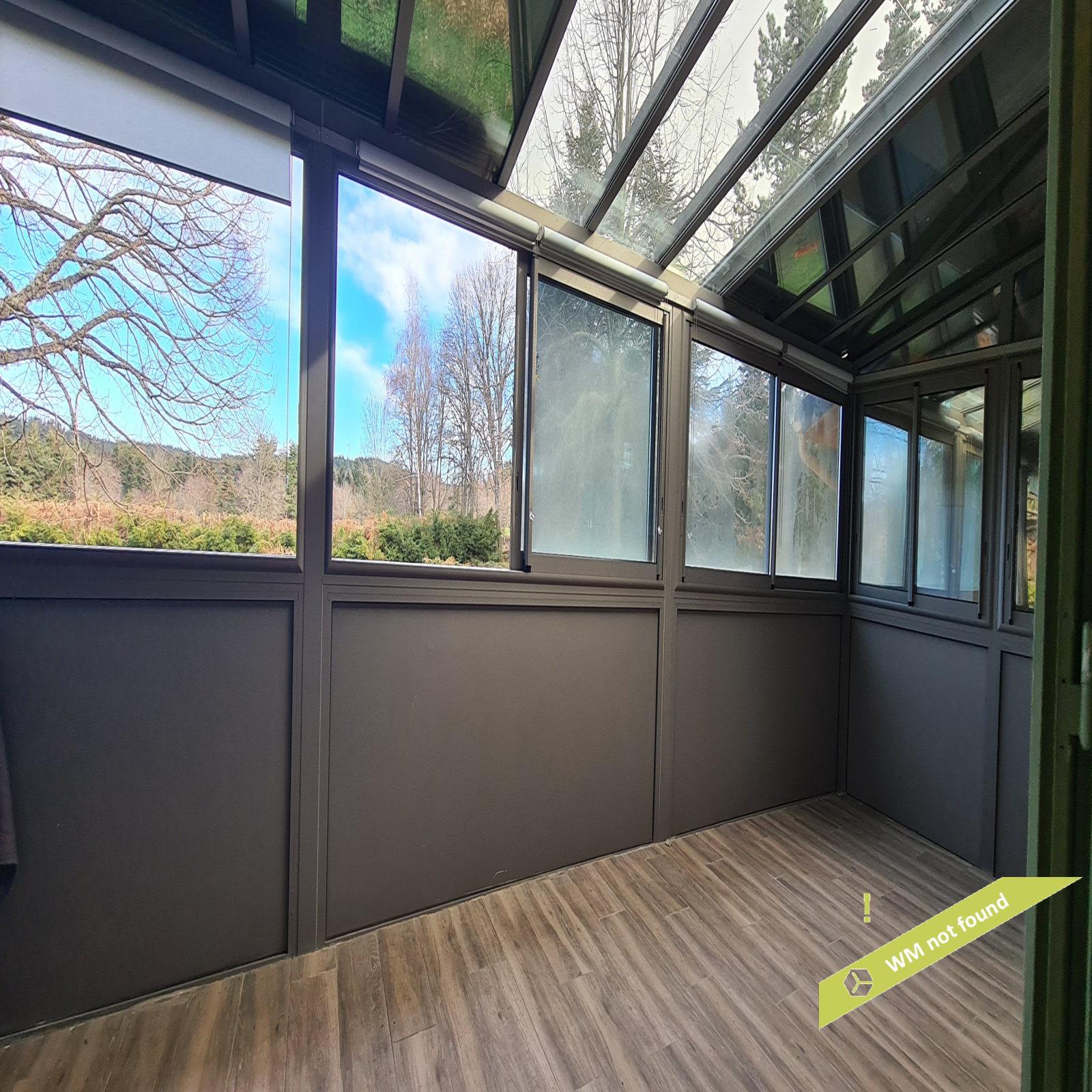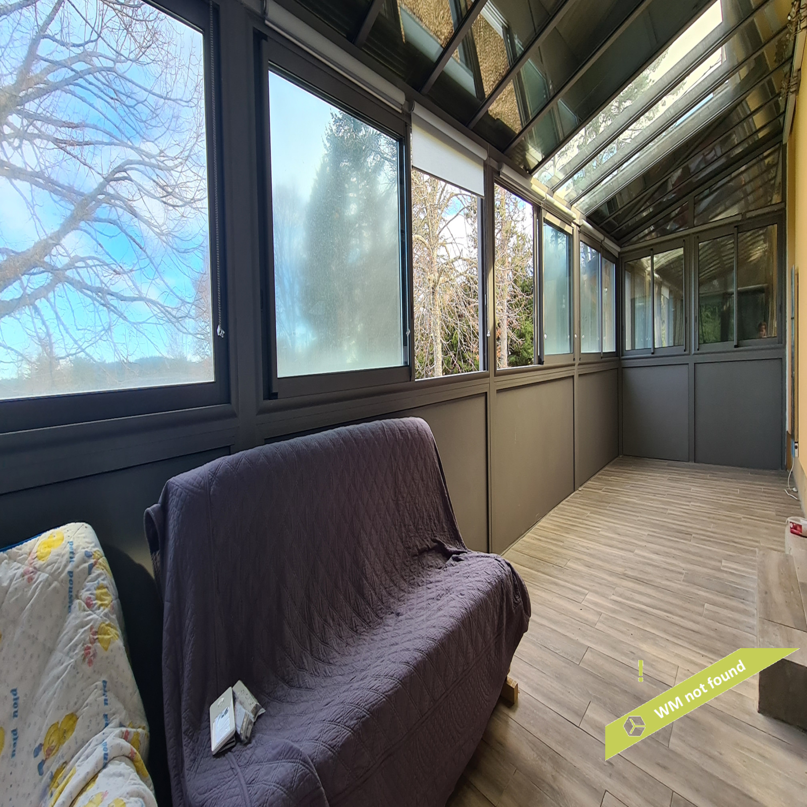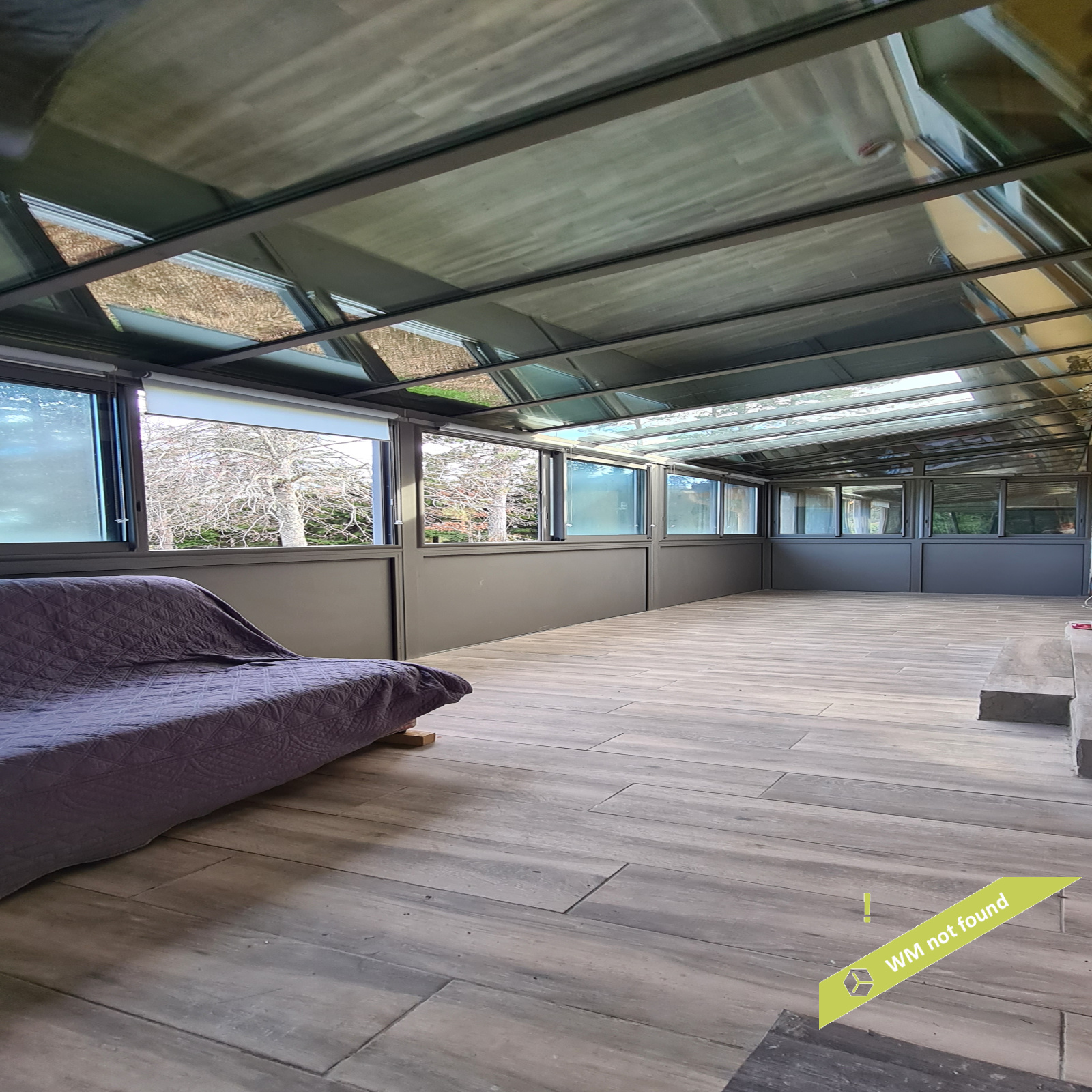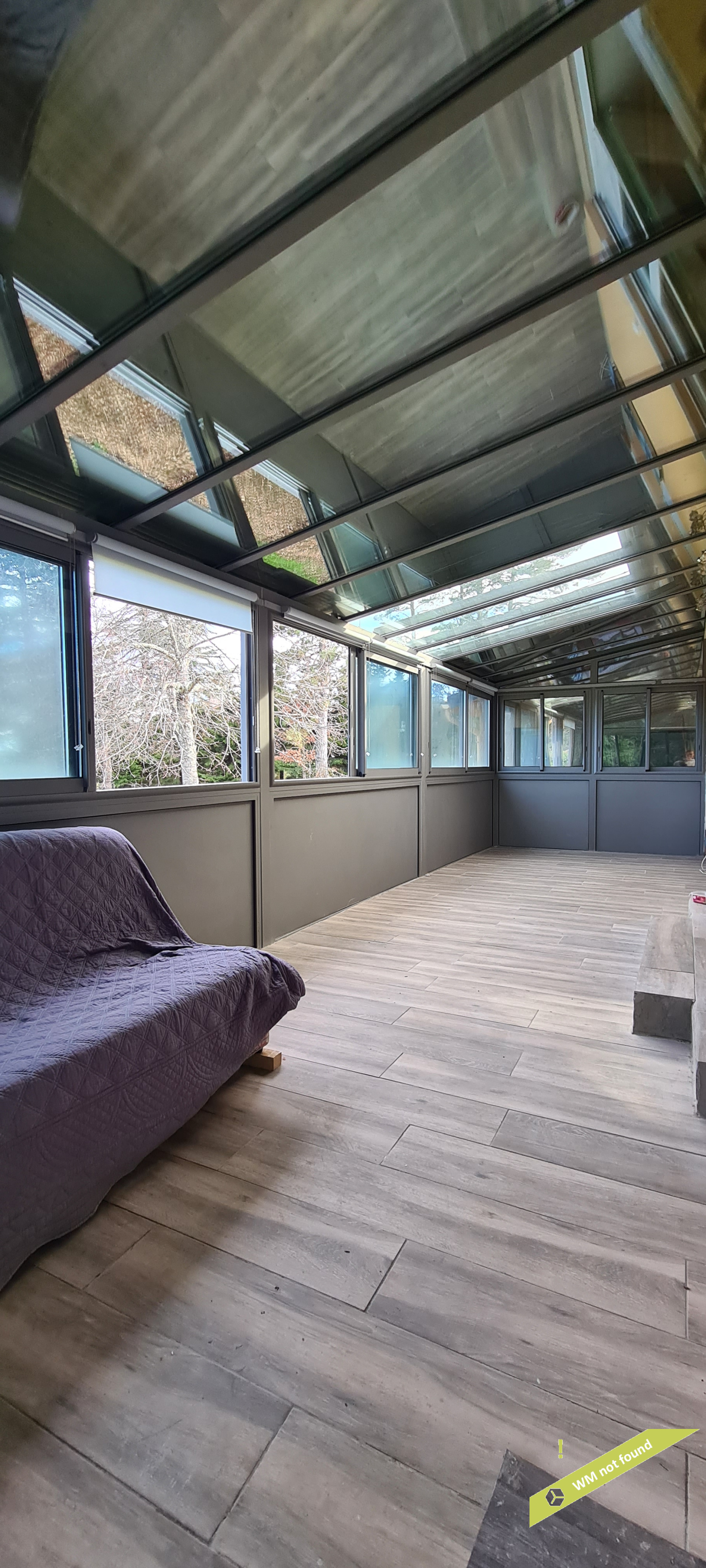 Depuis le séjour, une porte vitrée ouvre sur une véranda lumineuse de 30,95 m².