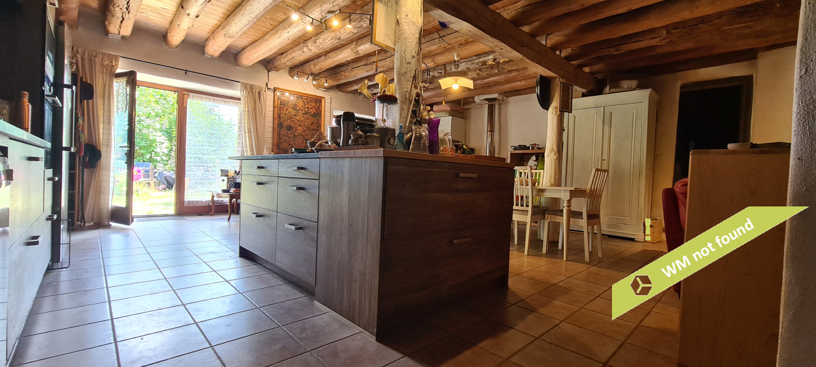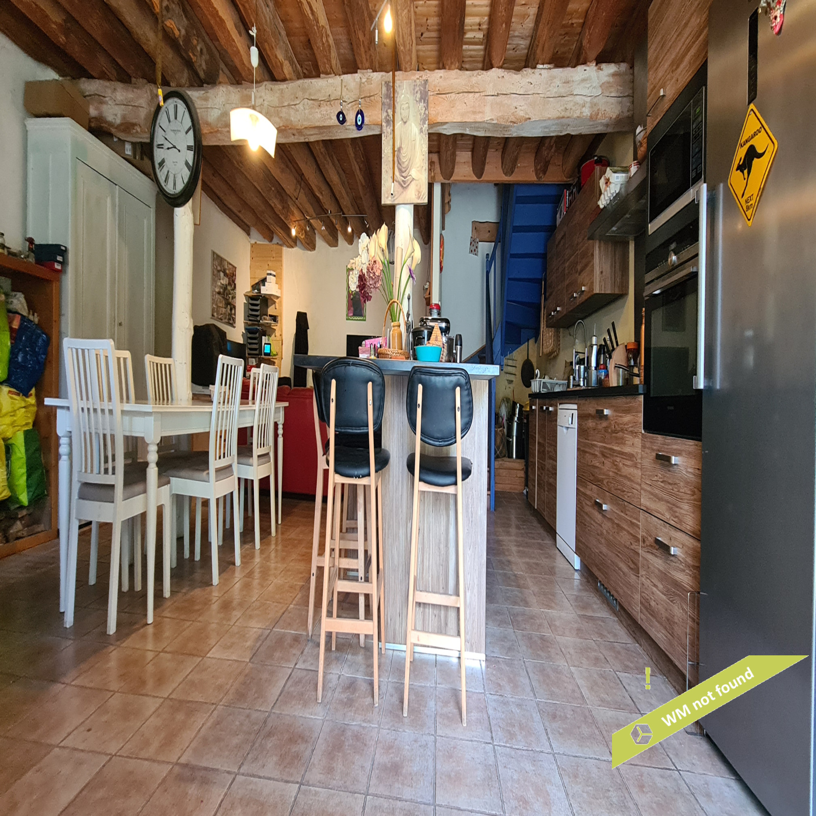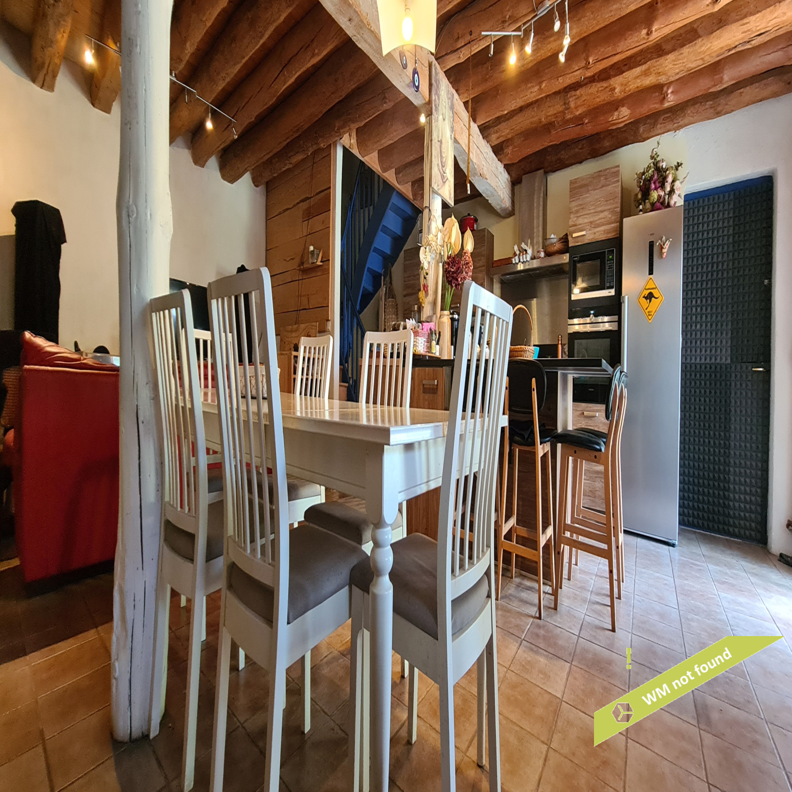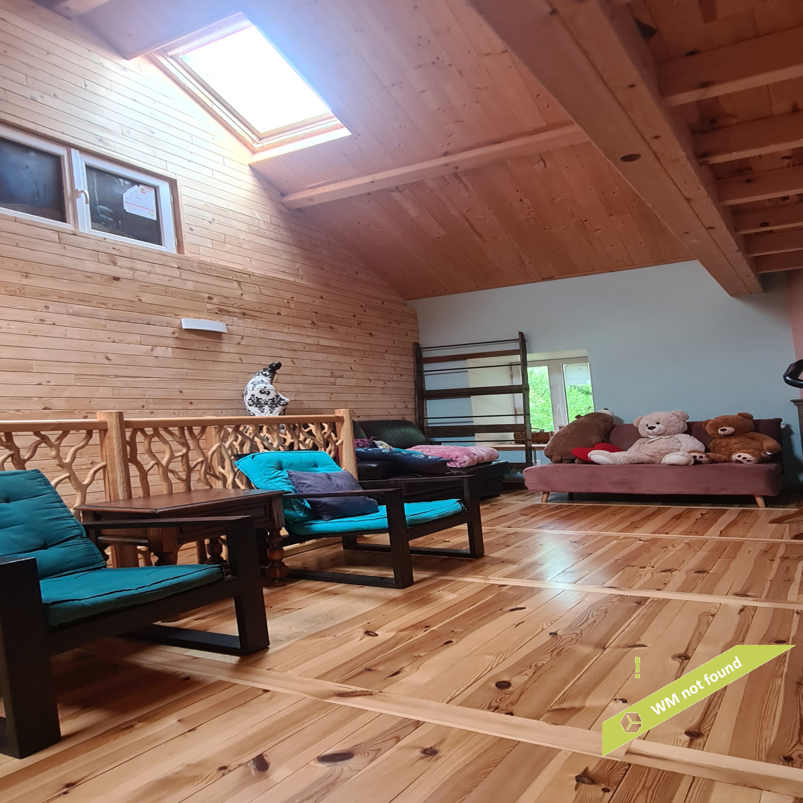 - Rez-de-chaussée : pièce de vie de 56 m² (cuisine ouverte, salle à manger, salon avec poêle à bois)