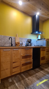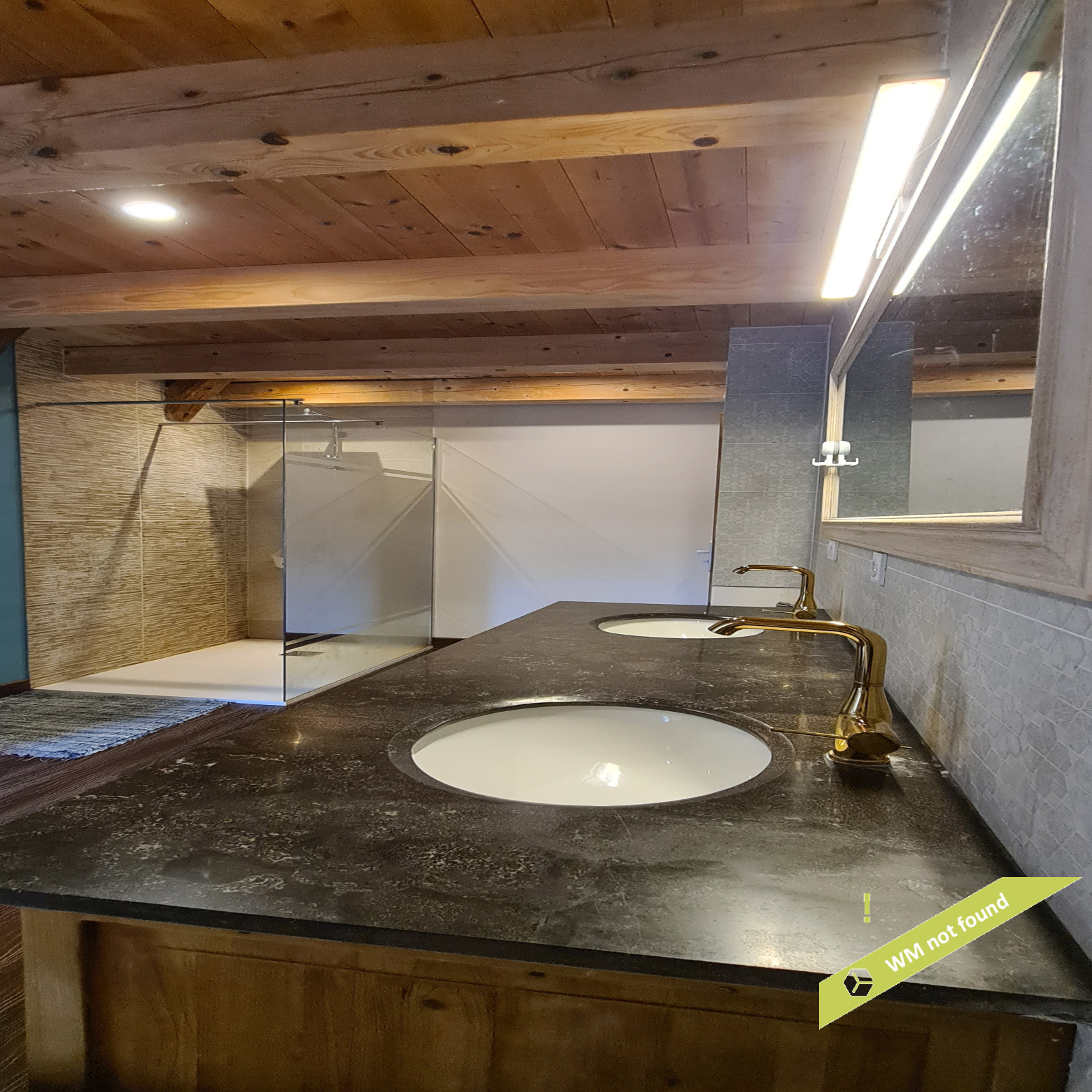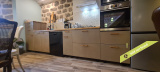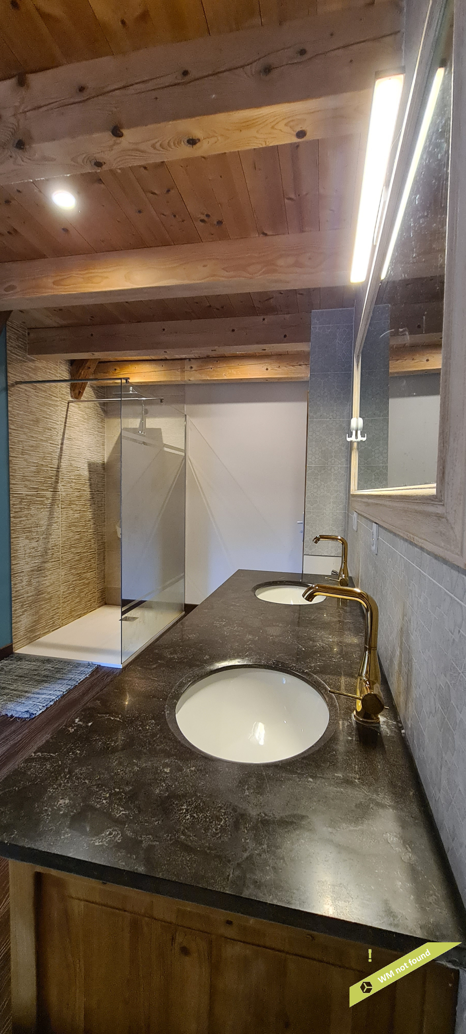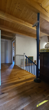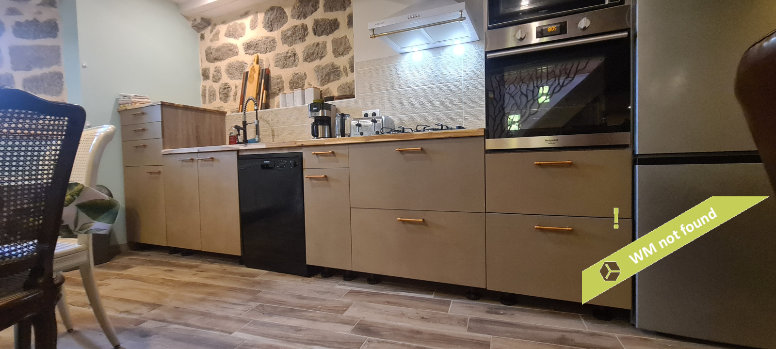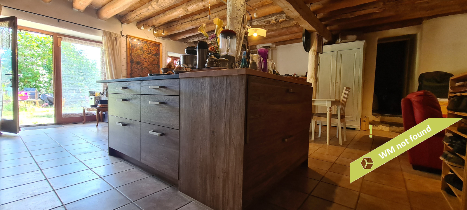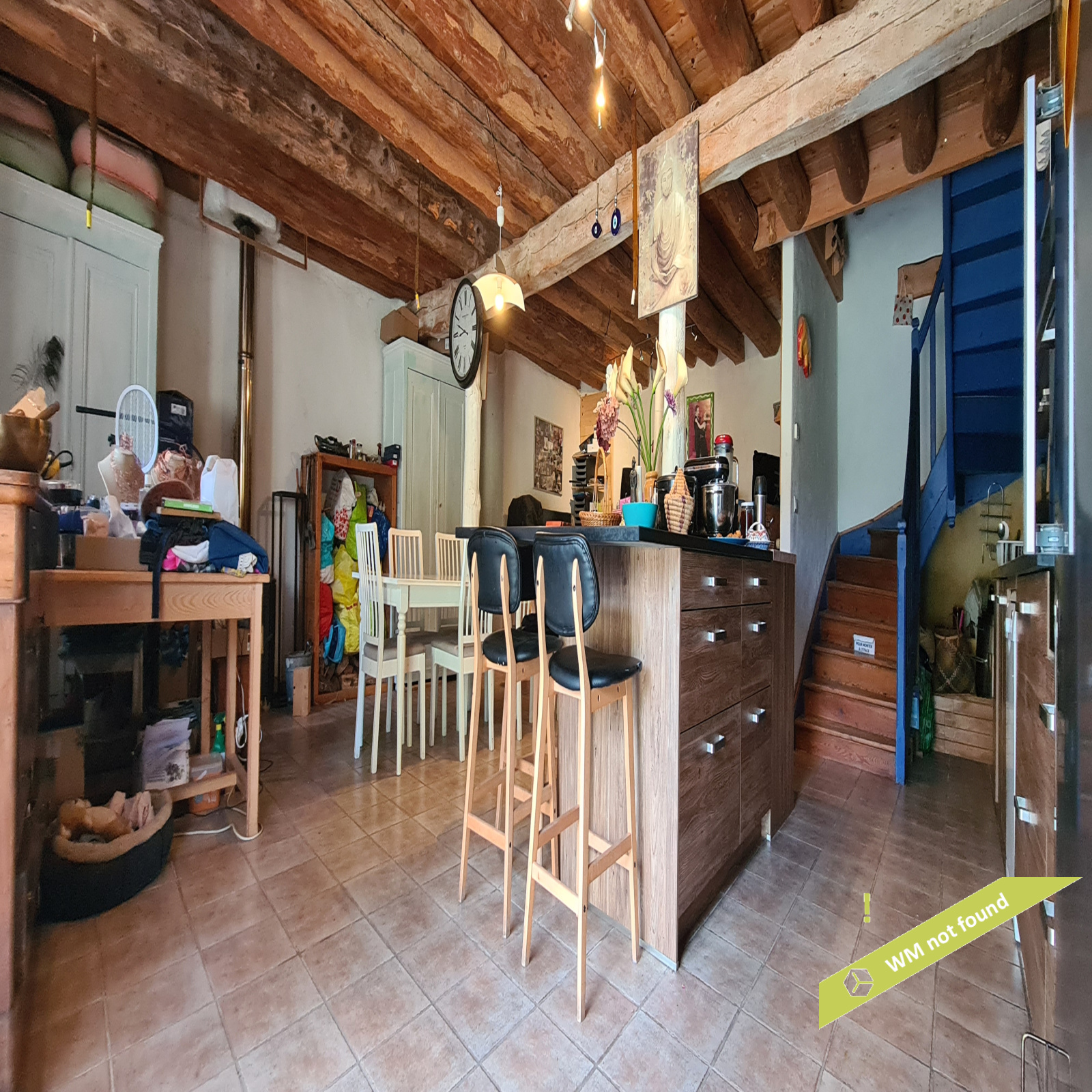 - Rez-de-chaussée : pièce de vie de 56 m² (cuisine ouverte, salle à manger, salon avec poêle à bois)