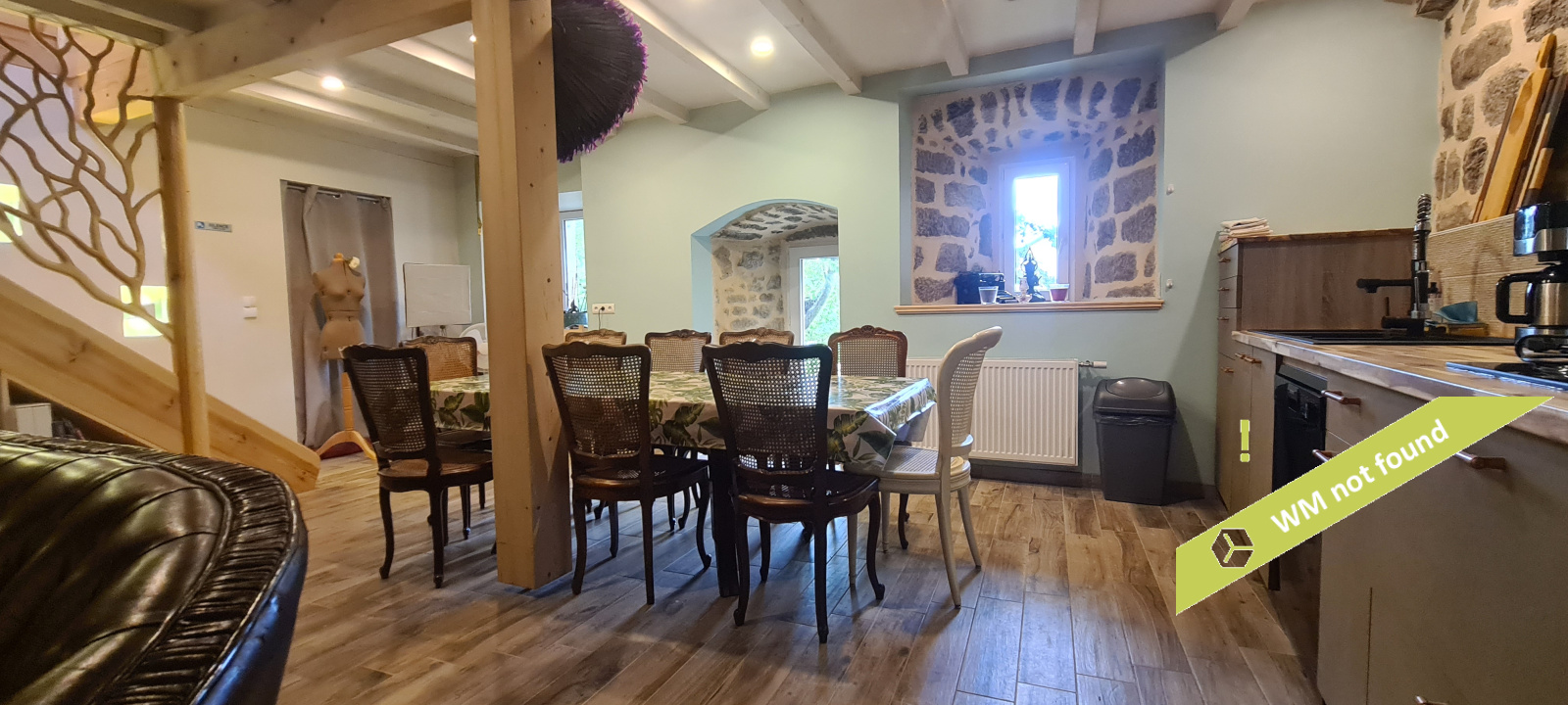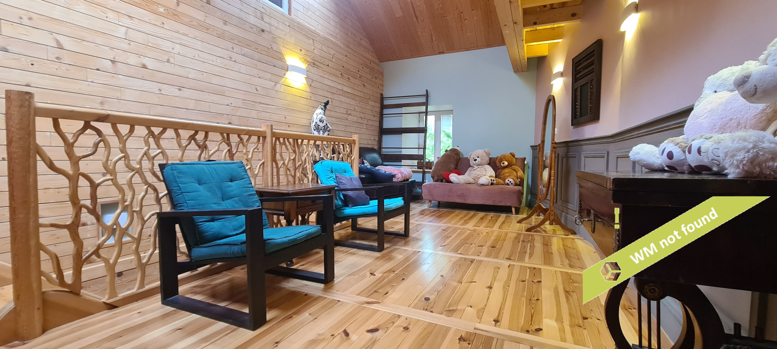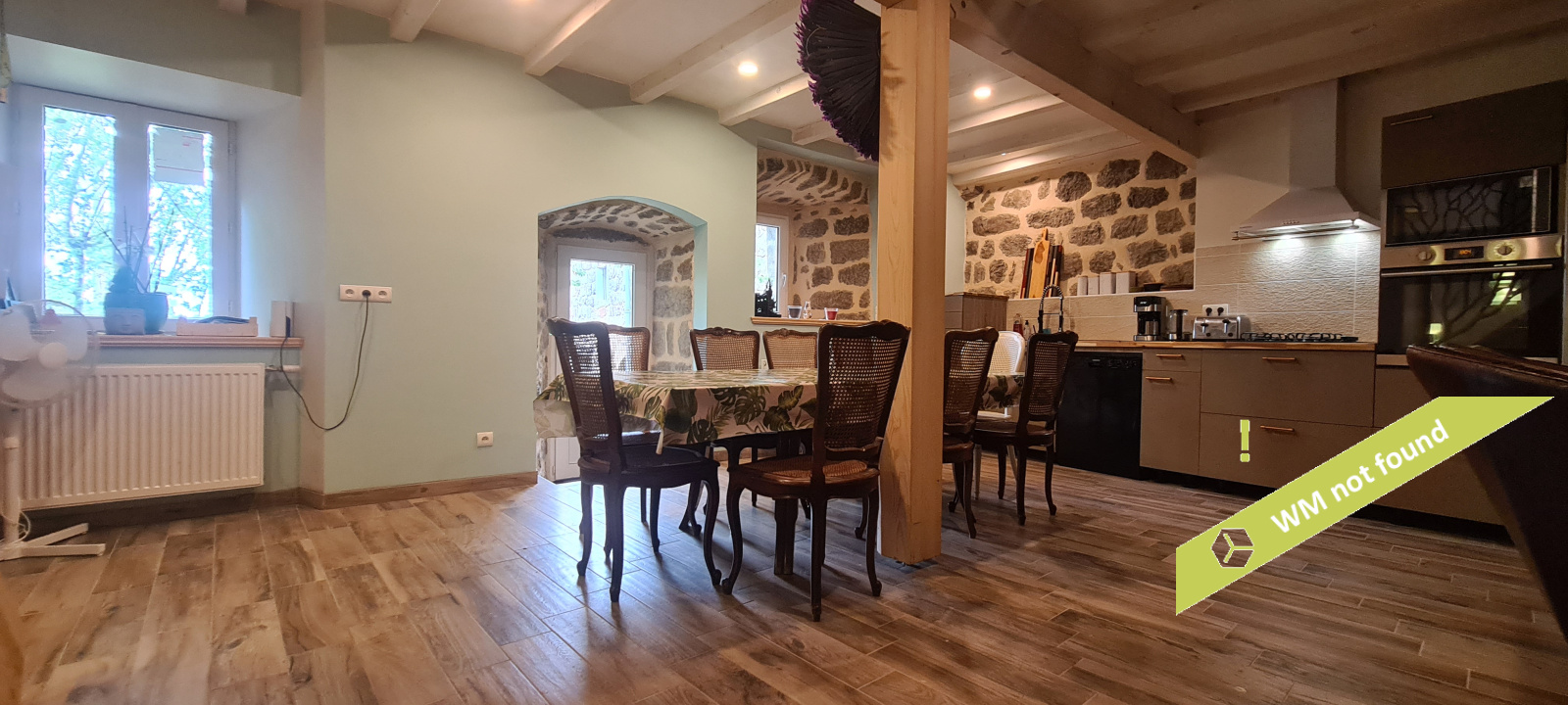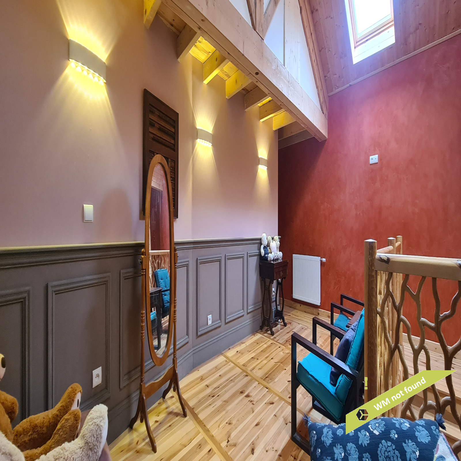 - Rez-de-chaussée : vaste pièce à vivre (cuisine, salle à manger, salon avec cheminée), WC