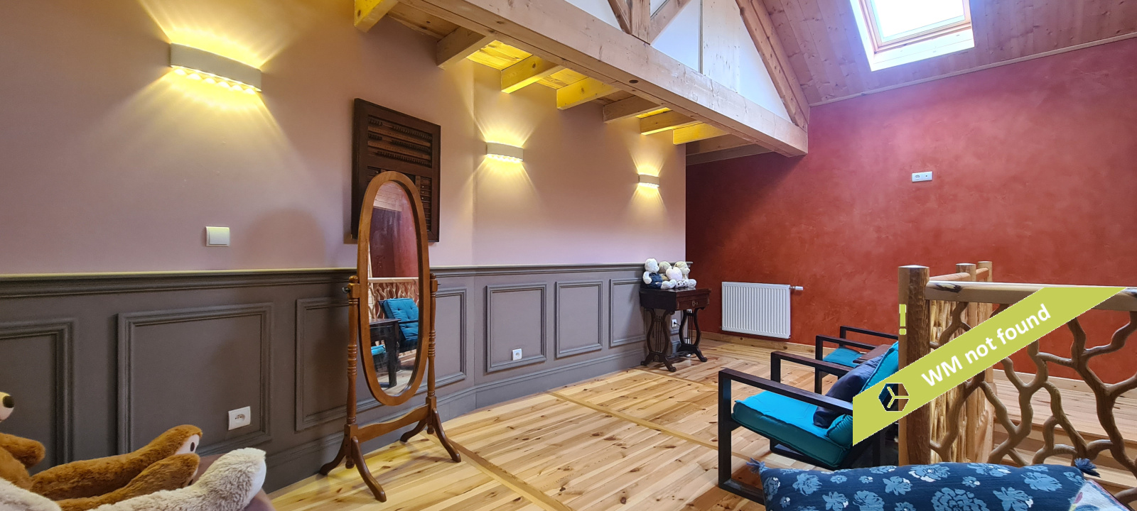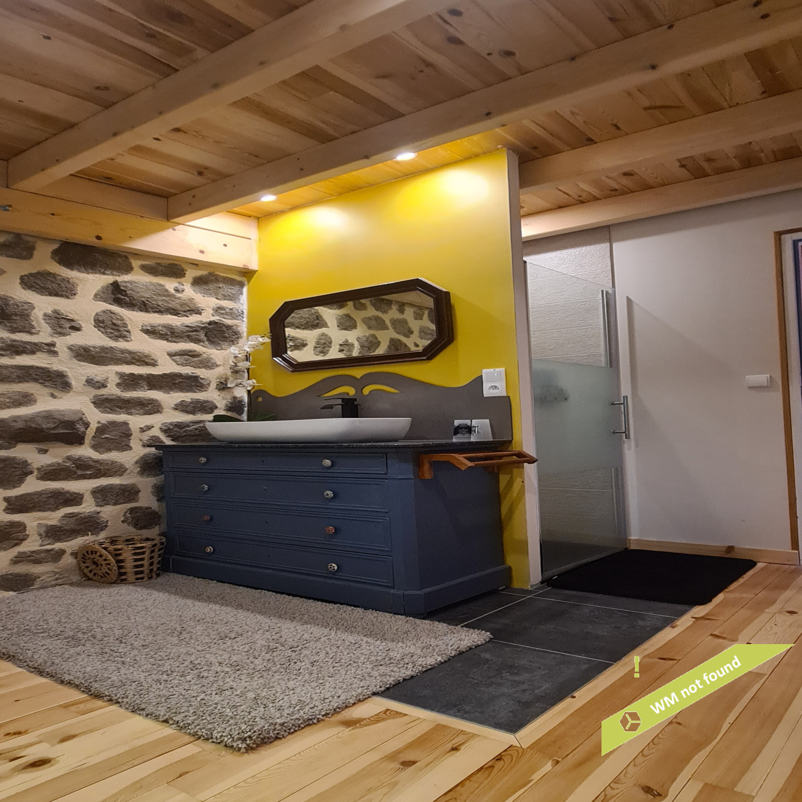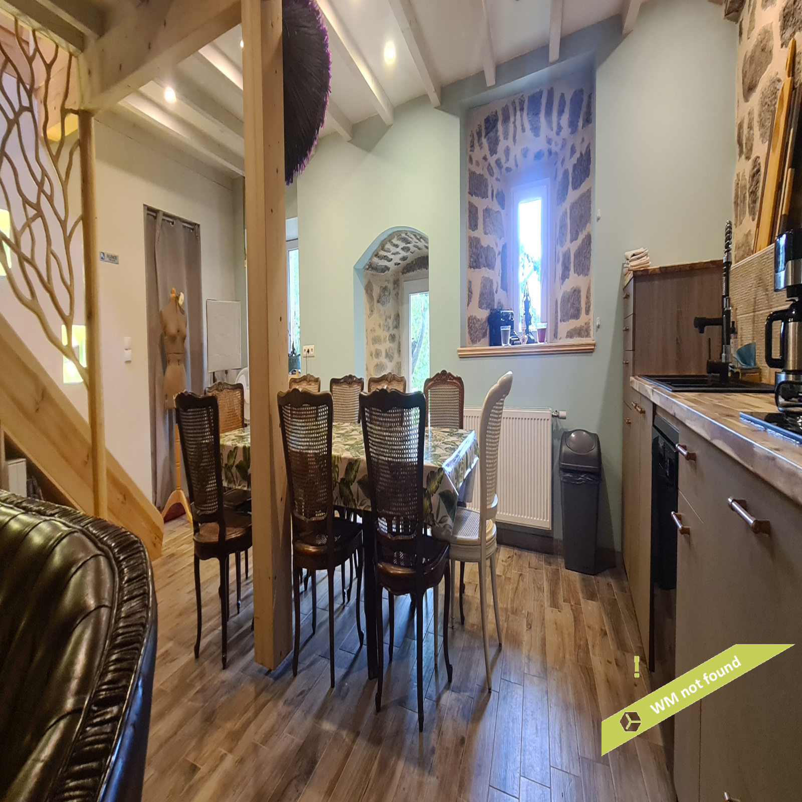 - Rez-de-chaussée : vaste pièce à vivre (cuisine, salle à manger, salon avec cheminée), WC