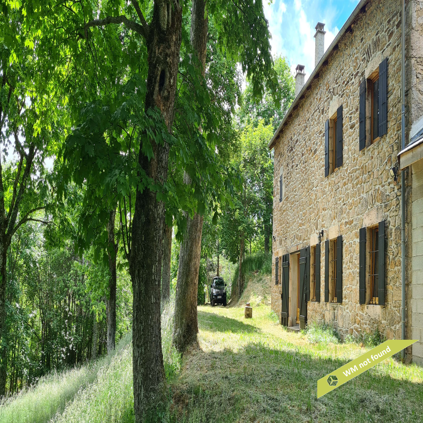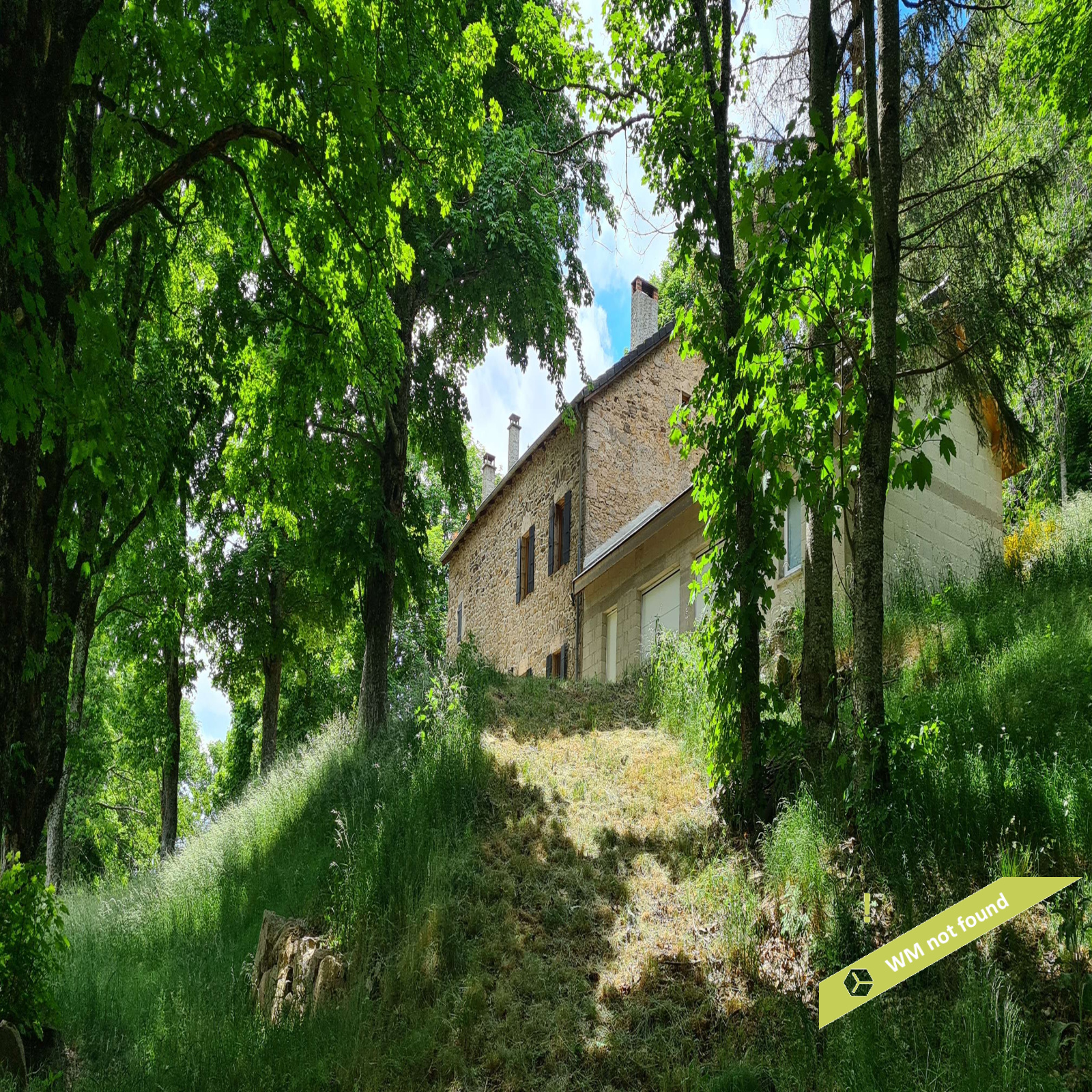 Cette maison en pierres (ancienne ferme), est édifiée sur un terrain de 5ha 31a 24ca, composé de bois et de prés en terrasses.