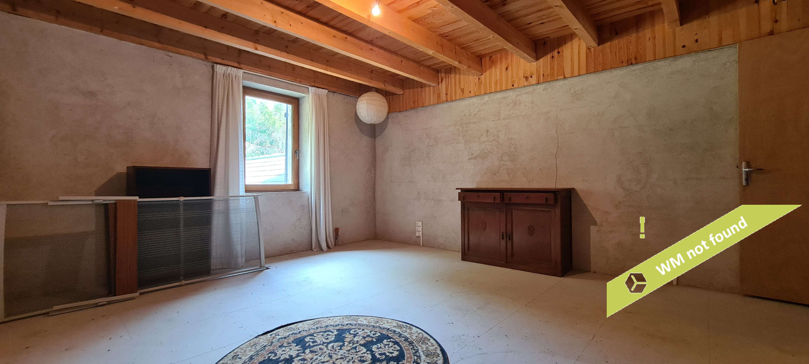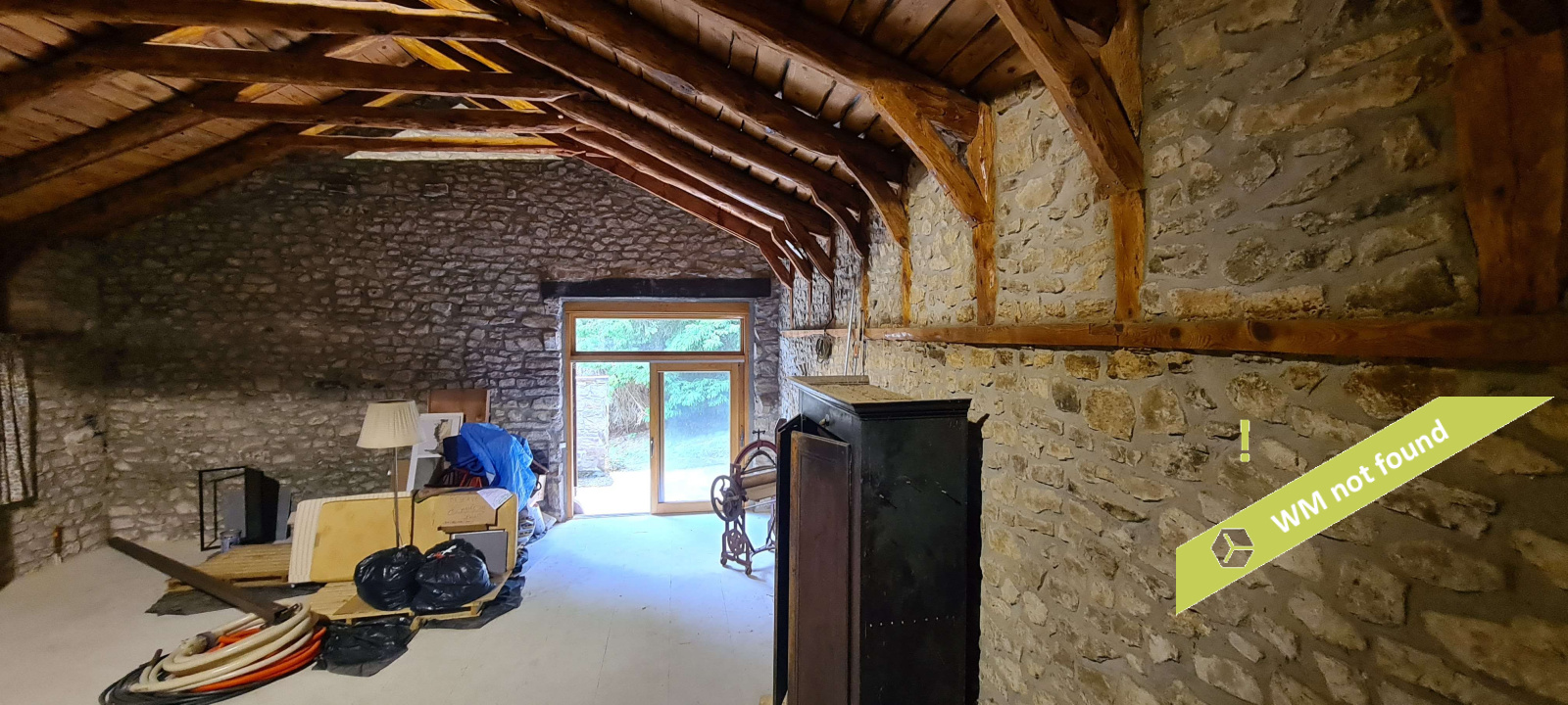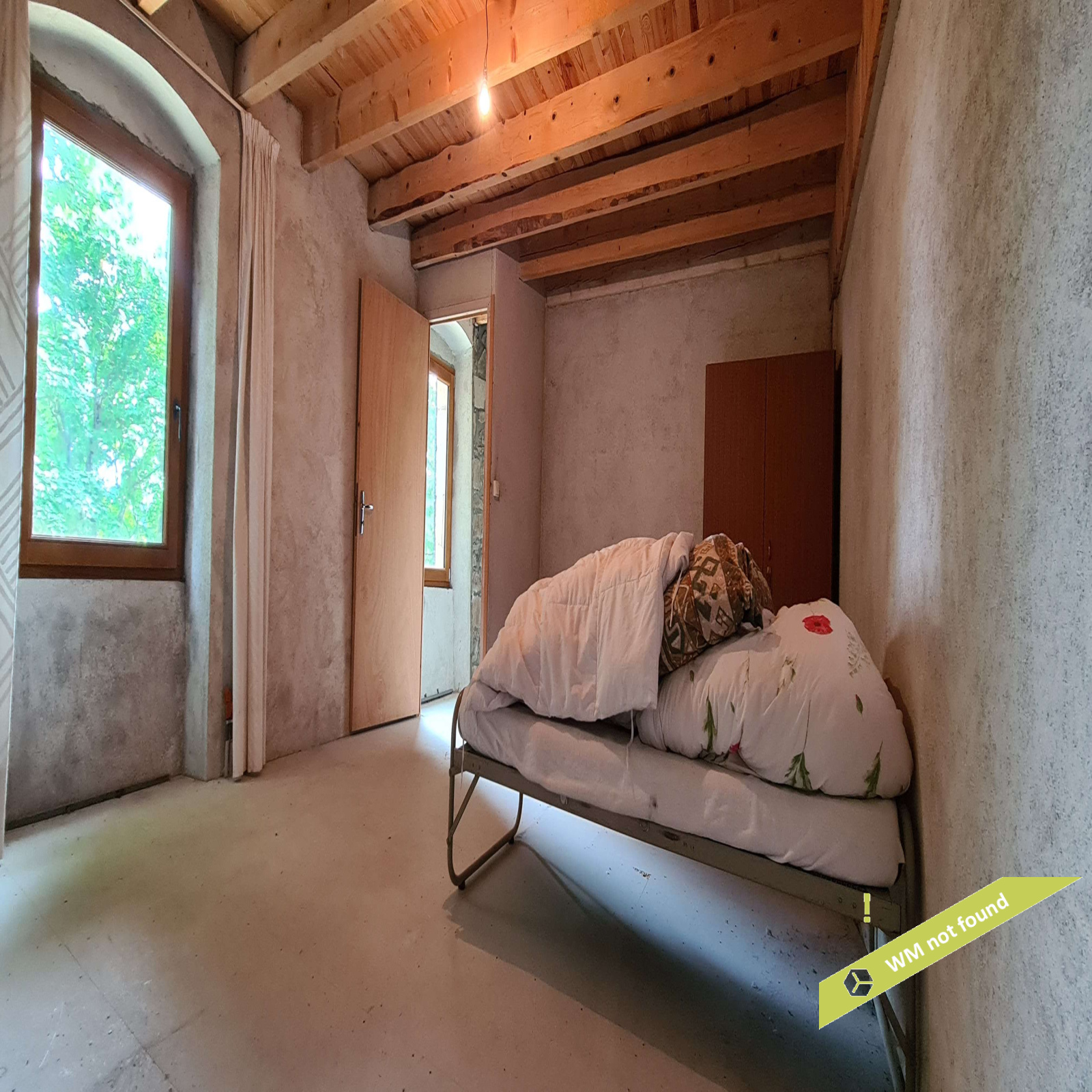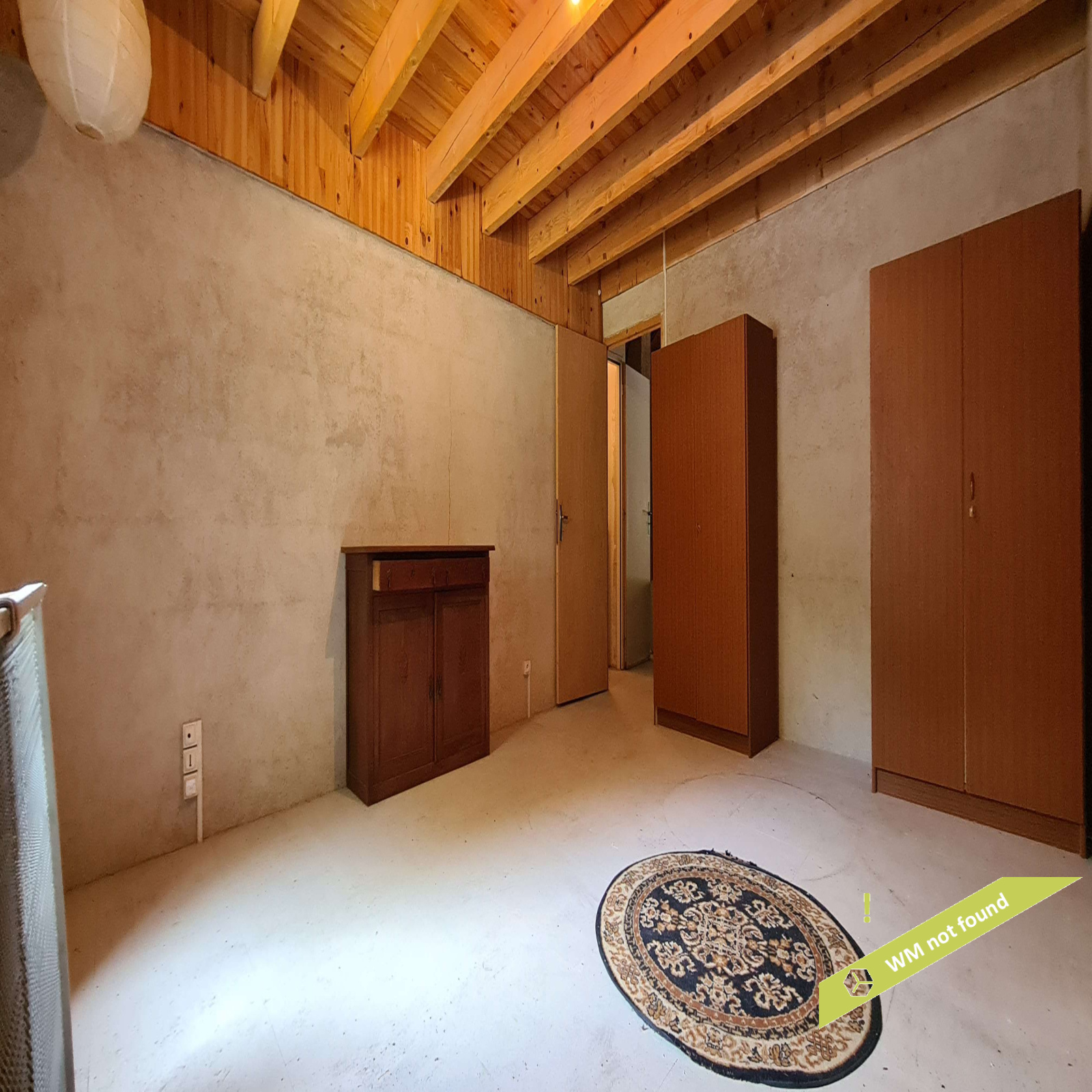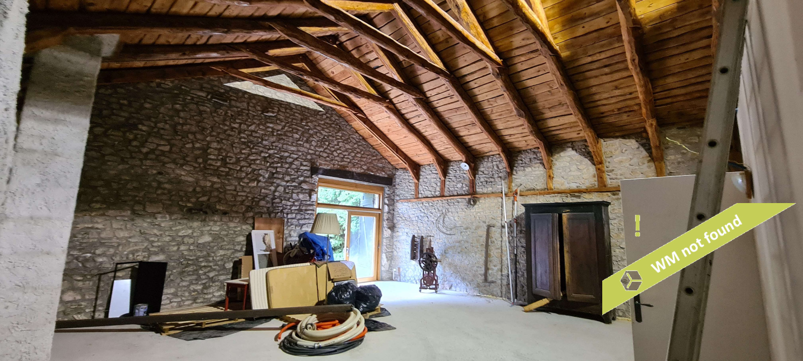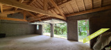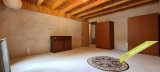 - l'étage, avec sa charpente bateau traditionnelle, est constitué par deux pièces à usage de chambres (20,26 m² et 19,47 m²), d'un vaste espace (anciennement à usage de grange) pour 68,84 m² et une hauteur d'environ 4,55 m. Au-dessus de l'espace chambres, on trouve une mezzanine de 42,83 m² au sol pour une surface habitable d'environ 25,04 m².