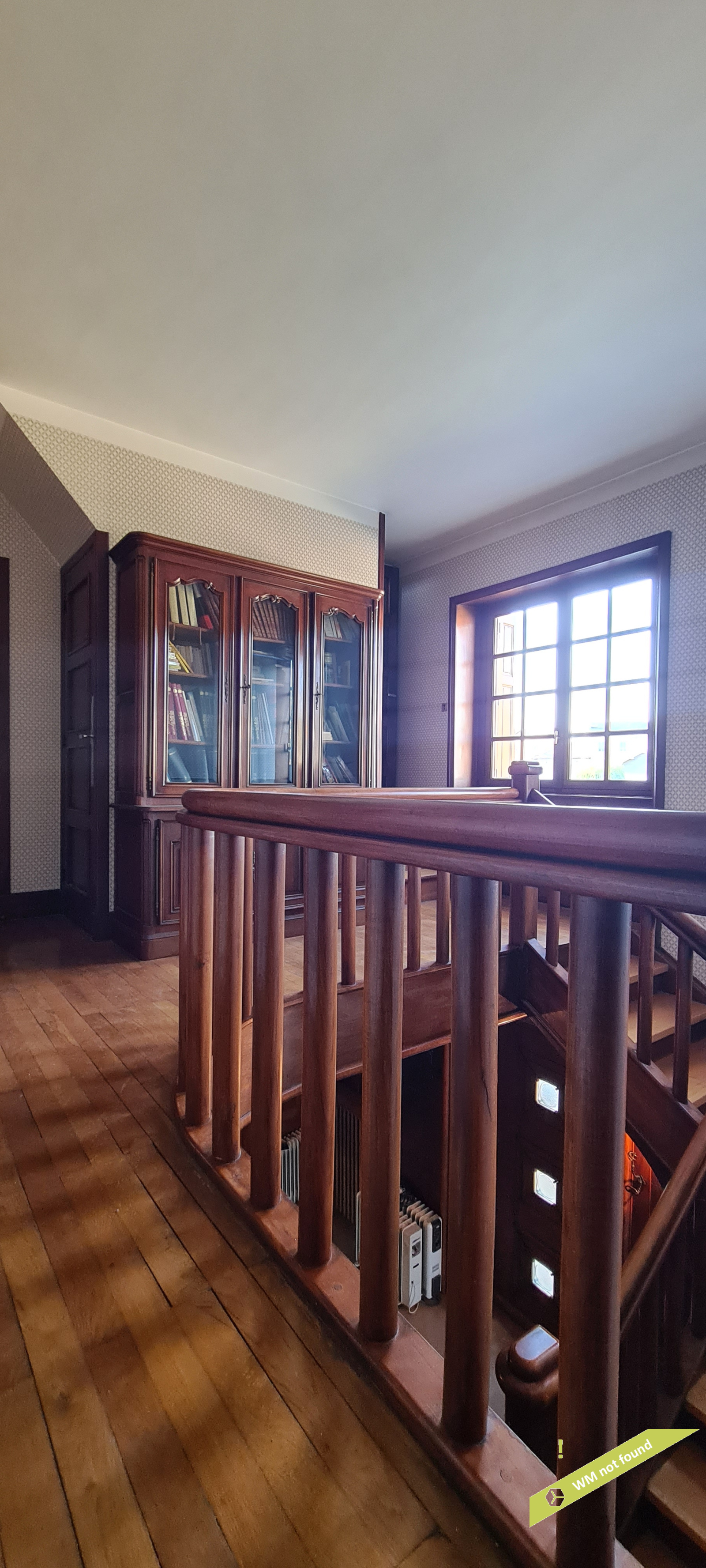 Étage accessible par un superbe escalier en bois, comprenant : une chambre avec cabinet de toilette et placard penderie (19,44 m²), une 2ème chambre (19,56 m²) avec salle de bains privative (4,74 m²) et placard (2,08 m²), une 3ème chambre (19,35 m²) avec accès à la salle de bains commune (7,54 m²), une 4ème chambre avec lavabo (11,52 m²) et un wc indépendant.