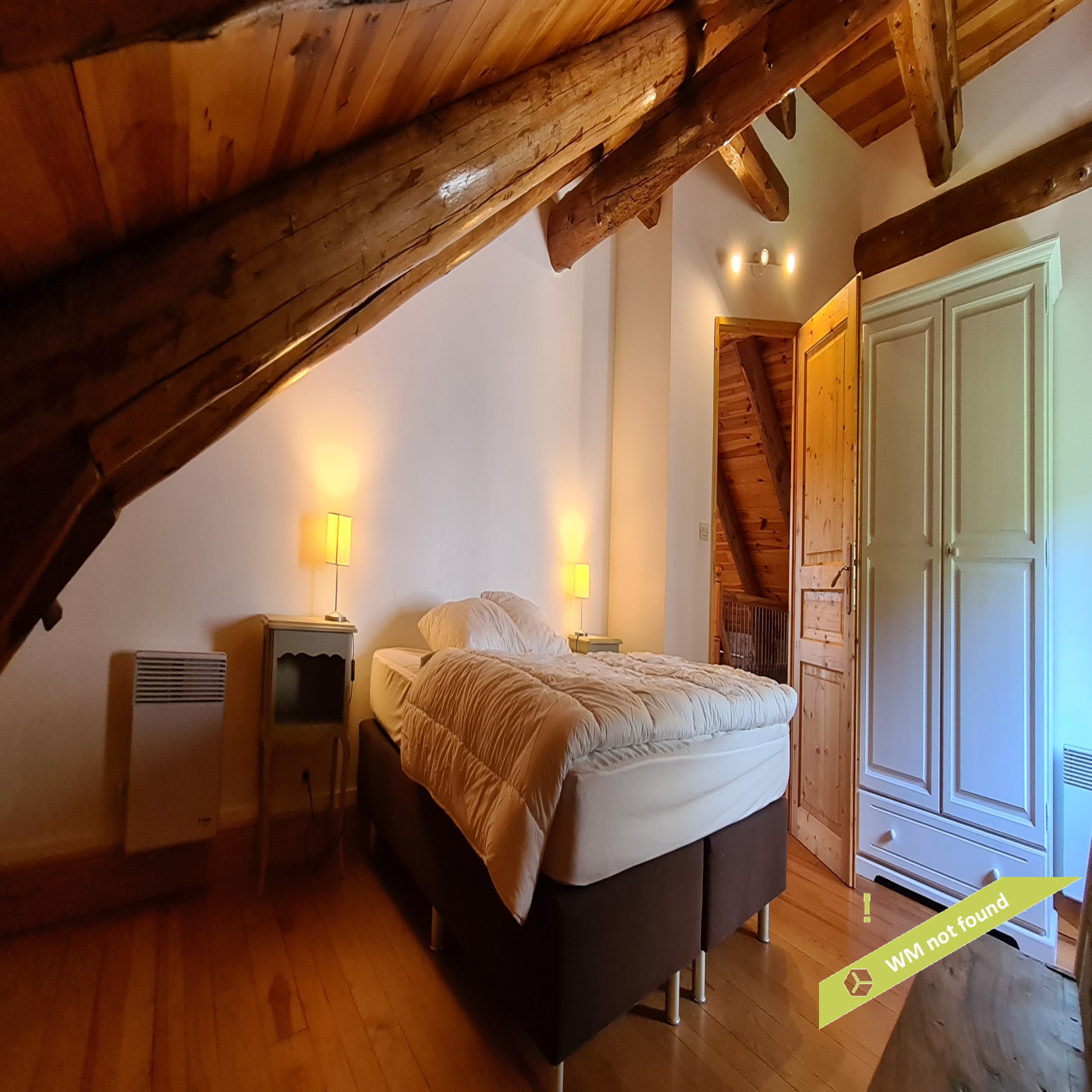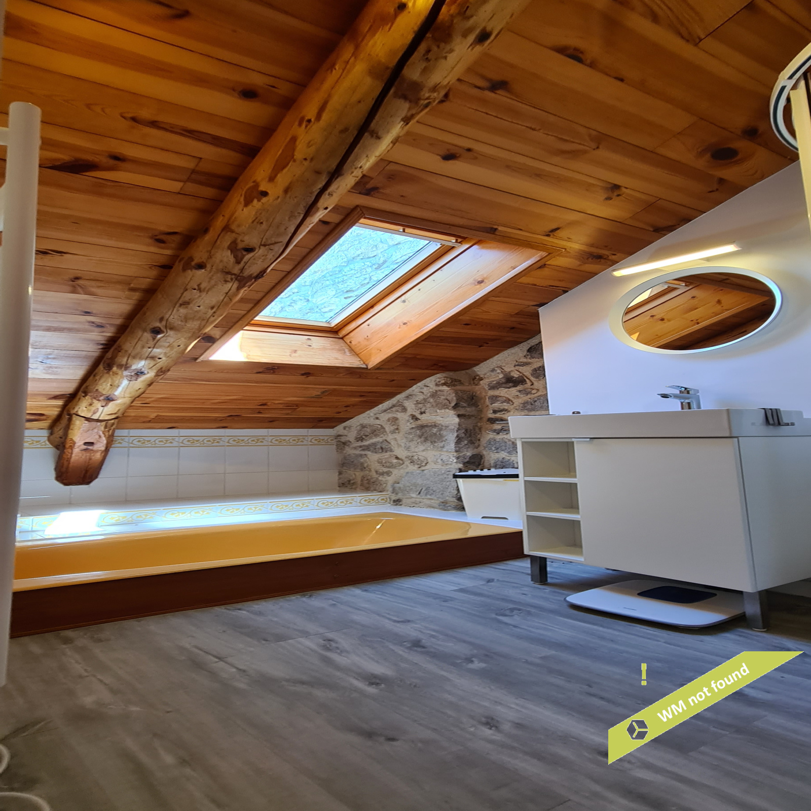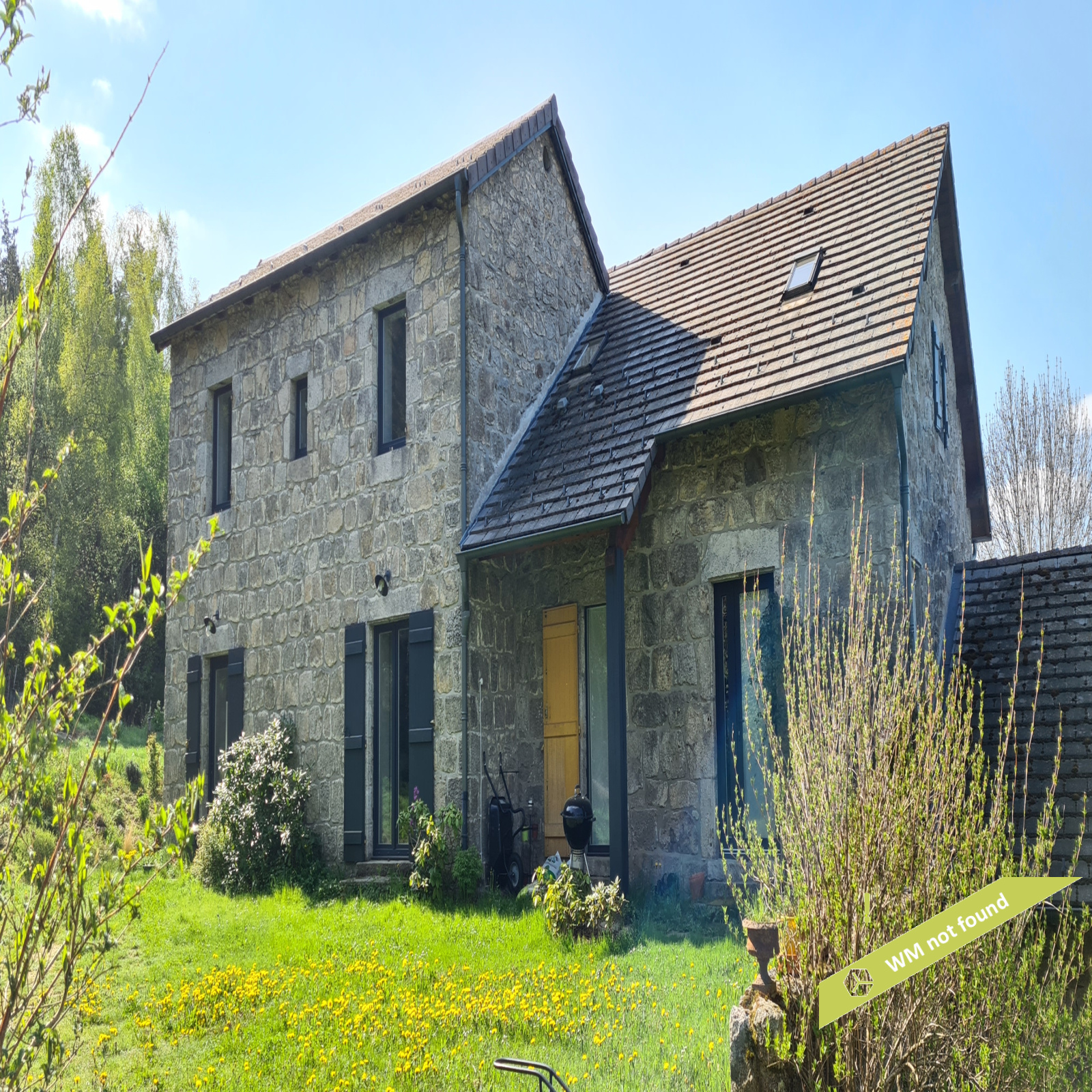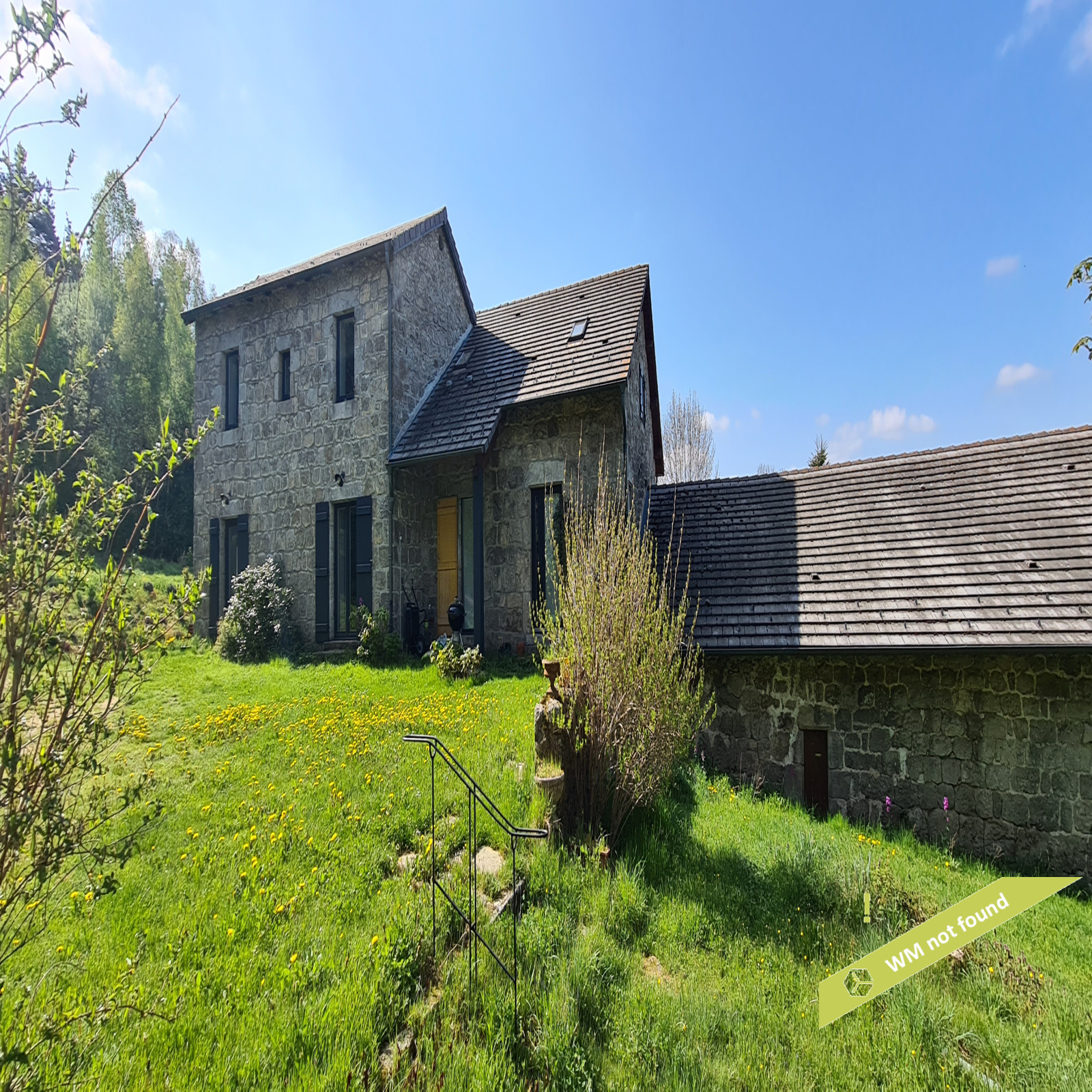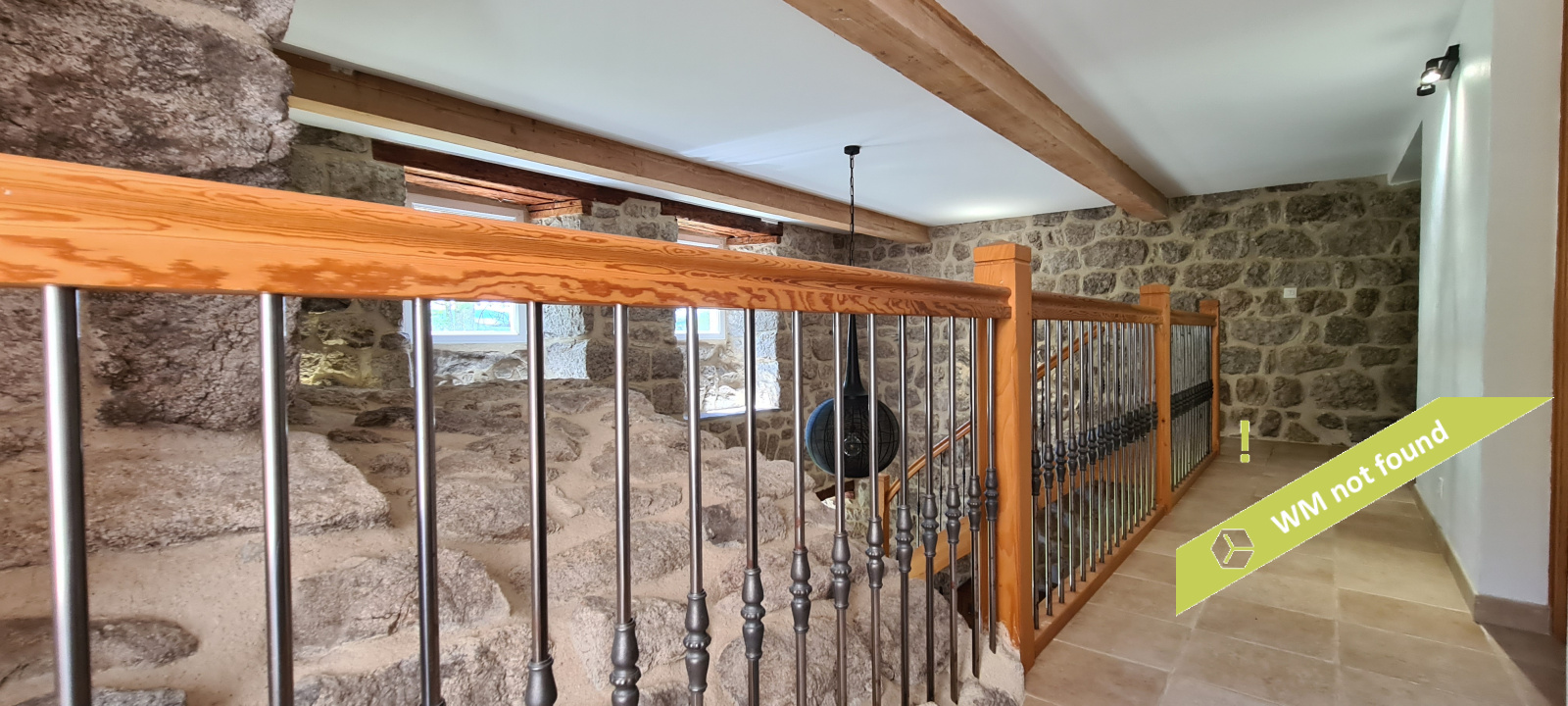 - La 2ème partie est accessible également depuis la salle-à-manger de la 1ère partie. On y trouve un vaste hall avec placards en bois massif (10,70 m²), un salon (38,47 m²), un petit bureau avec placards (3,37 m²). L'étage compte 2 chambres mansardées (11,13 m² et 12,20 m²), une salle de bains avec douche et baignoire et un wc. Quelques escaliers plus bas, on arrive sur une coursive (7,01 m²) permettant d'accéder à une chambre avec salle d'eau et wc (17,81 m²) et à une terrasse. Le rez-de-chaussée enfin accueille une cuisine ouverte sur la salle-à-manger (43,13 m²) avec son magnifique cantou, un cellier et un wc.