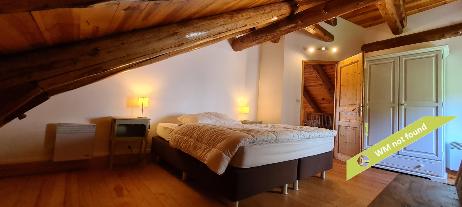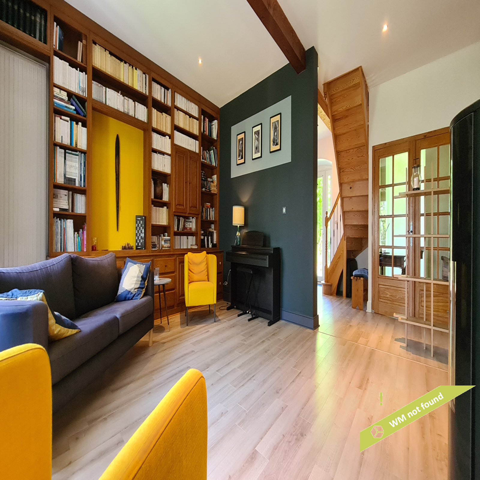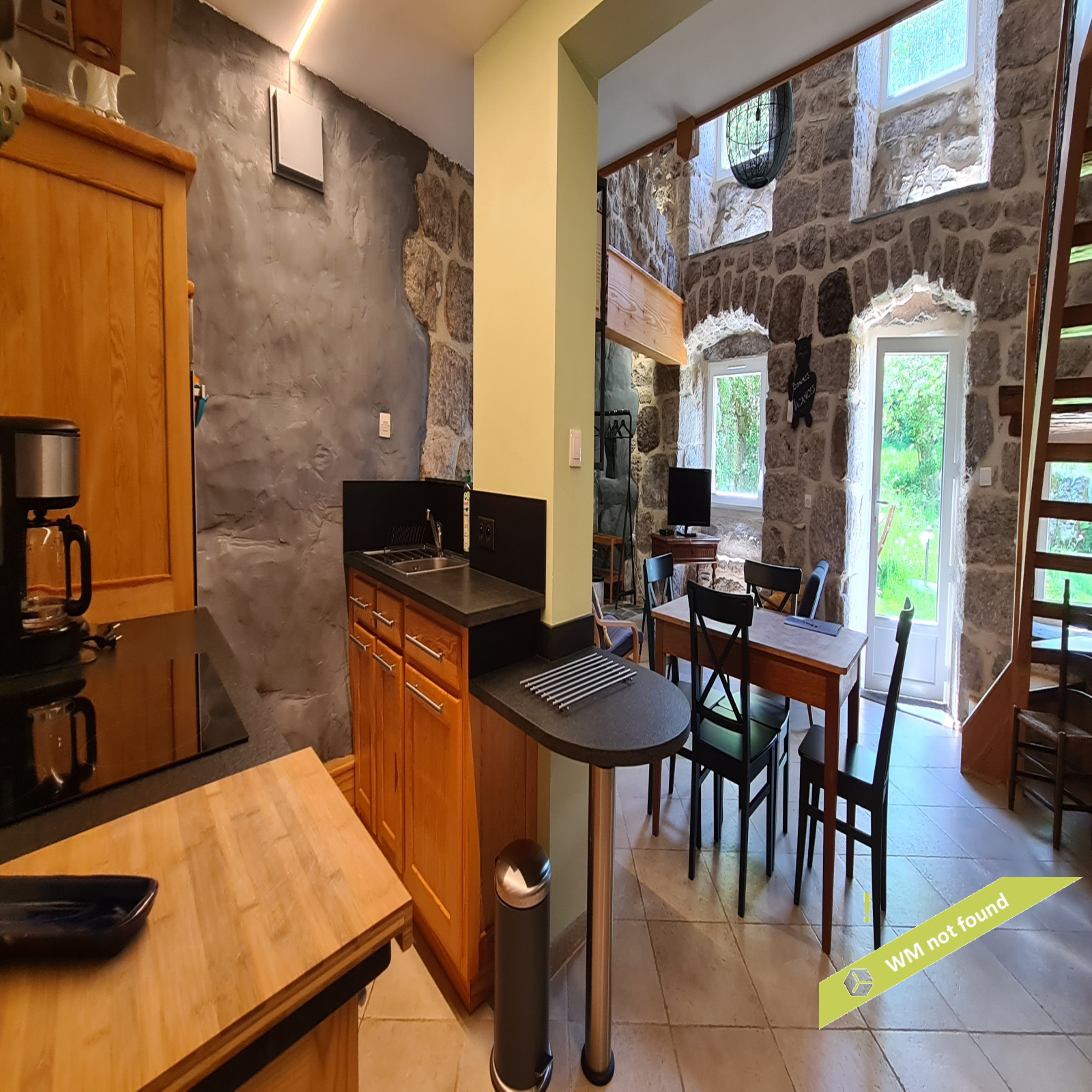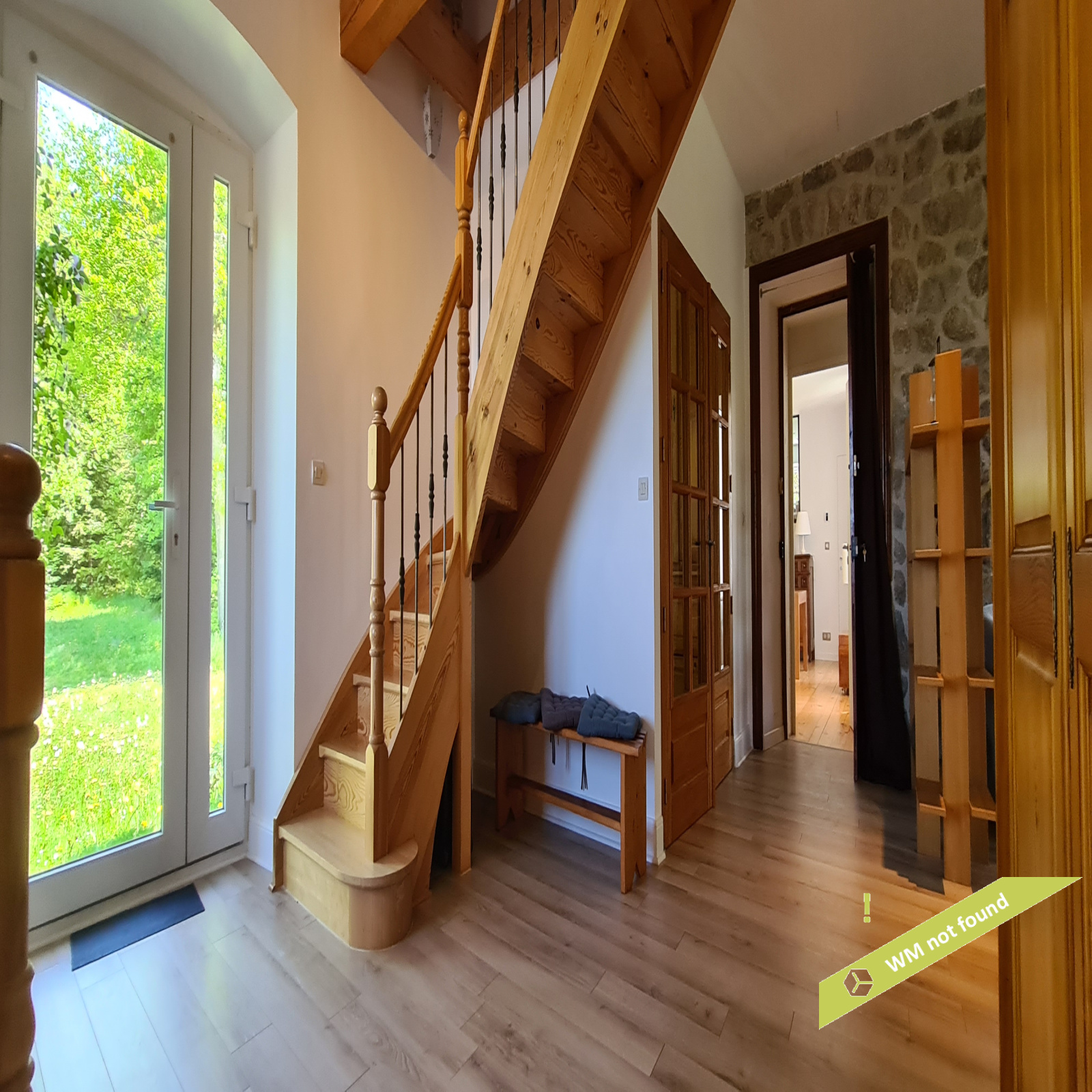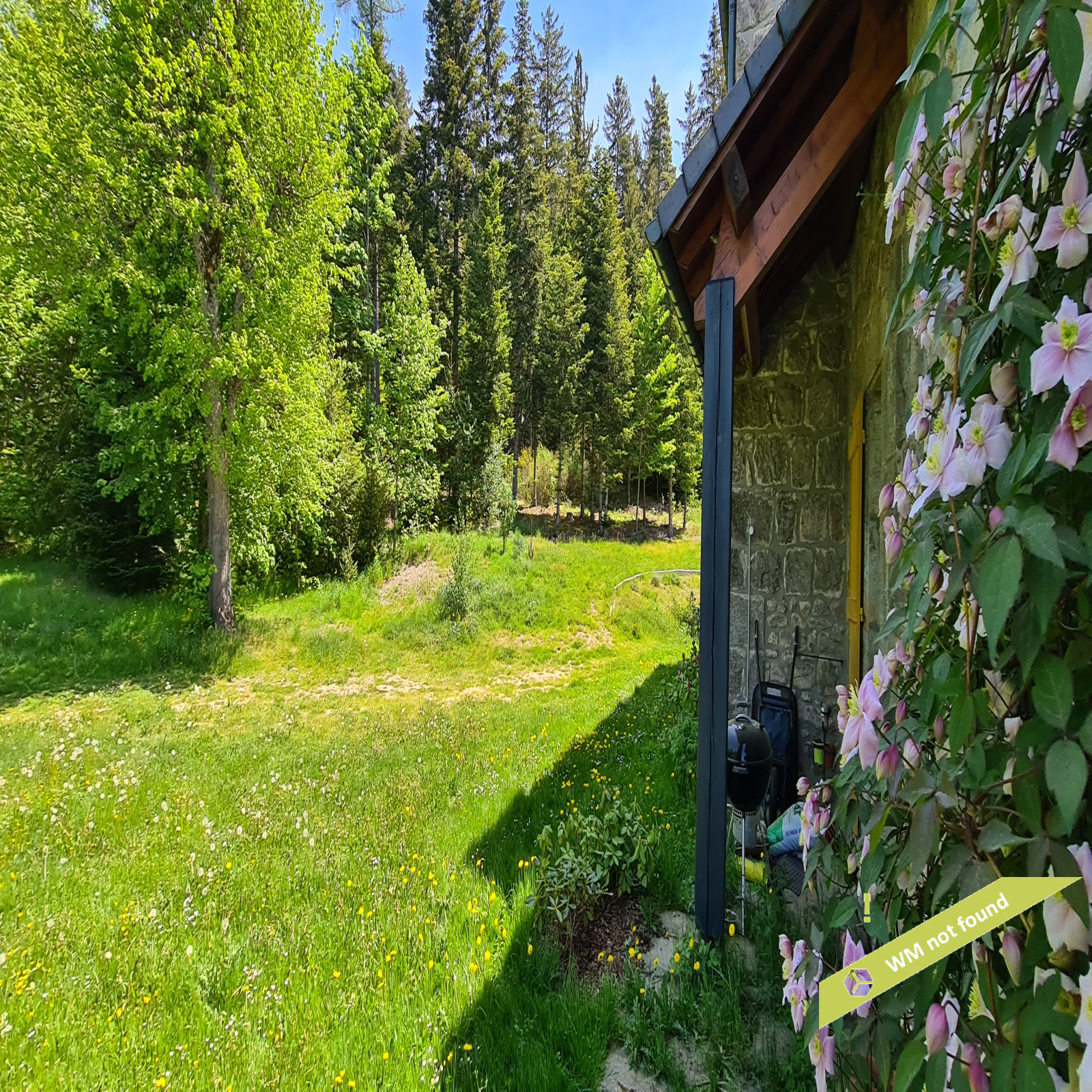 - La 2ème partie est accessible également depuis la salle-à-manger de la 1ère partie. On y trouve un vaste hall avec placards en bois massif (10,70 m²), un salon (38,47 m²), un petit bureau avec placards (3,37 m²). L'étage compte 2 chambres mansardées (11,13 m² et 12,20 m²), une salle de bains avec douche et baignoire et un wc. Quelques escaliers plus bas, on arrive sur une coursive (7,01 m²) permettant d'accéder à une chambre avec salle d'eau et wc (17,81 m²) et à une terrasse. Le rez-de-chaussée enfin accueille une cuisine ouverte sur la salle-à-manger (43,13 m²) avec son magnifique cantou, un cellier et un wc.