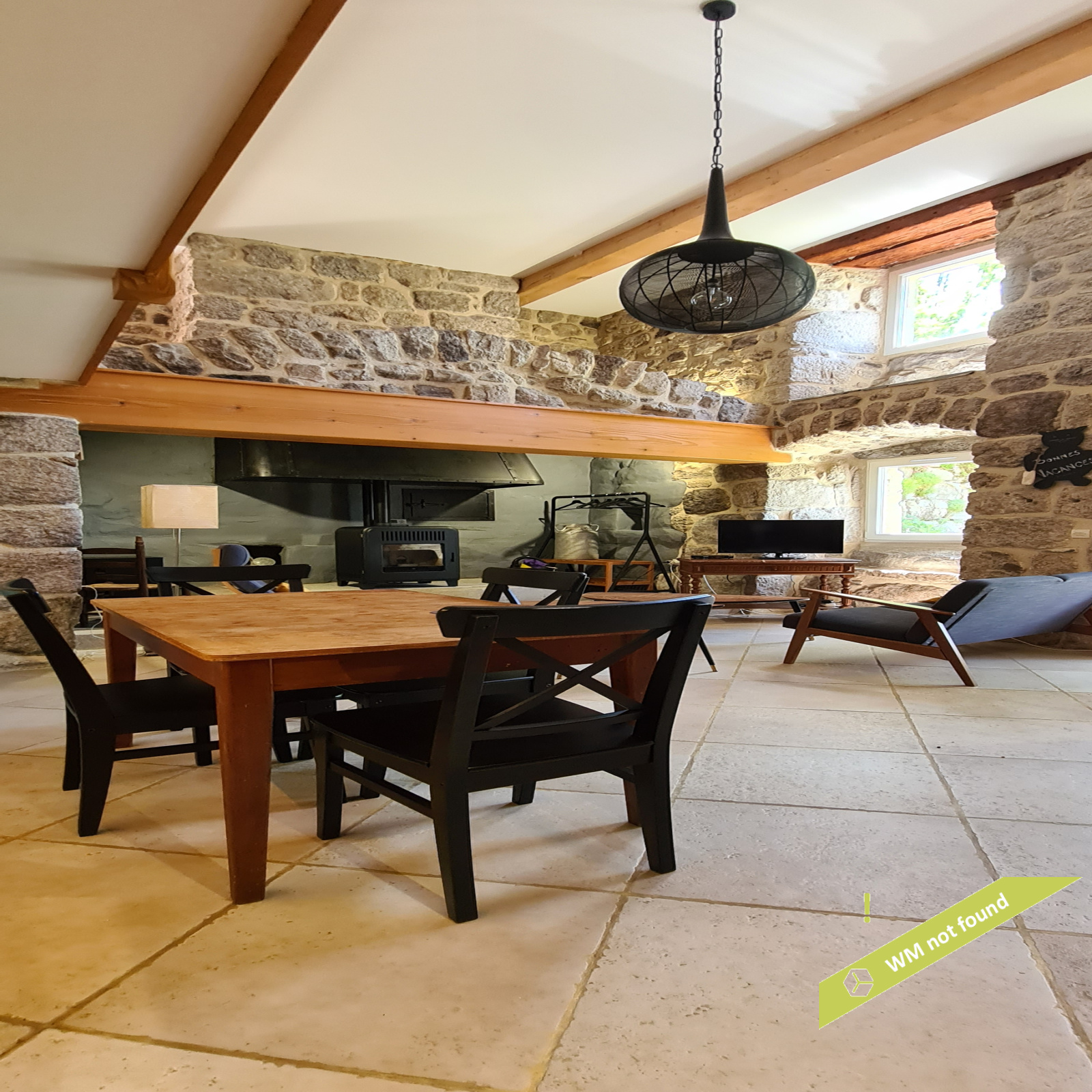 L'ancienne grange offre une surface de 175,94 m², avec sa charpente bateau d'origine.