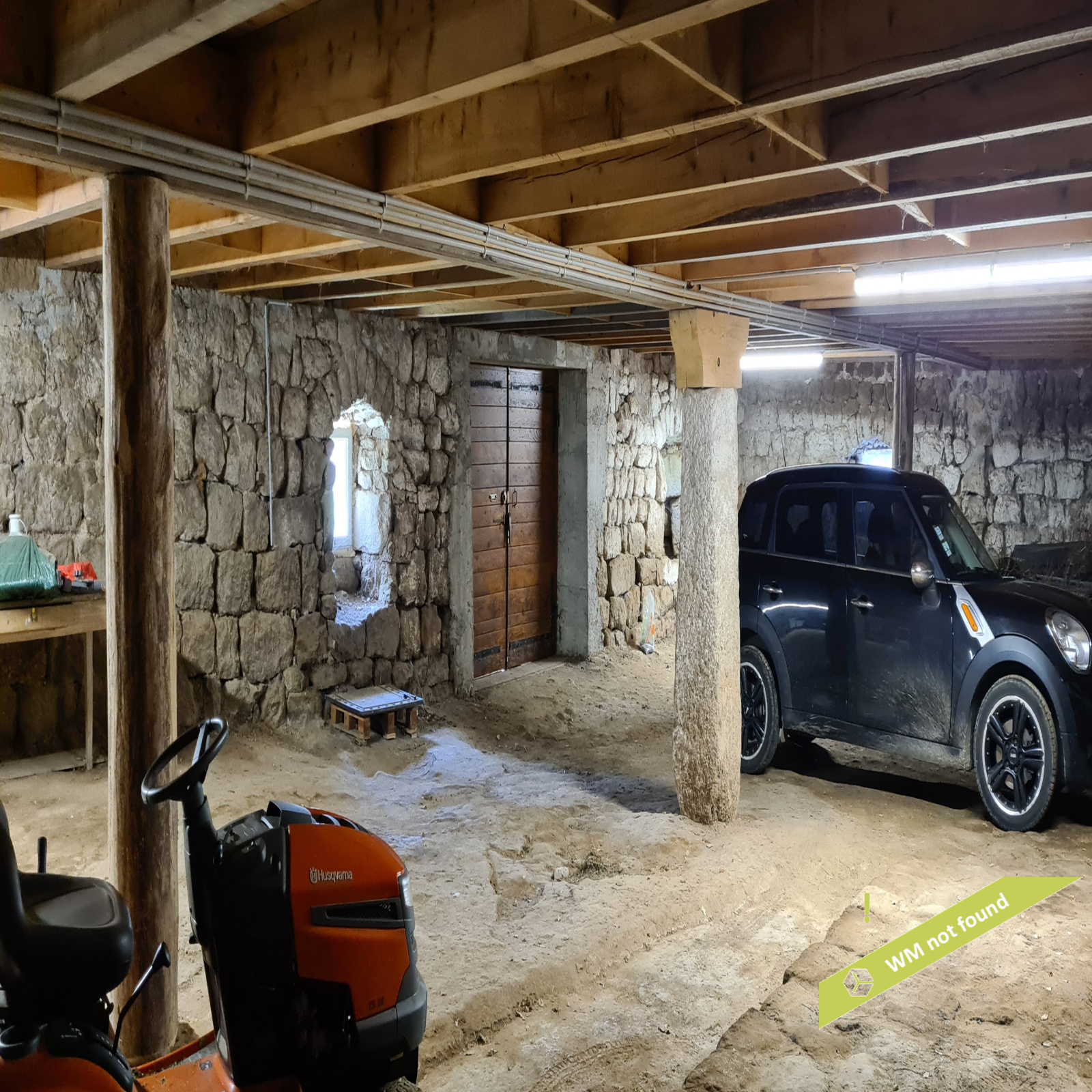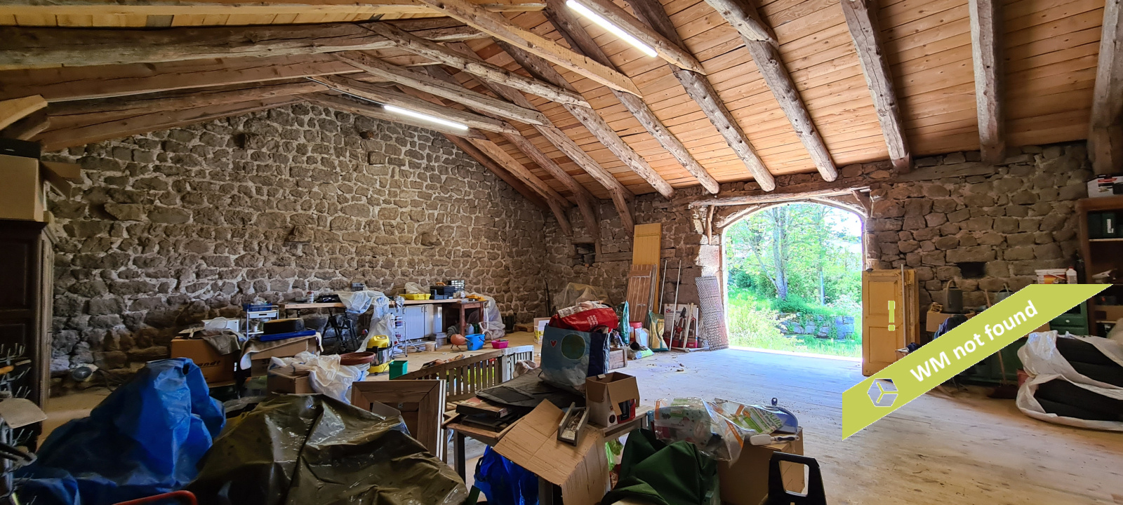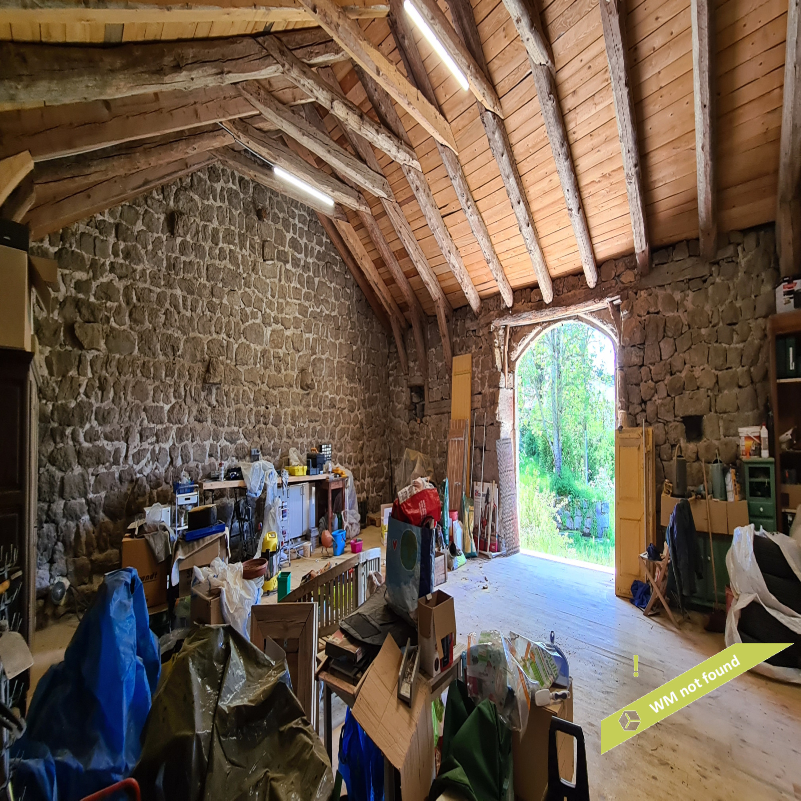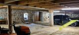 En-dessous de la grange, l'ancienne écurie : 170,27 m², avec deux portes donnant sur le jardin.