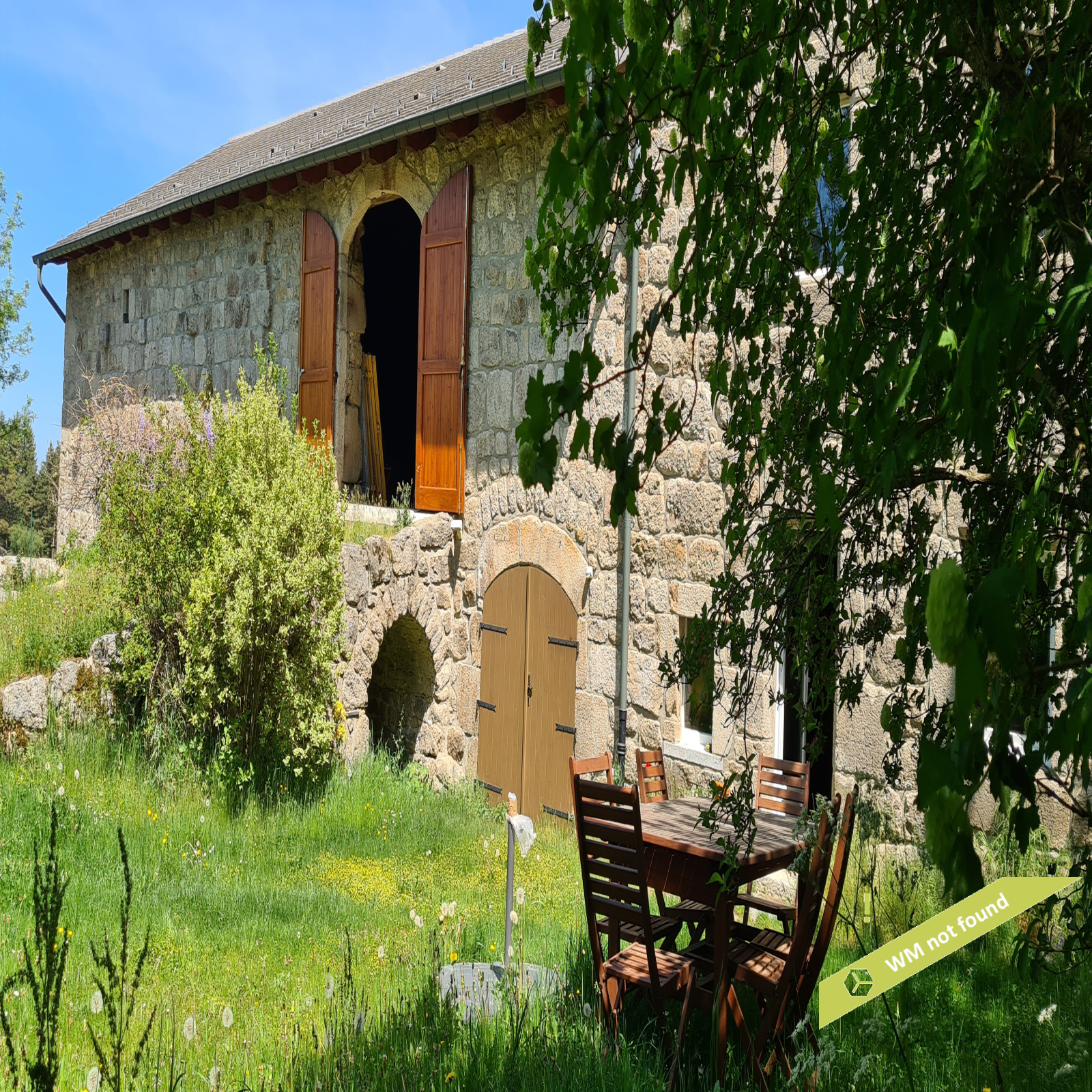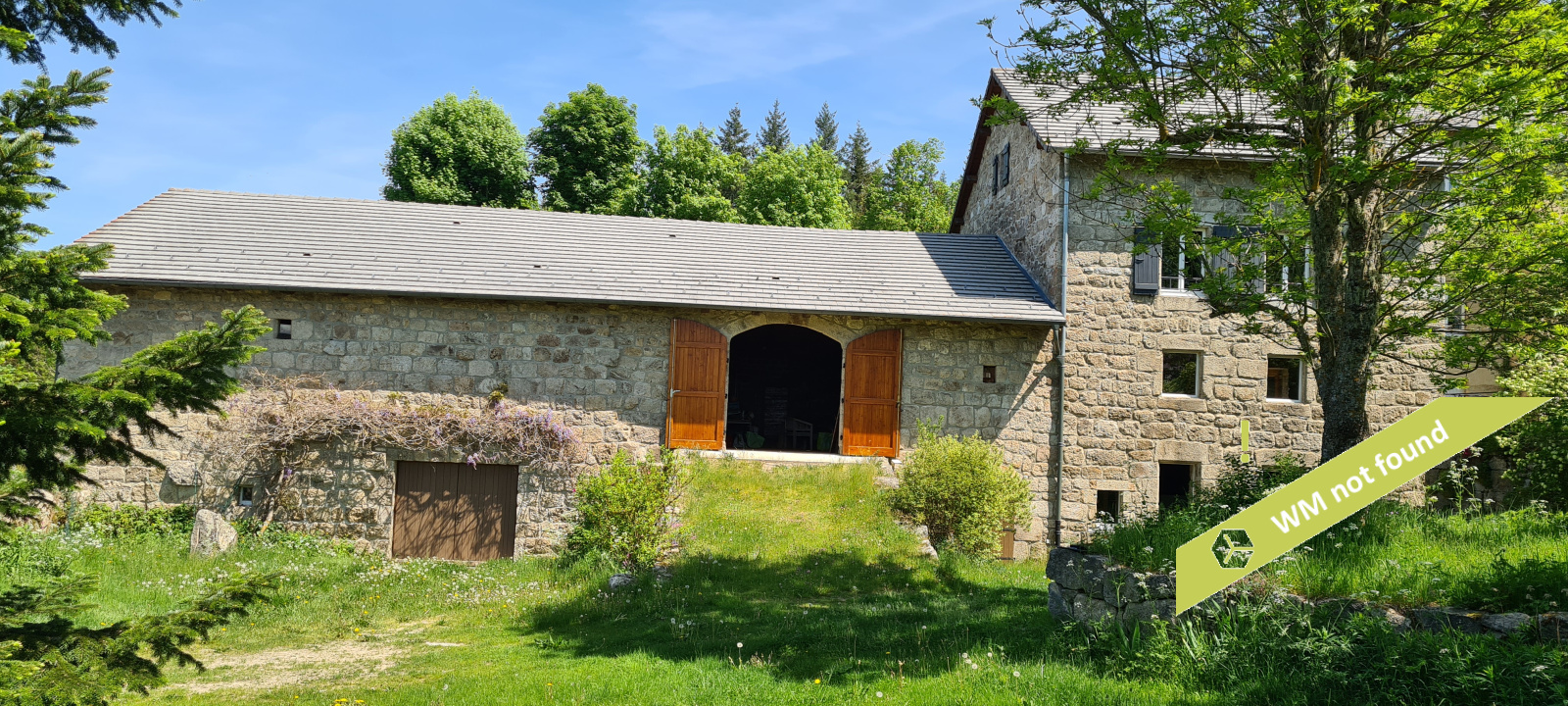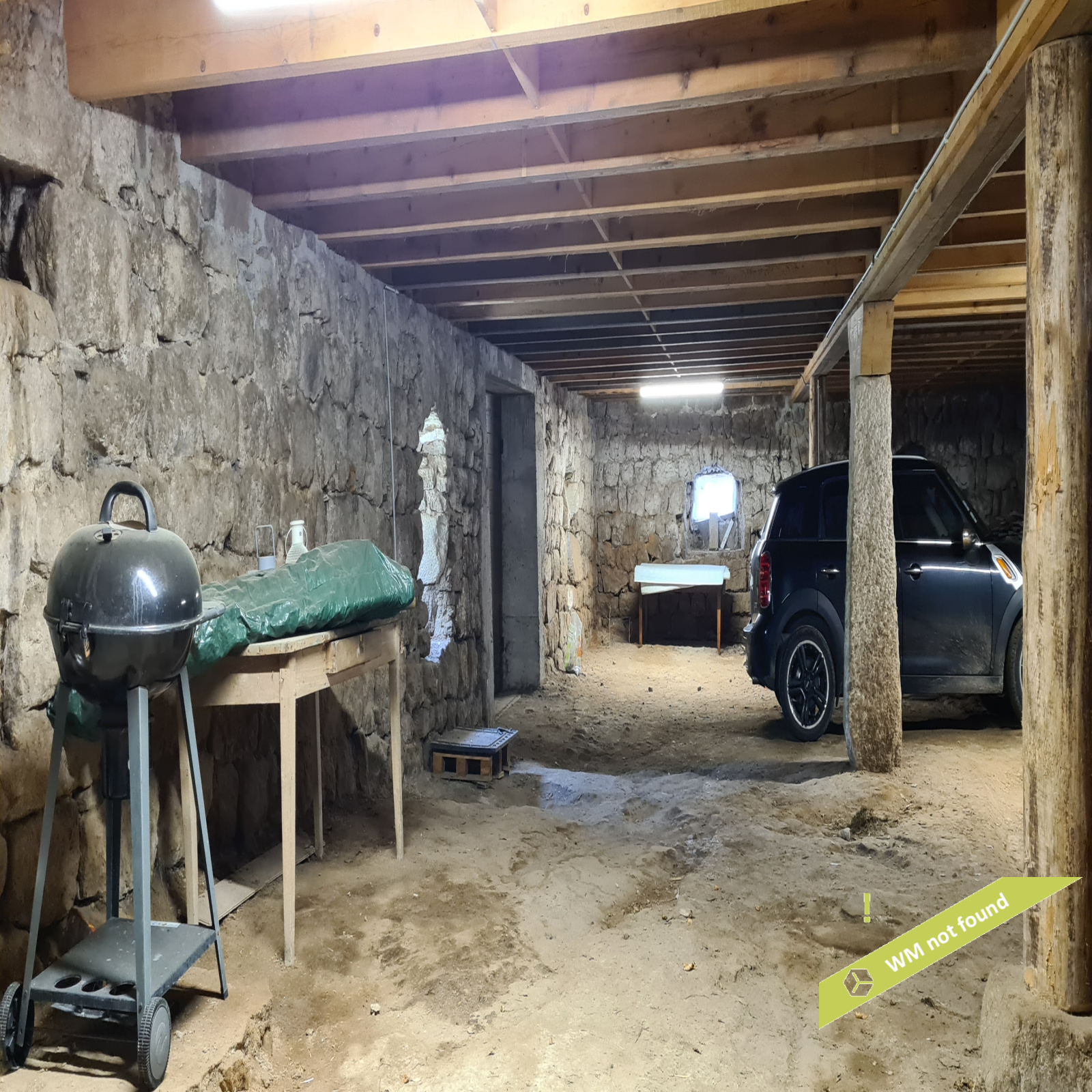 En-dessous de la grange, l'ancienne écurie : 170,27 m², avec deux portes donnant sur le jardin.
