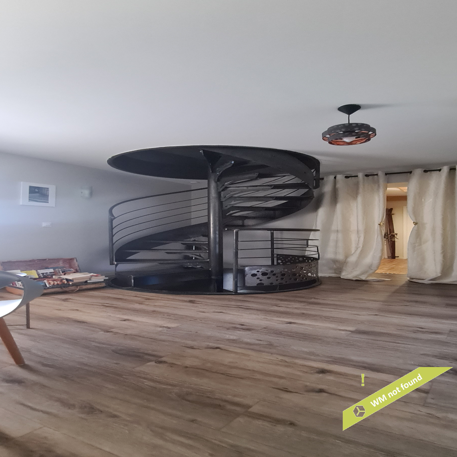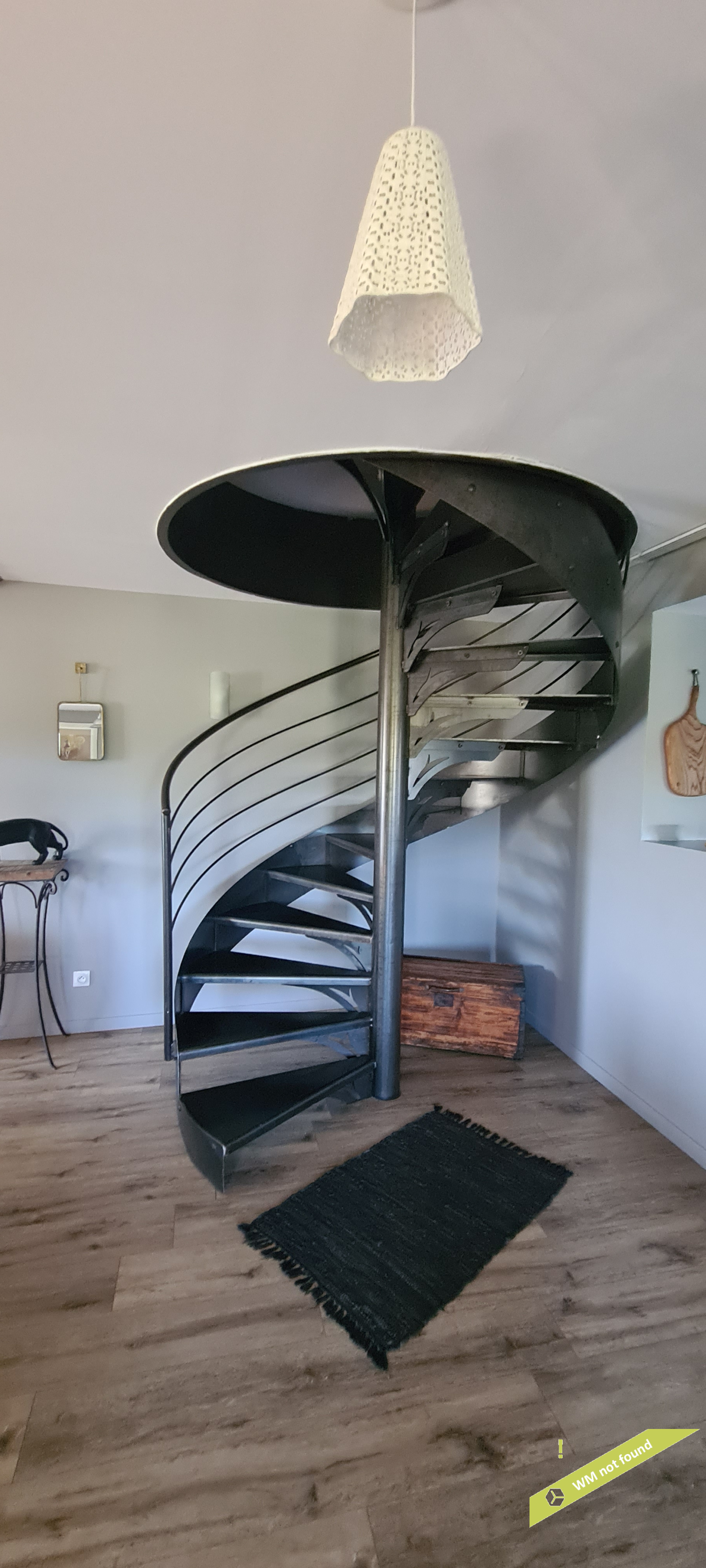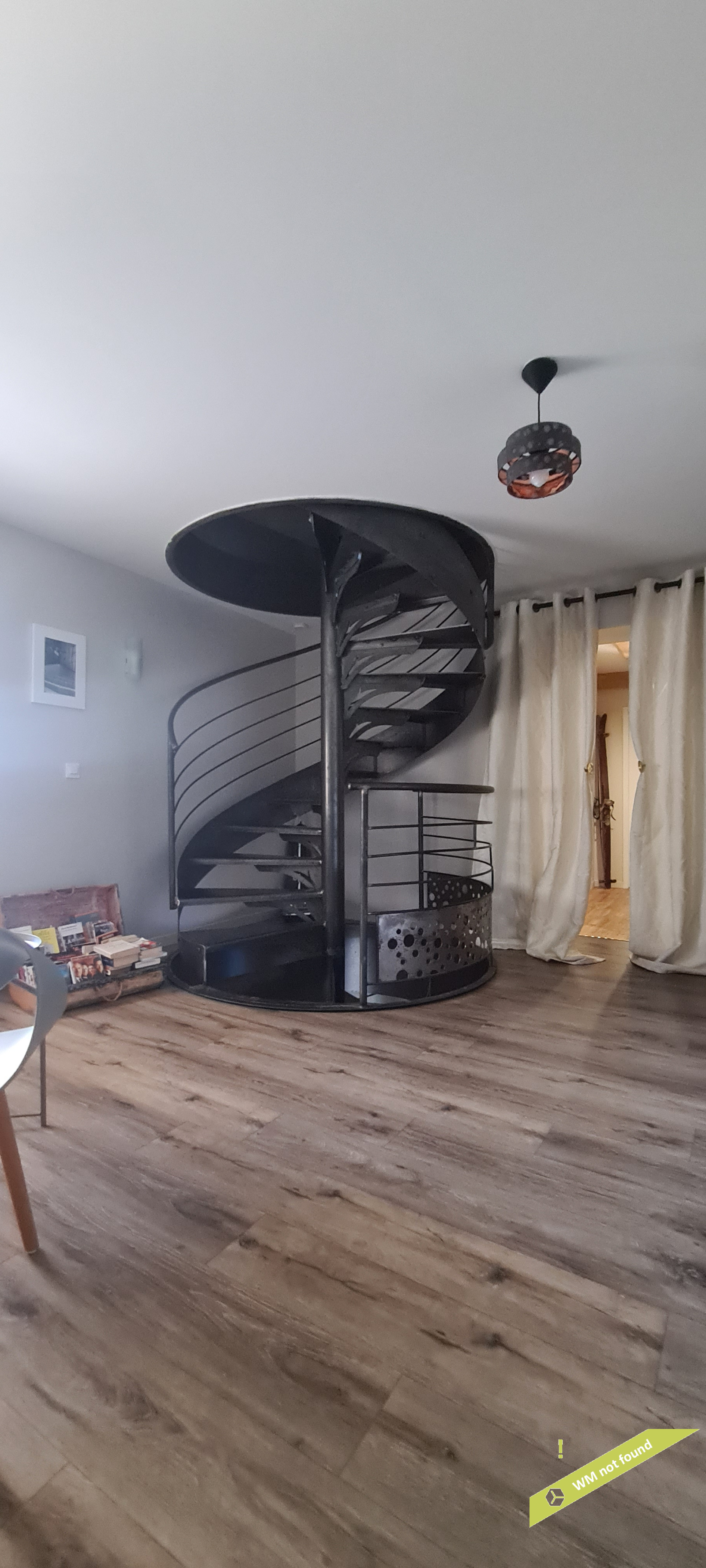 Un bel escalier en fer hélicoïdal conduit aux étages supérieurs. Au 1er étage, un dégagement (10,85 m²) ouvre sur deux chambres (13,54 m² et 17,36 m²), avec leur salle d'eau (et wc) privative (7,45 m² et 7,34 m²). Un autre dégagement (7,87 m²) emmène vers une pièce détente équipée d'un sauna ((13,76 m²) et un local (5,75 m²). Le 2ème étage accueille un dégagement (5 m²), 2 chambres mansardées (14 et 14,5 m²) et une salle d'eau avec wc (5 m²).