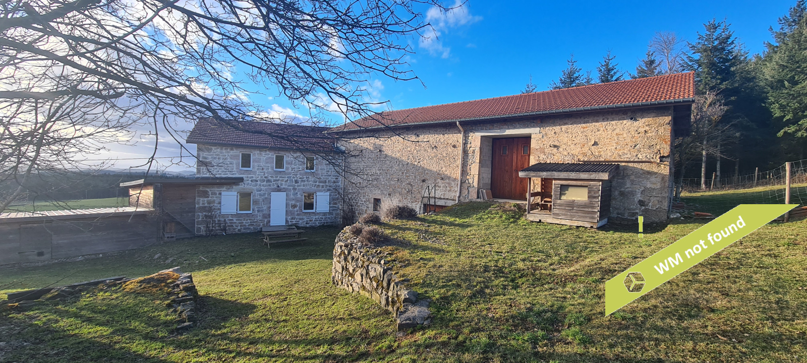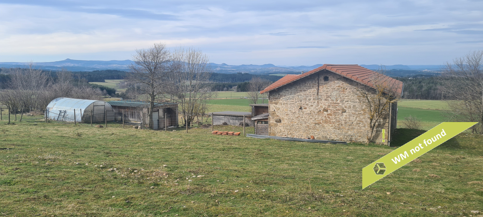 Cet ancien corps de ferme en pierres est idéalement située en bout de chemin et jouit d'une magnifique vue dégagée sur la campagne environnante et les montagnes au loin.(Mézenc, Mont Gerbier de Jonc, Monts du Forez).