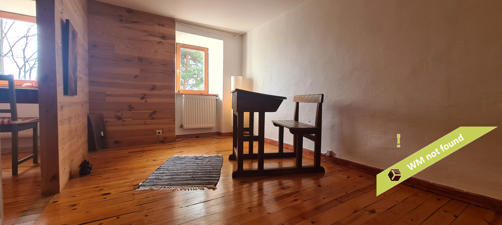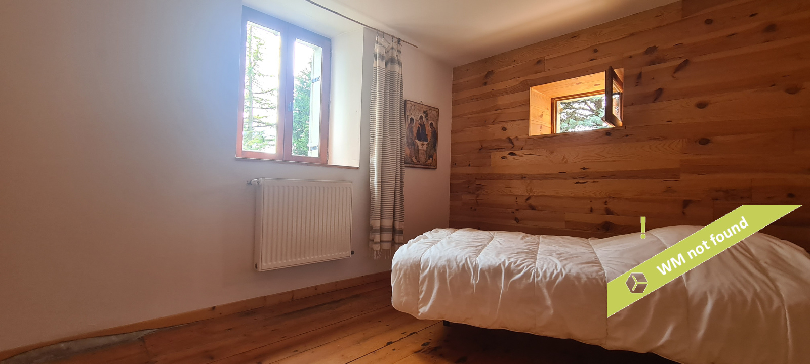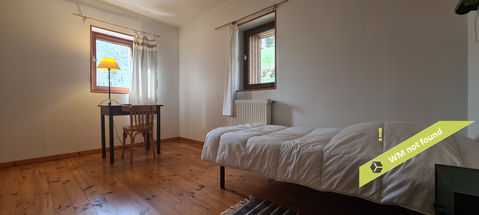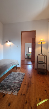 - Une première partie avec hall, WC, deux chambres, une pièce de passage et un dégagement,