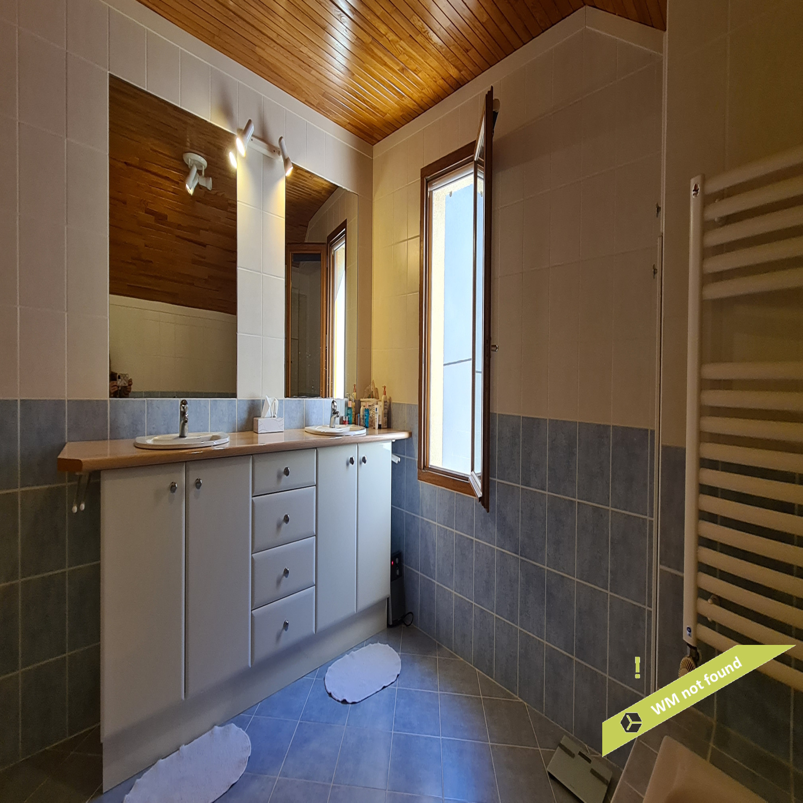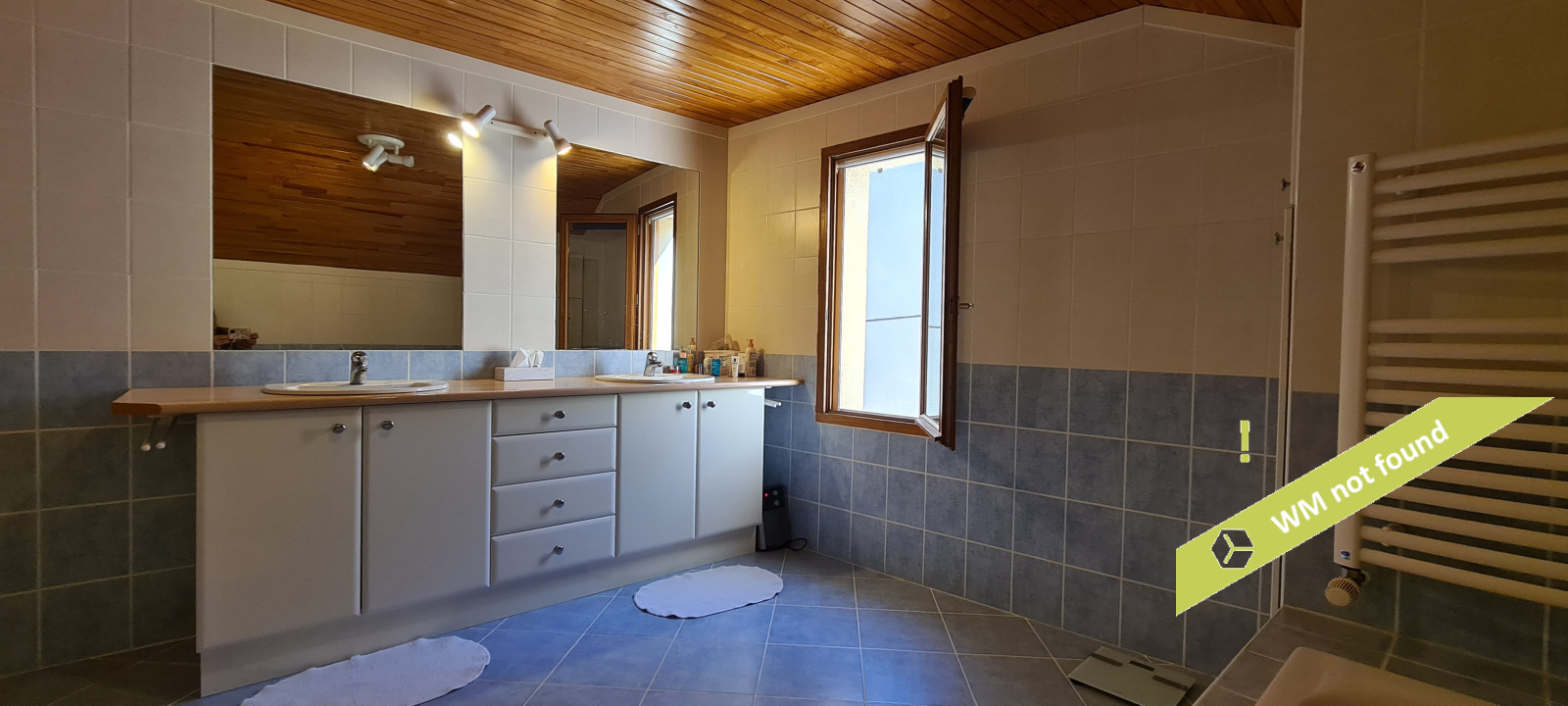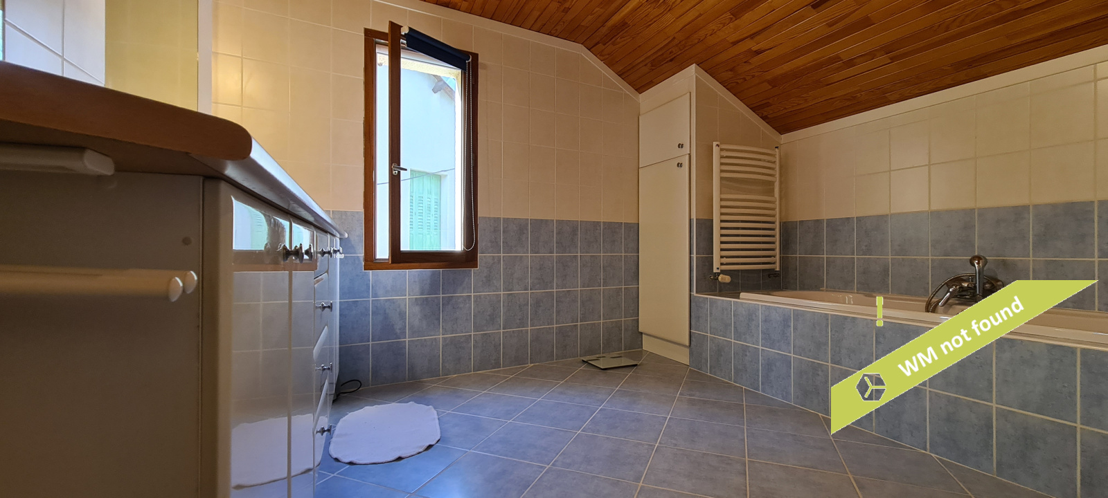 Au 1er étage, on trouve 3 chambres avec placards (12, 36 m², 15,86 m² et 16,76 m²), une salle de bains (baignoire, douche et meuble double vasque) de 12,52 m² et un wc.