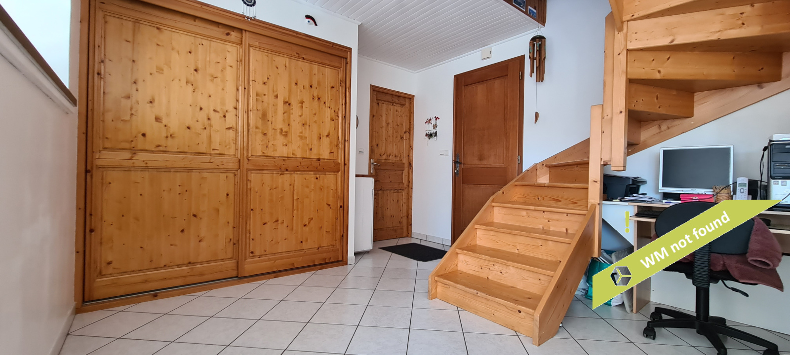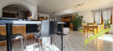 Le 1er niveau accueille un hall d'entrée avec son placard double, ouvrant sur le salon/salle-à-manger (39,43 m²) et la cuisine américaine (12,88 m²). Cet espace est très lumineux : 2 baies vitrées permettent d'accéder à une terrasse, jouissant d'une vue dégagée sur une partie du village et la campagne alentour.