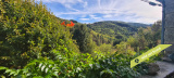 Elle profite d'une vue dégagée sur la campagne environnante, essentiellement des bois. Une partie du terrain est aménagé en terrasses.