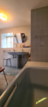 - le rez-de-chaussée est composé d'une pièce avec son ancien cantou (16,69 m²) d'un hall, d'une cuisine (16,11 m²), d'un salon (22,93 m²), d'une salle de bain, d'un wc et d'une cave. Un atelier de 27,83 m² complète ce niveau.