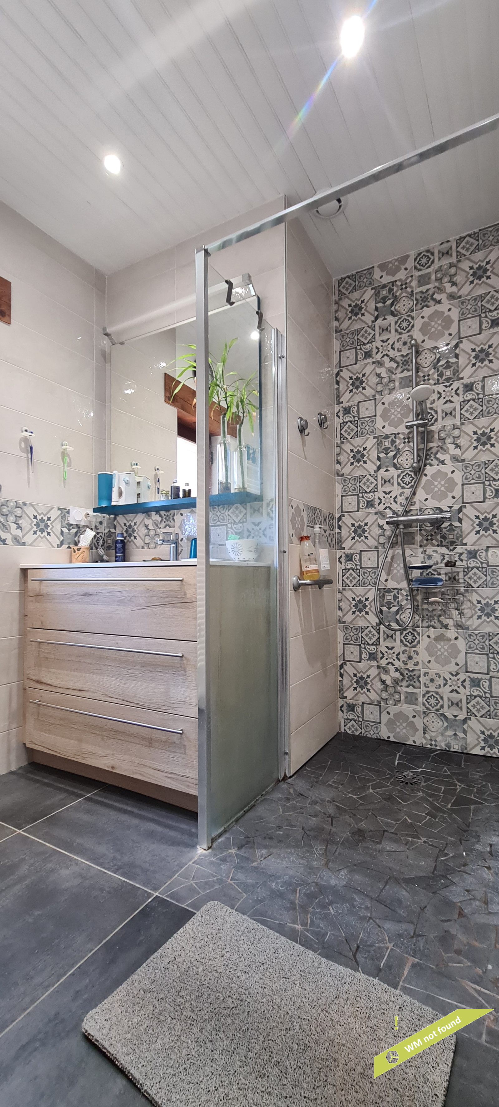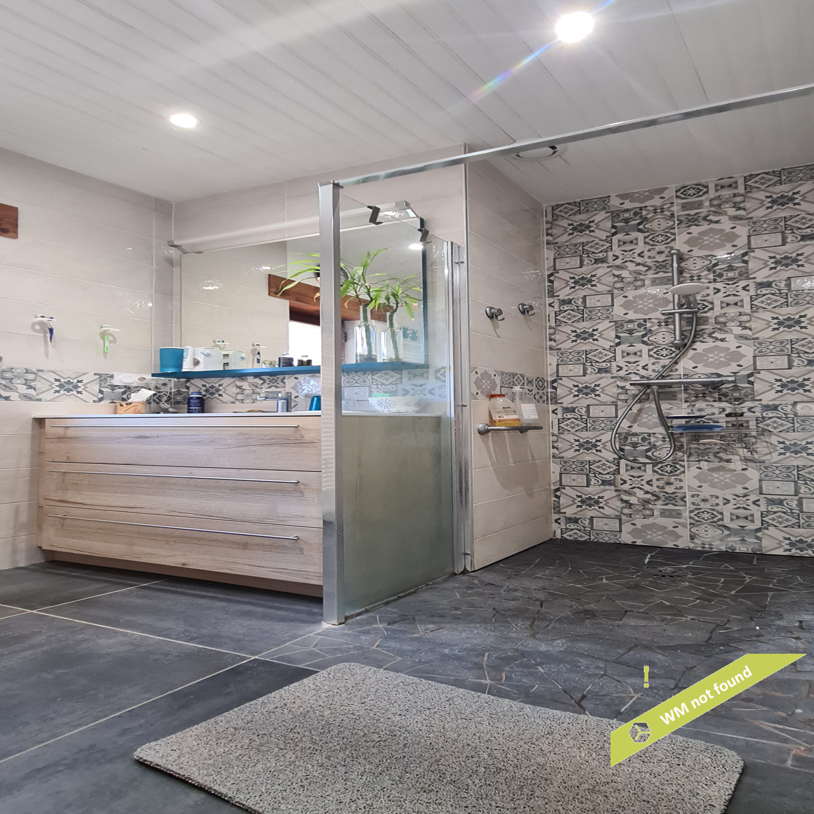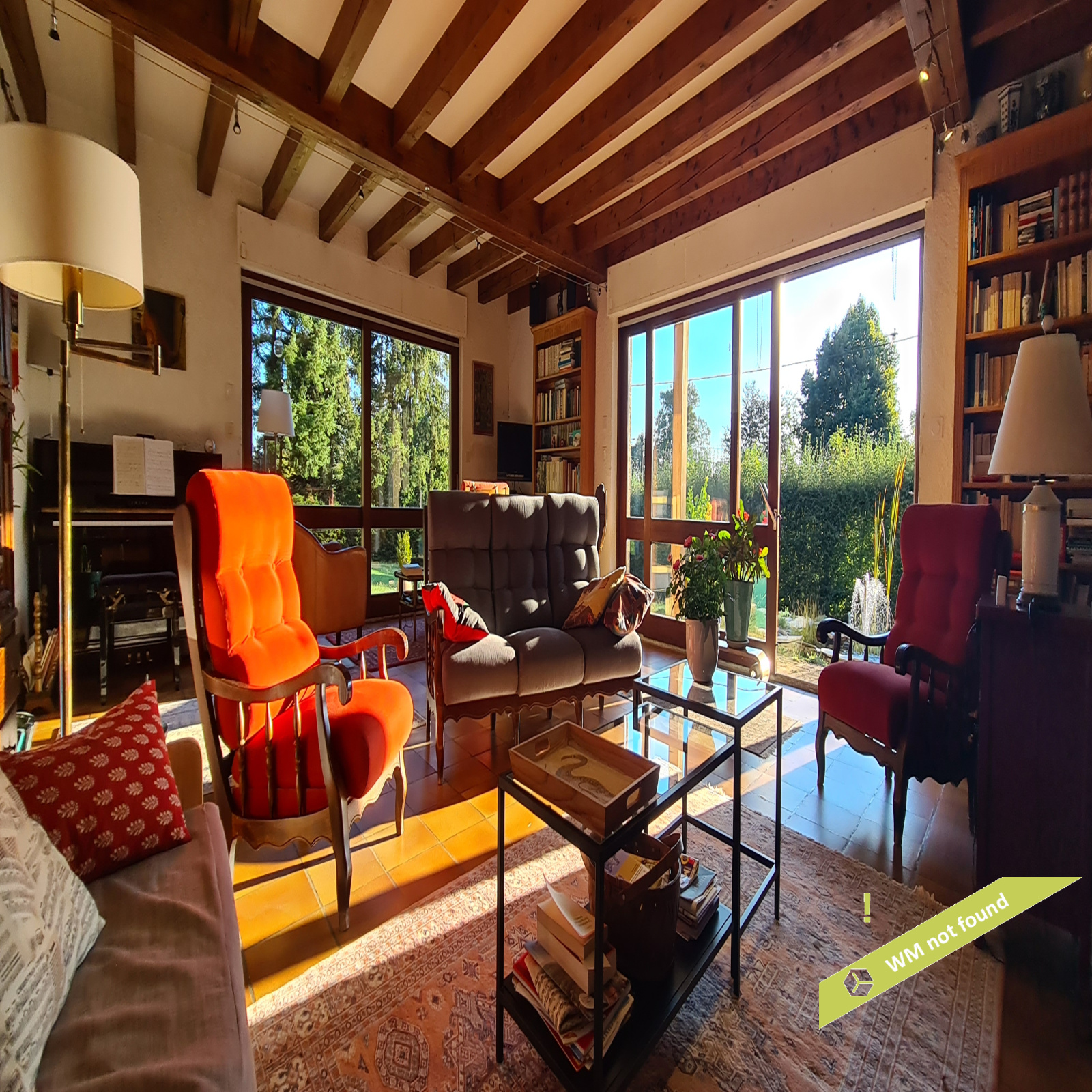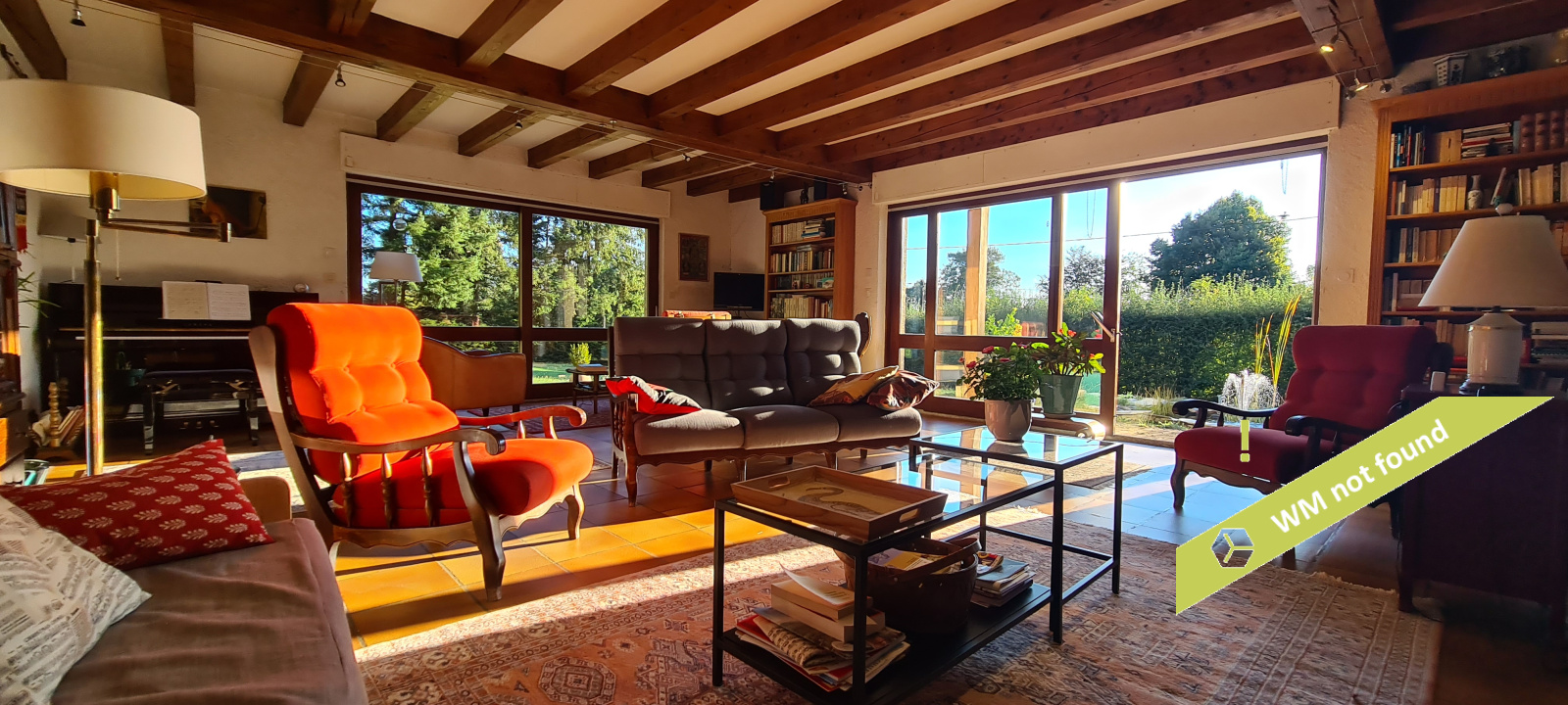 - le rez-de-chaussée est composé d'un hall d'entrée desservant un salon (51,11 m²) agrémenté de larges baies vitrées donnant sur le jardin, d'une cuisine/salle-à-manger ouverte (25,87 m²), d'un cellier, d'un bureau (13,93 m²), d'une chambre (14,21 m²), d'une salle d'eau avec wd (9,82 m²) et d'un wc indépendant.