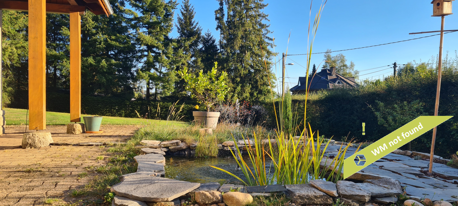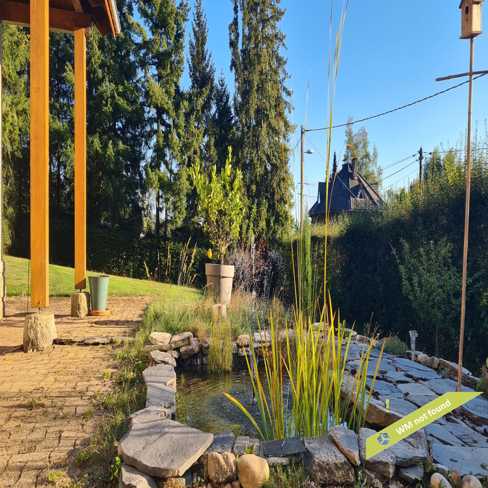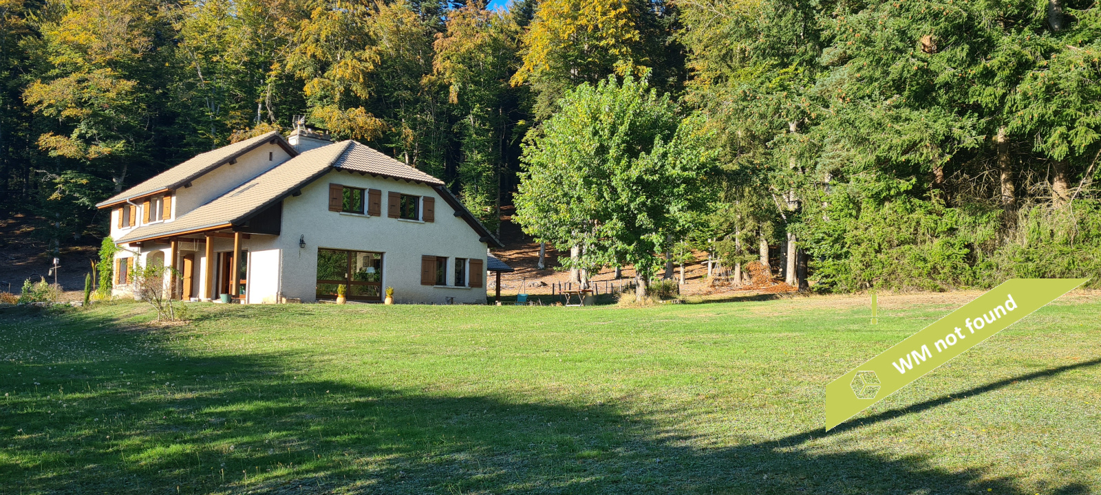 Elle est édifiée sur une parcelle de 6810 m², composée d'un espace plat en herbe tout autour de la maison et d'un espace boisé.
