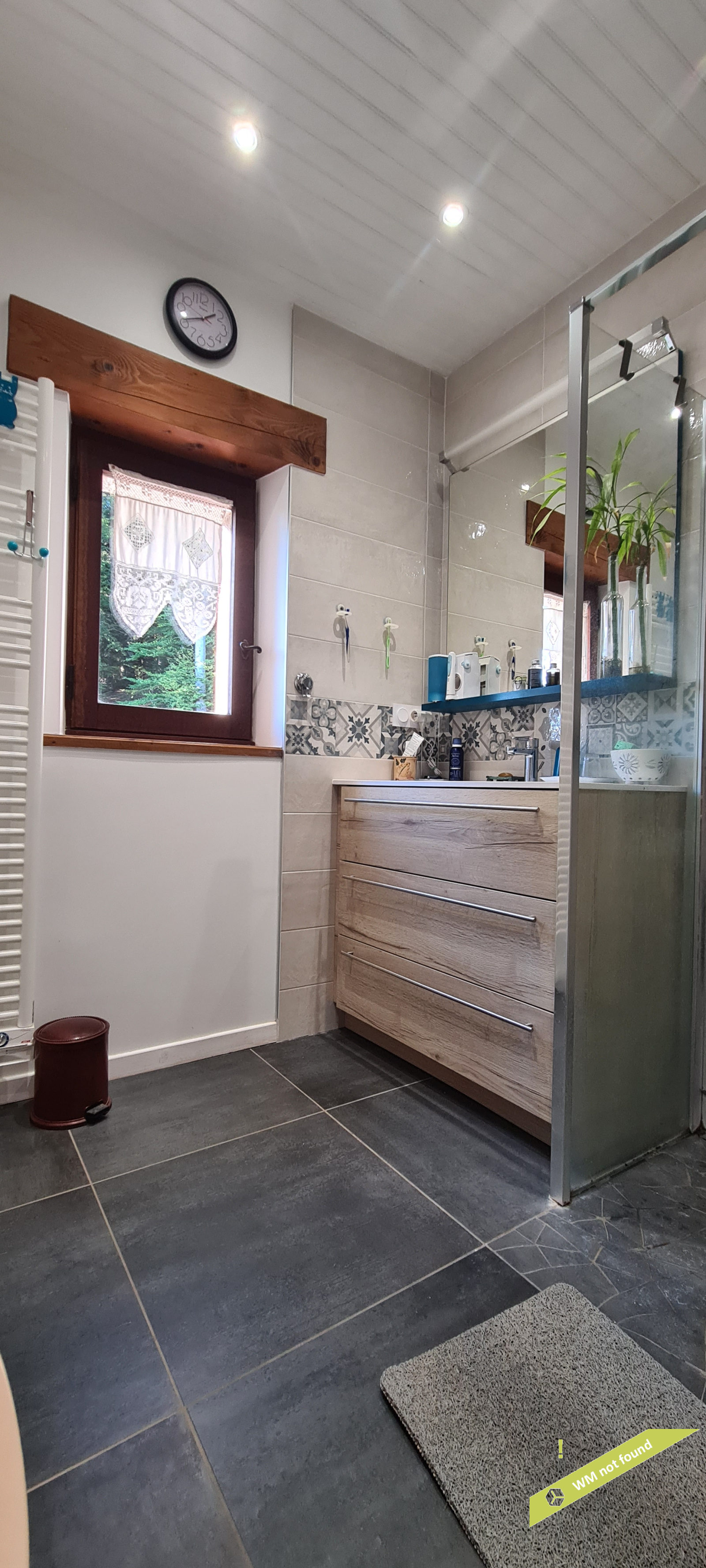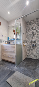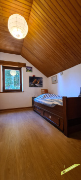 - le 1er étage accueille 4 chambres dont 2 mansardées (12,83 m², 14,10 m², 10,42 m² et 12,96 m²), une pièce mansardée (8,62 m²), un espace très mansardé à usage de salle de jeux pour 9m² habitable environ, une salle d'eau (6,08 m²) et un wc.
