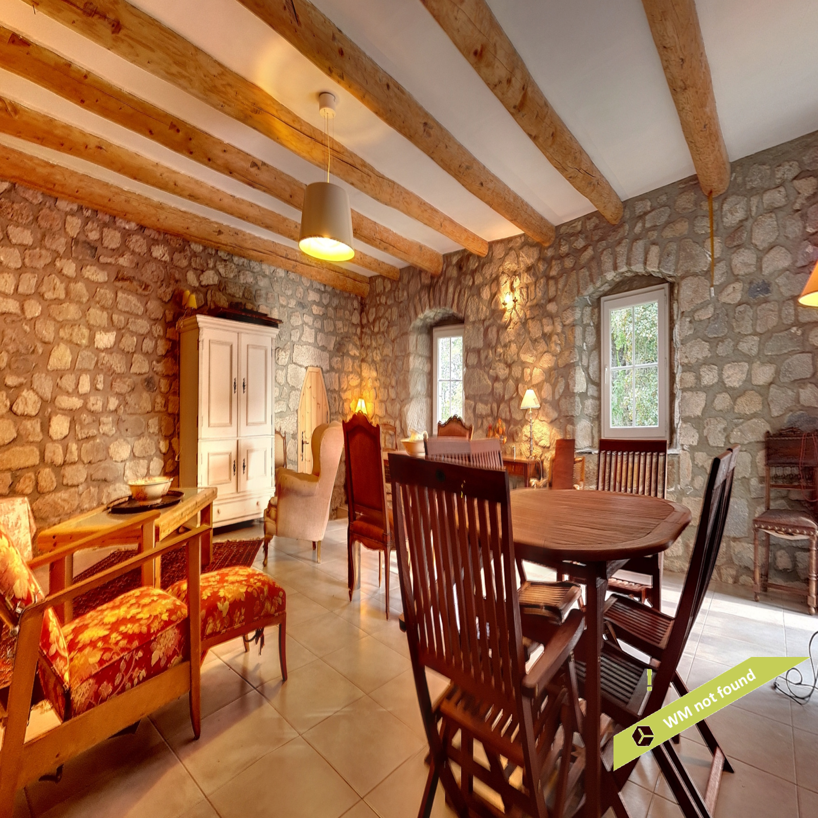 - Dépendances : écurie (119 m2) et grange (120 m2), sur dalle béton, et charpente restaurée dans le respect de la tradition locale