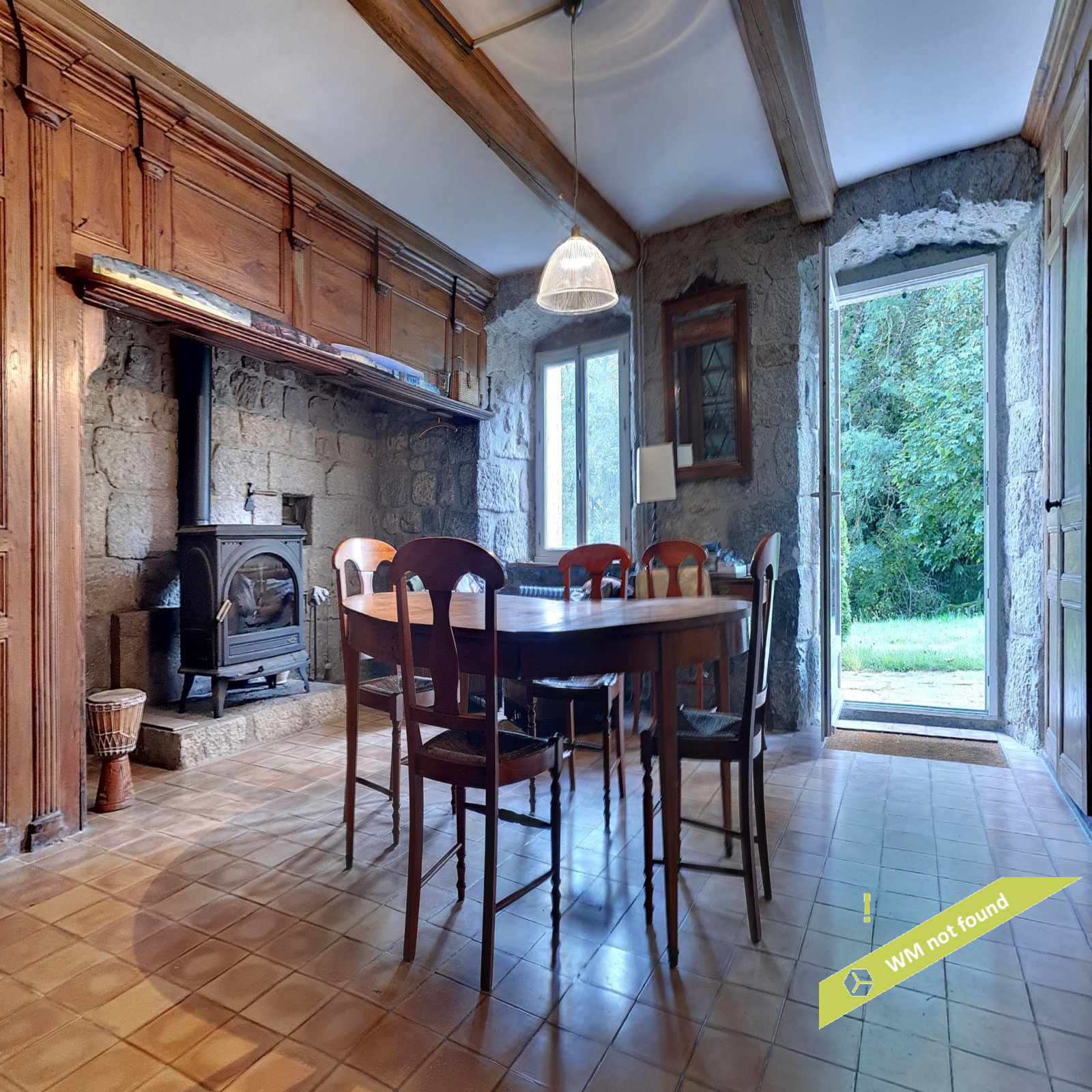 - Au rez-de-chaussée : cuisine (8,97 m2), salle-à-manger (25,43 m2) avec ses particularités locales d'origine (cour et cantou), salon ouvrant sur le jardin (49,85 m2), buanderie, wc, hall.