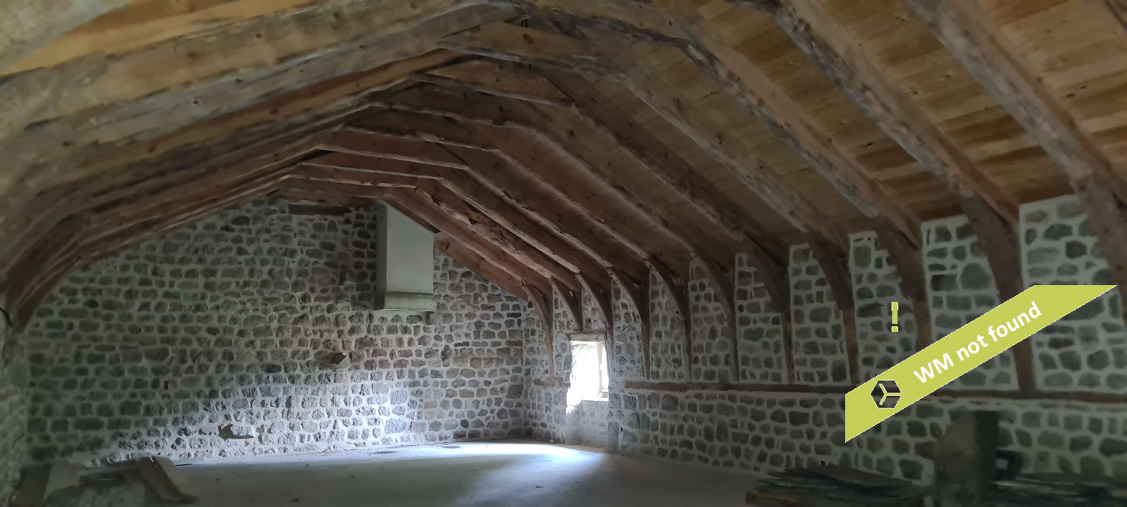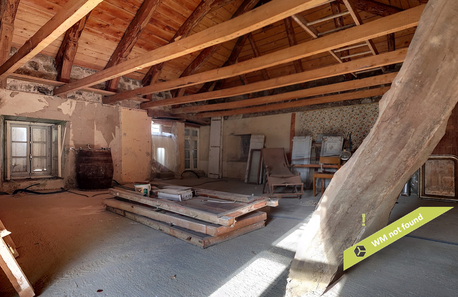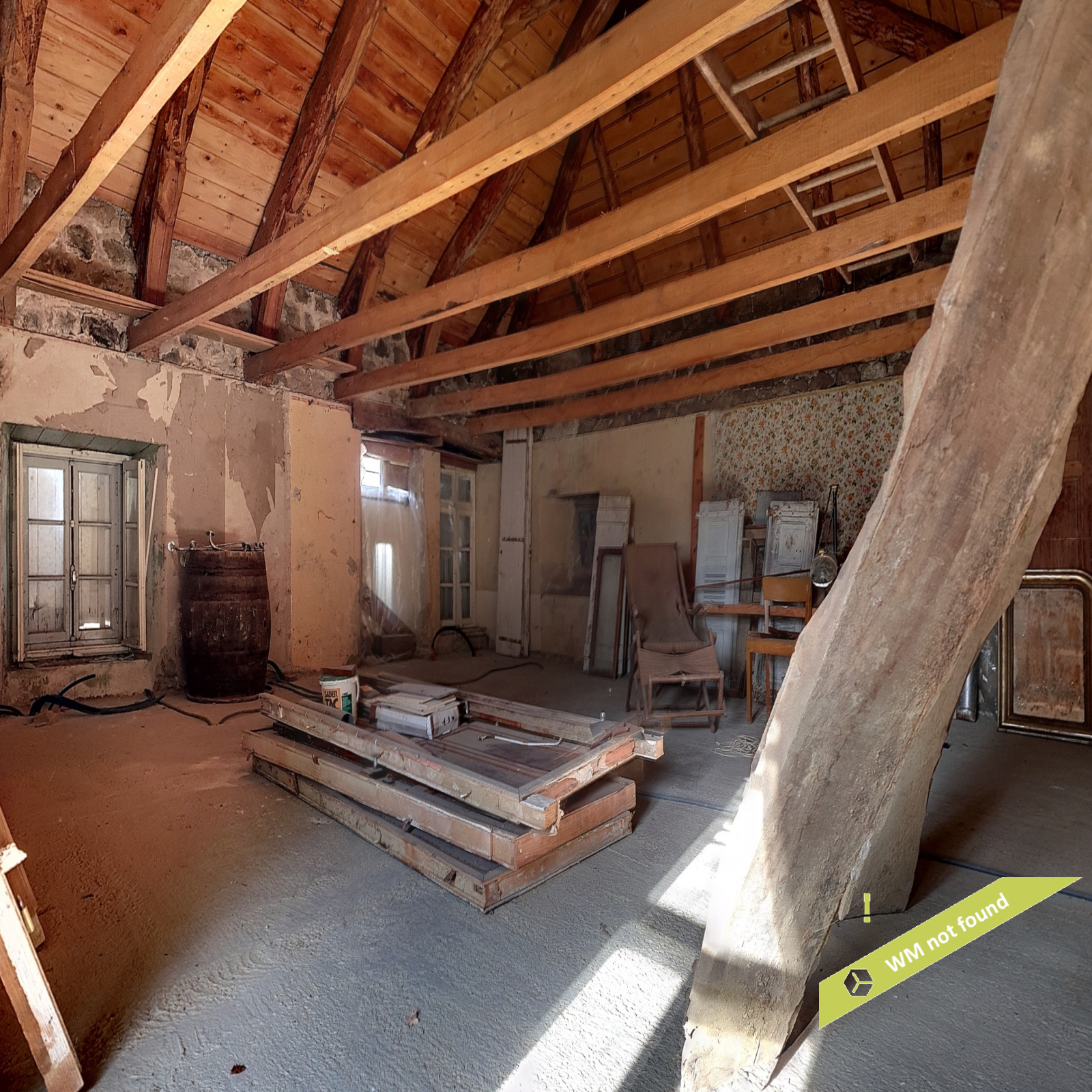 - Au 2ème étage : espace ouvert de 59,57 m2 au sol pour 48 m2 habitables sur plancher, avec charpente apparente