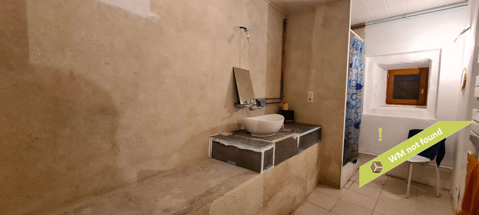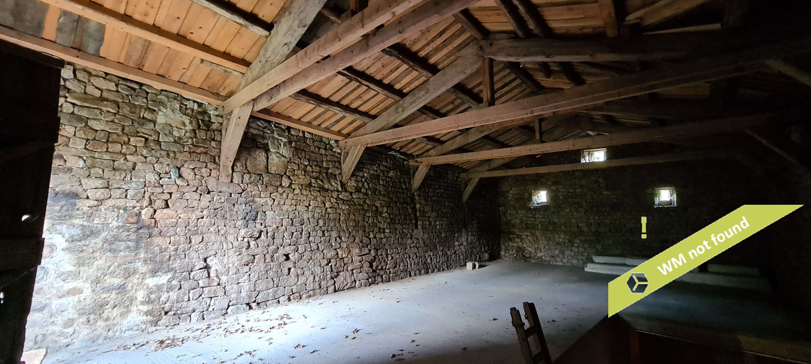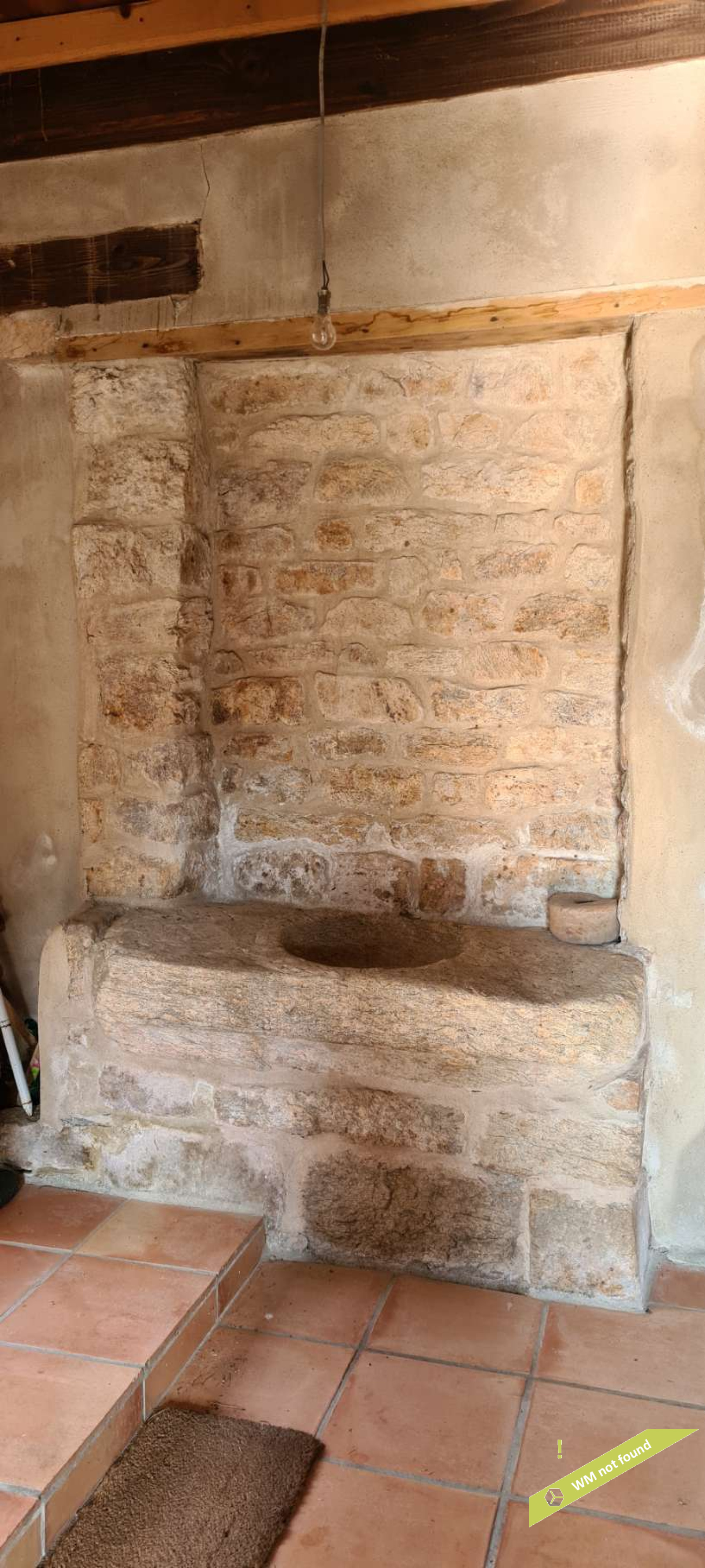 Dans l'ancienne écurie, une chambre a été aménagée avec un wc, une salle d'eau et une pièce à usage de cave, un vaste dégagement, ensemble pour 53 m2 environ. Reste une surface de 22 m2 sur terre battue.