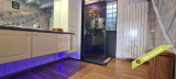 - 1er niveau : une cuisine (20,10 m²) ouvre d'un côté sur une véranda (14,88 m²) et de l'autre sur la pièce principale accueillant le salon et la salle-à-manger (48,02 m²), une chambre (20,40 m²), une salle d'eau (8,07 m²) et un wc.