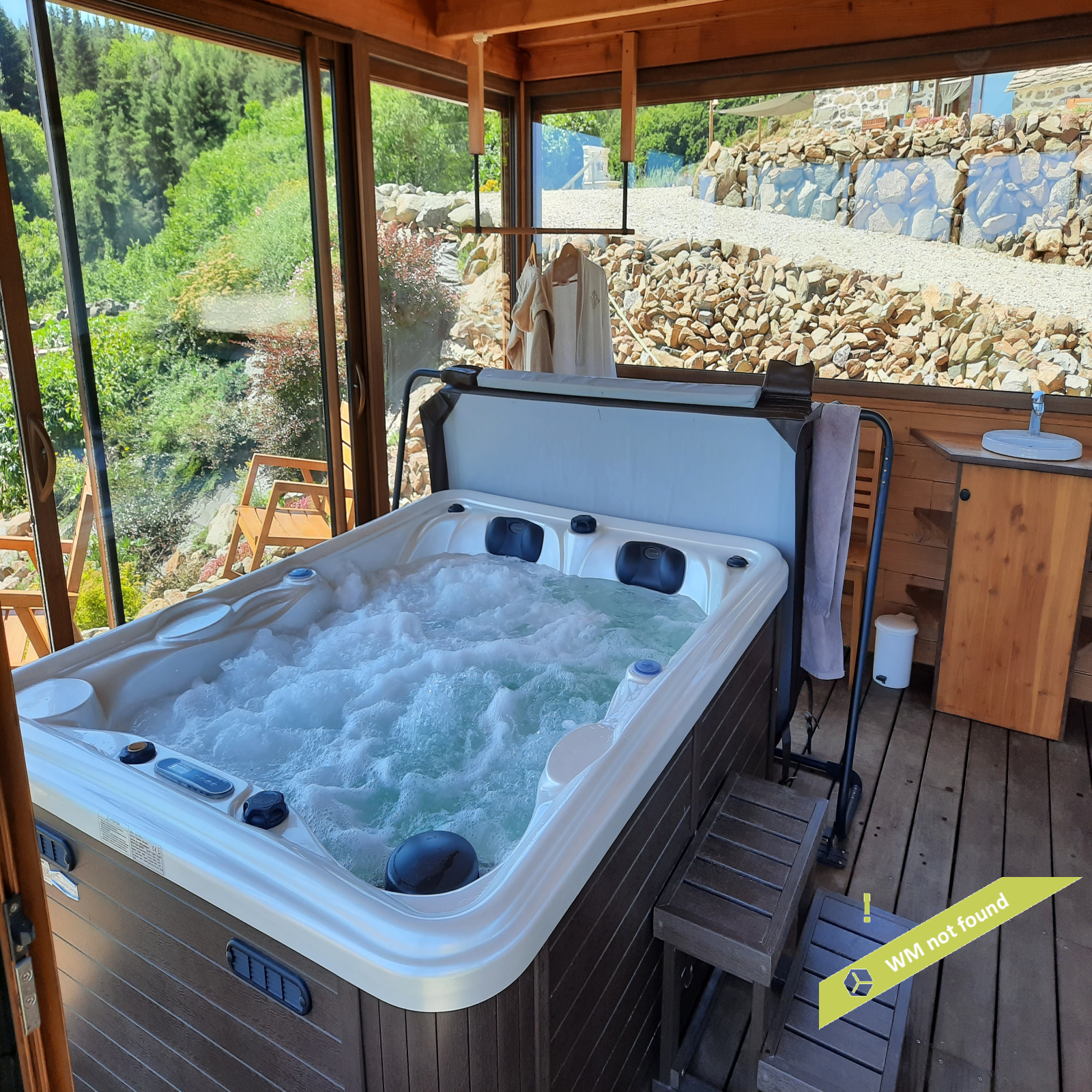 Un espace détente indépendant avec son jaccuzi est idéalement placé sur le terrain.