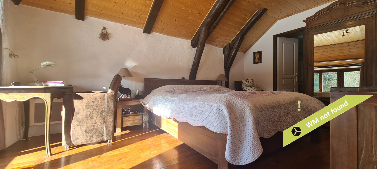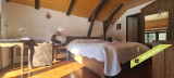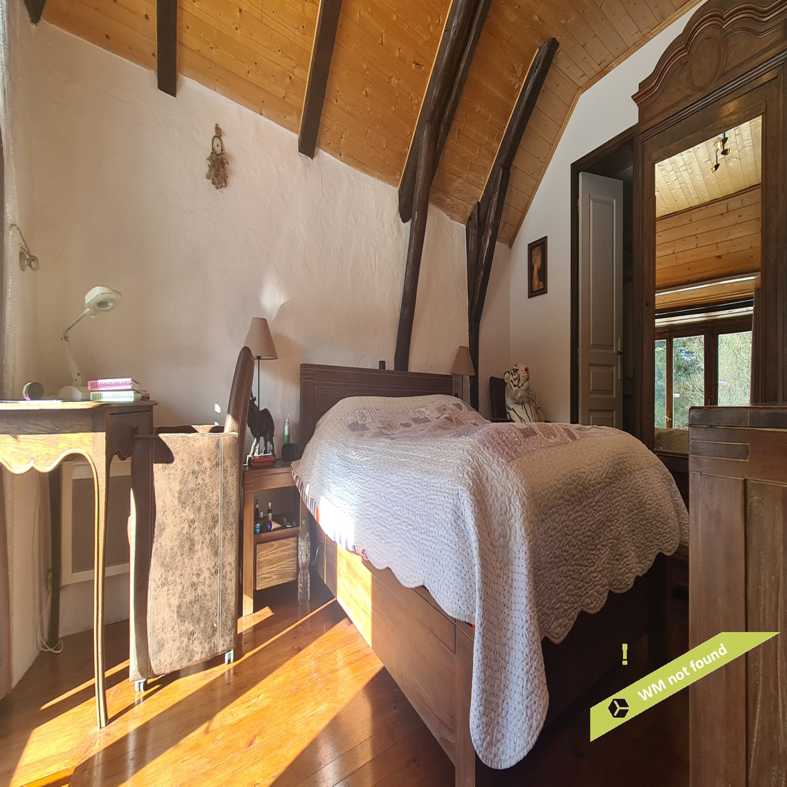- l'étage comprend un couloir-bibliothèque desservant une chambre avec sa salle d'eau et son wc (21,75 m²), très lumineuse grâce notamment à sa porte vitrée donnant sur le jardin, 2 autres chambres (13,06 m² et 18,27 m²), une salle-de-bains, un wc et un espace salon avec vue panoramique sur la nature environnante (21,13 m²). Une remise (13,92 m²), avec accès extérieur, complète ce niveau.
